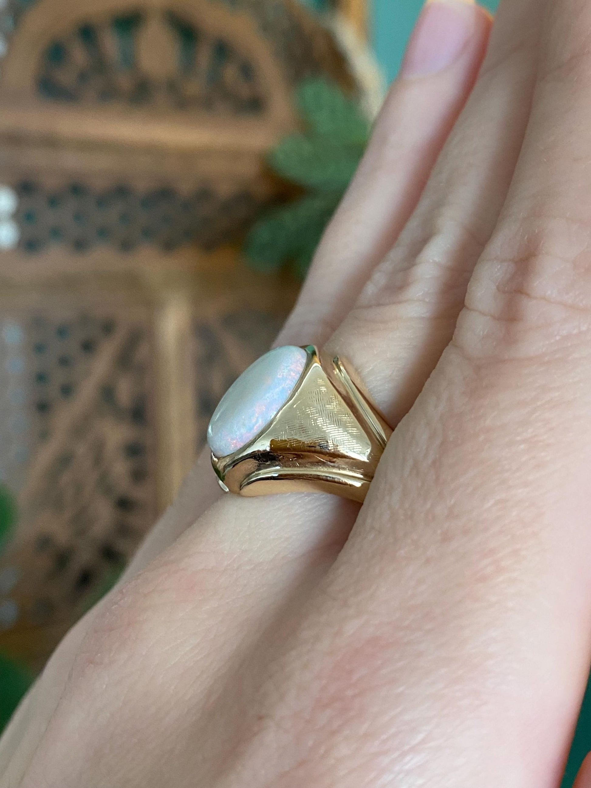 Vintage Solid 14k Yellow Gold Opal Ring - Size 11.25