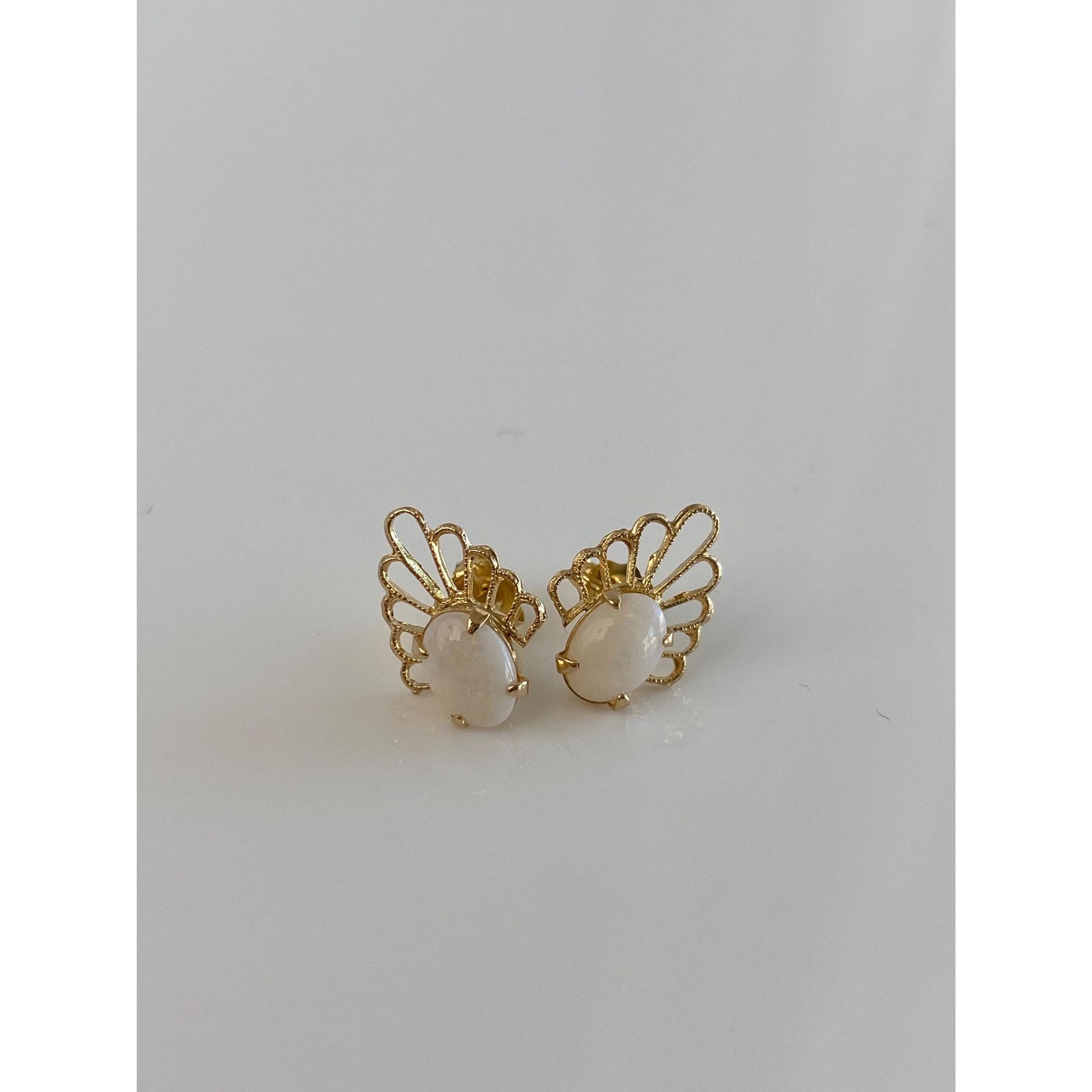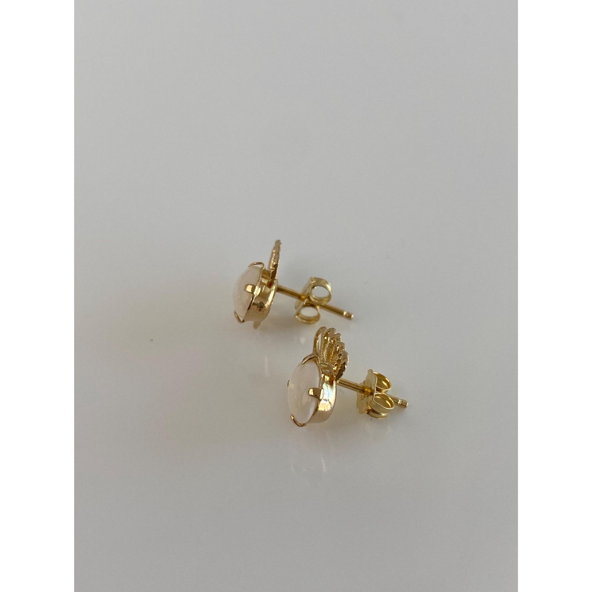 Vintage Solid 14k Yellow Gold Opal Scalloped Stud Earrings