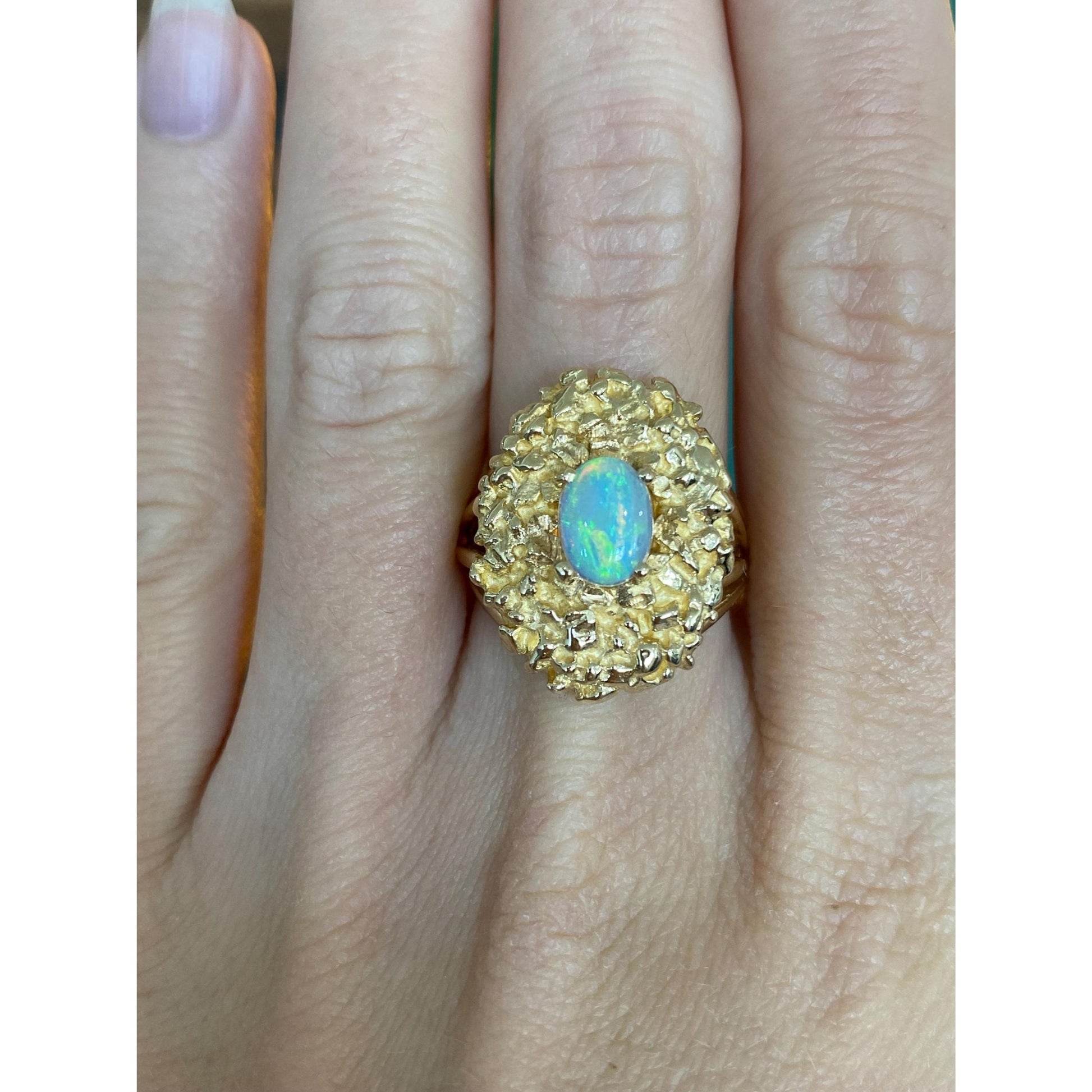 Vintage Solid 14k Yellow Gold Opal Textured Ring - Size 7