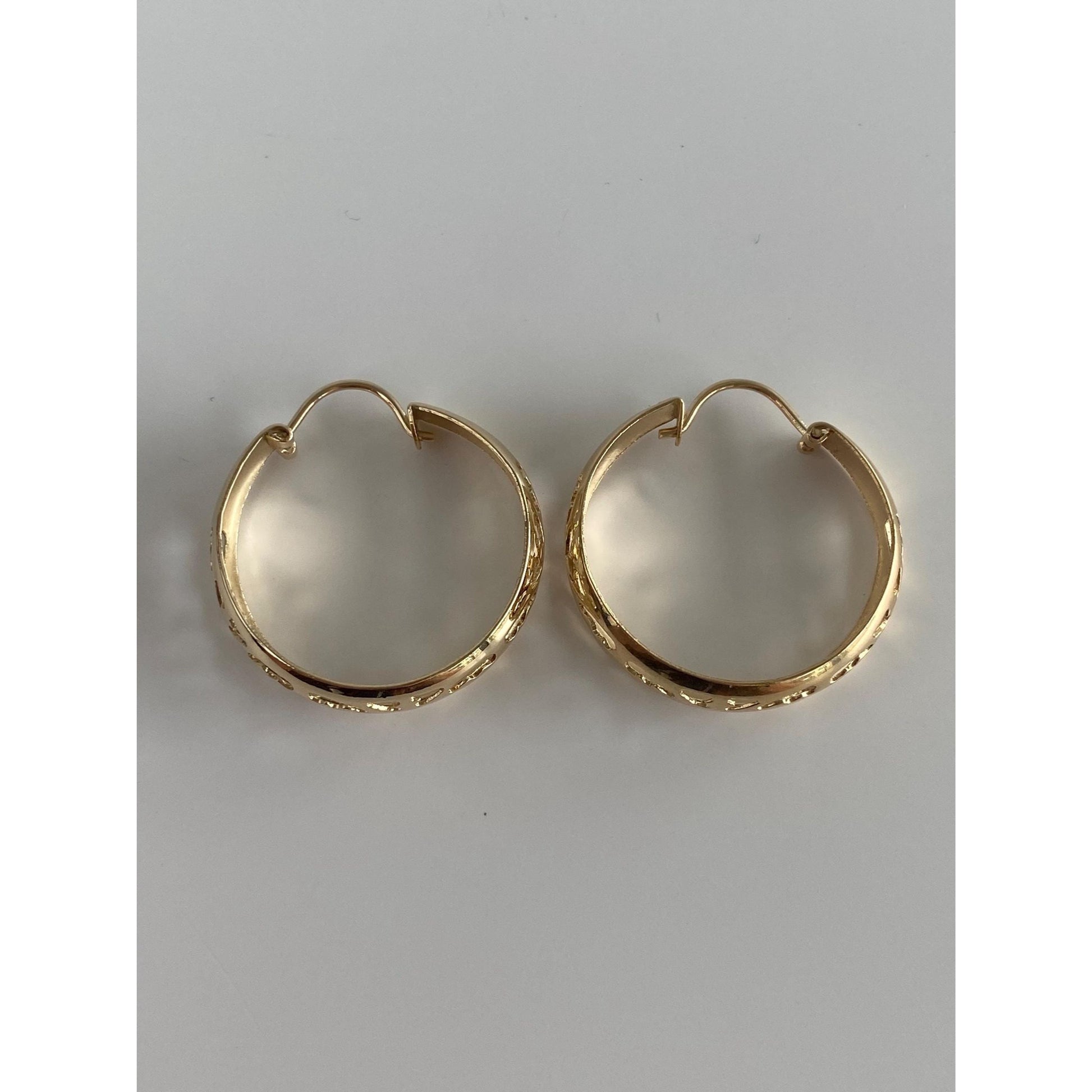 Vintage Solid 14k Yellow Gold Open Work Design Hoop Earrings