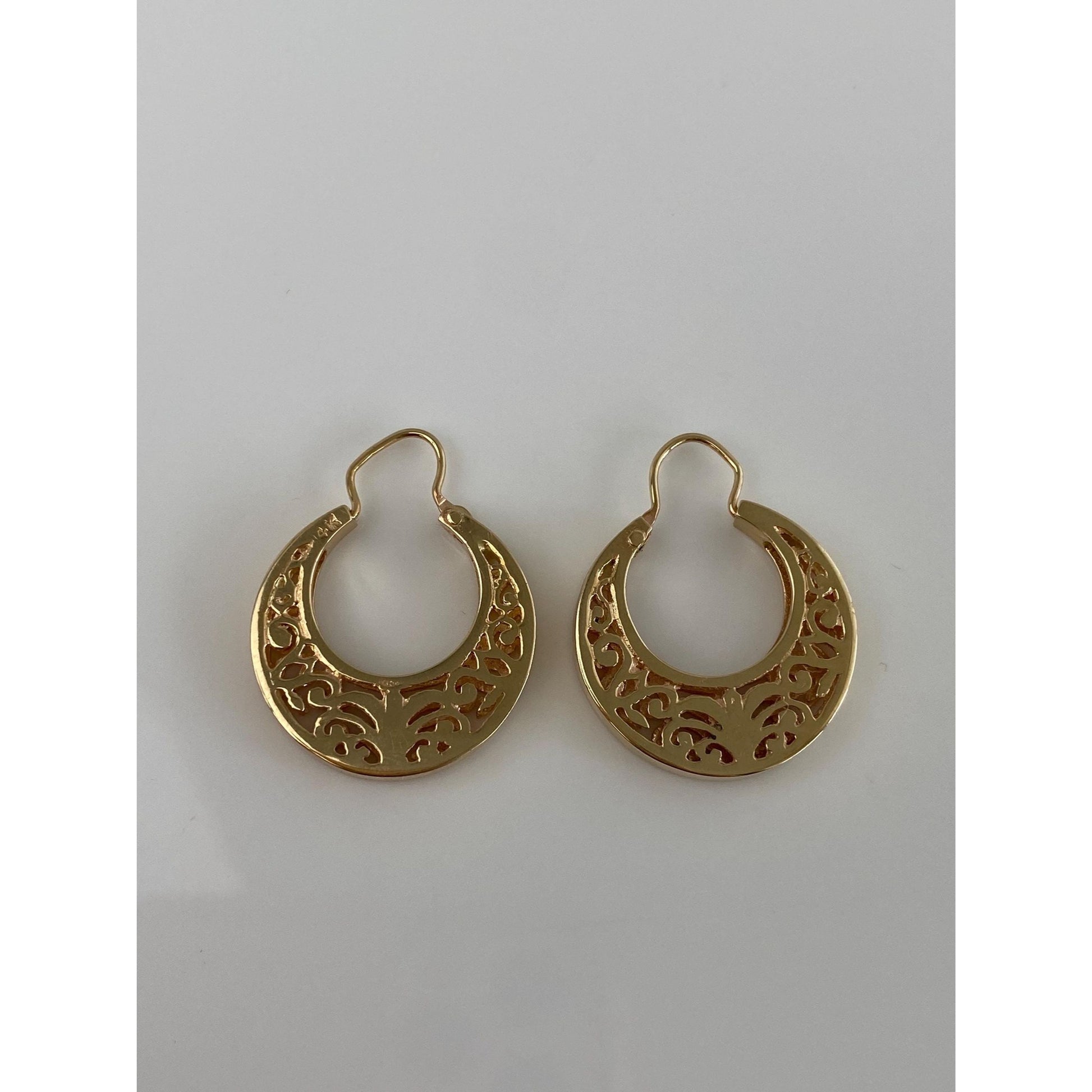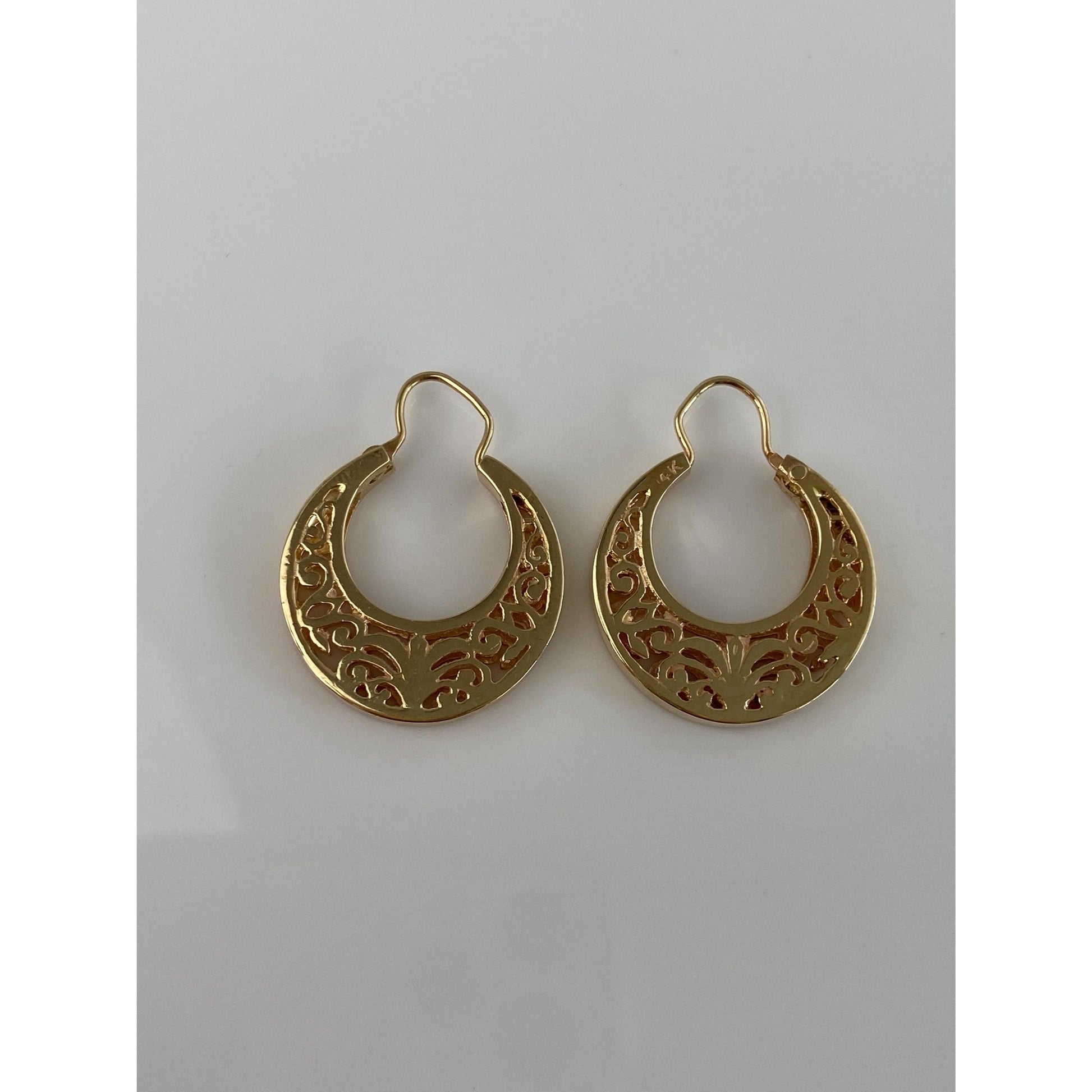 Vintage Solid 14k Yellow Gold Open Work Hoop Earrings
