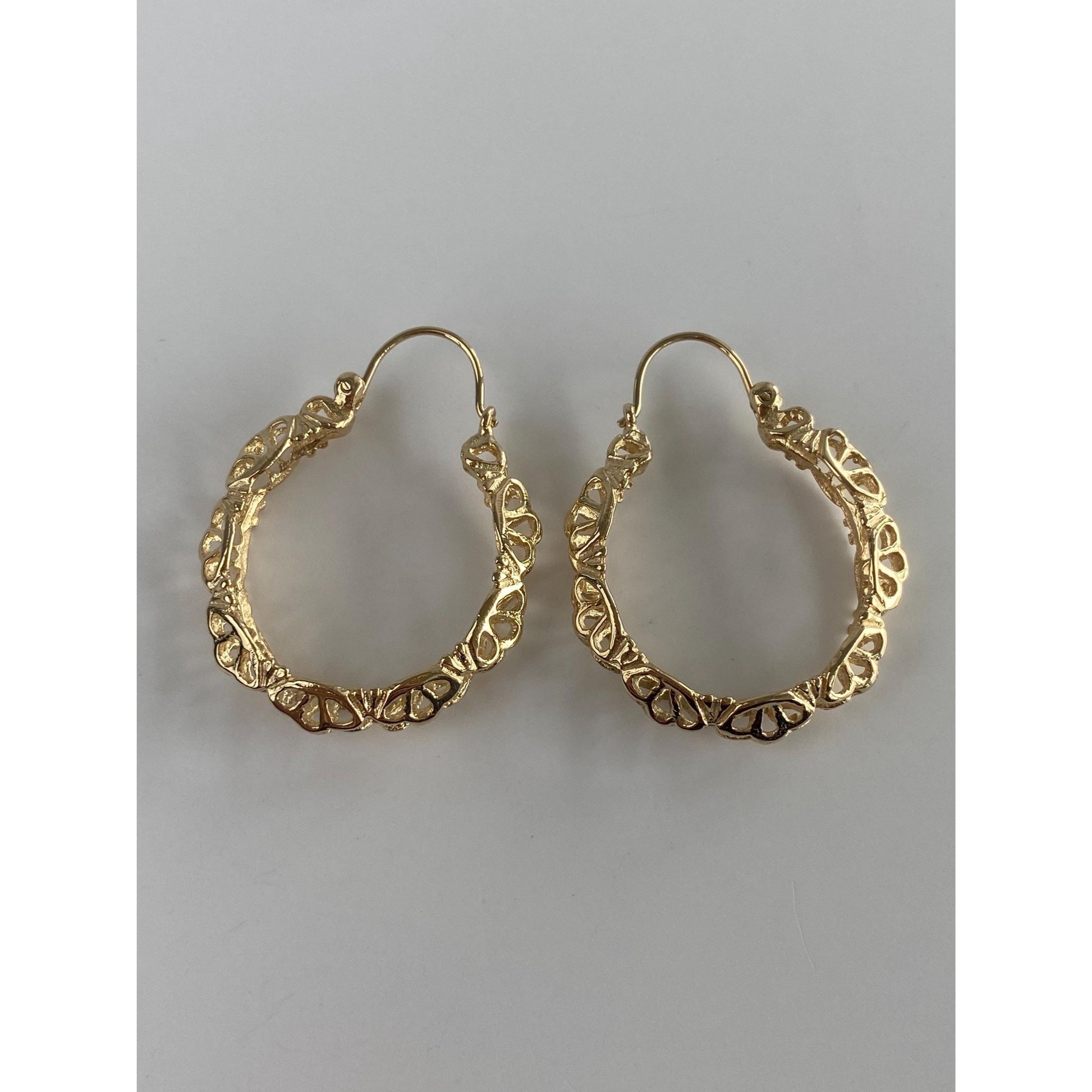 Vintage Solid 14k Yellow Gold Openwork Hoop Earrings