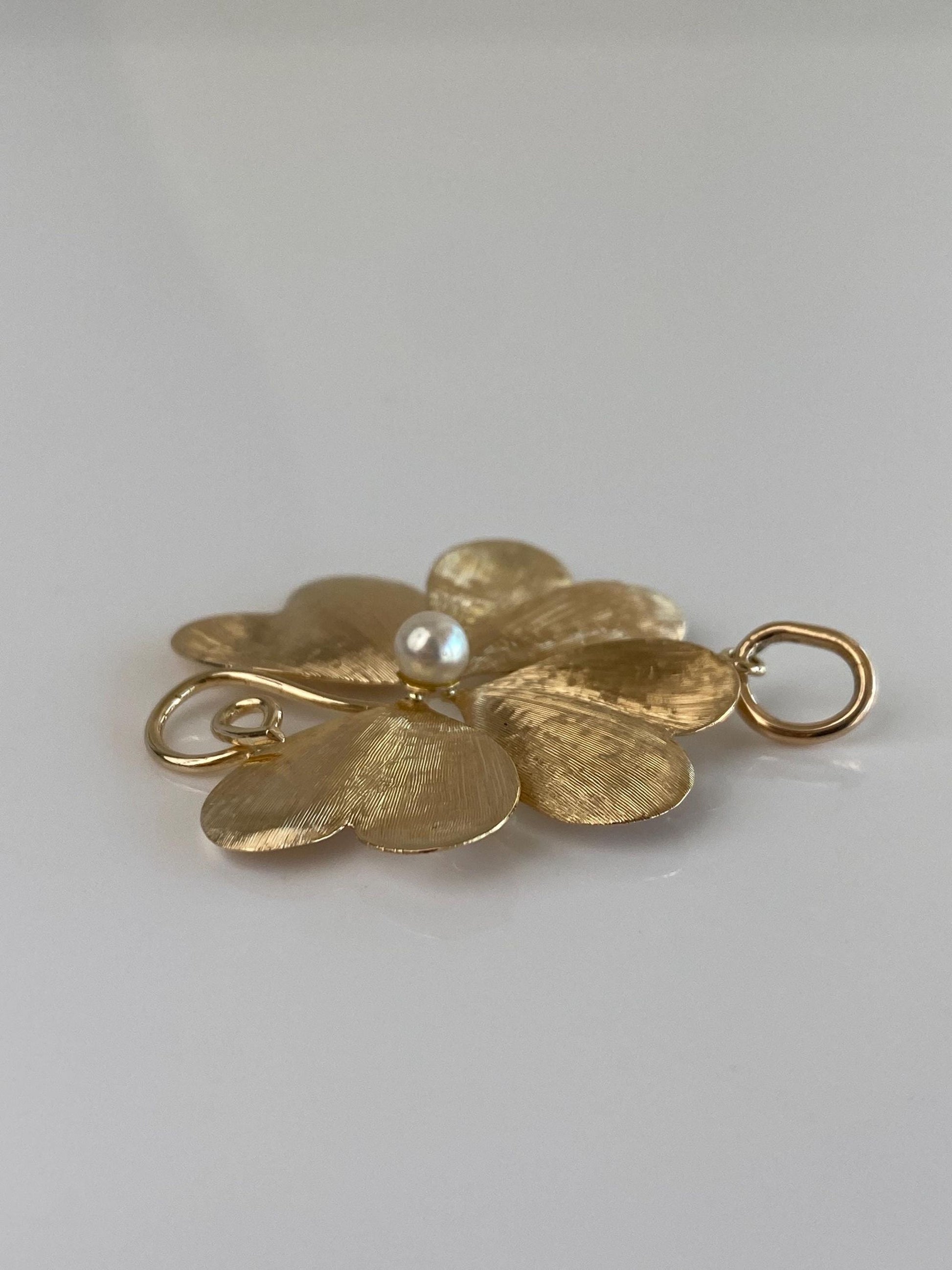 Vintage Solid 14k Yellow Gold Pearl 4 Leaf Clover Charm