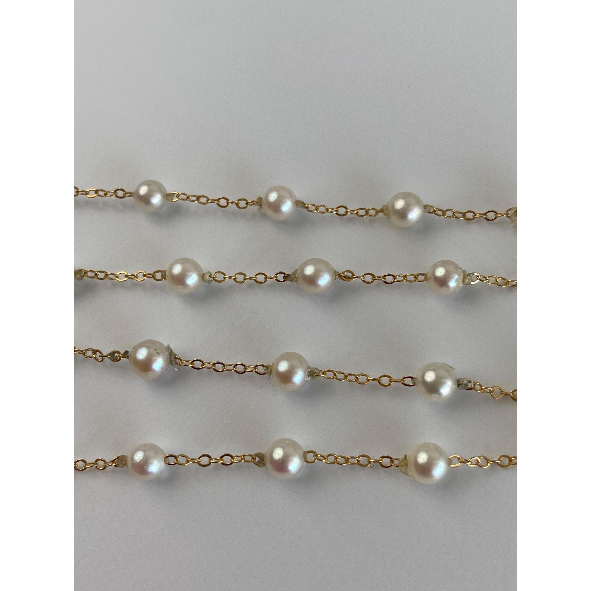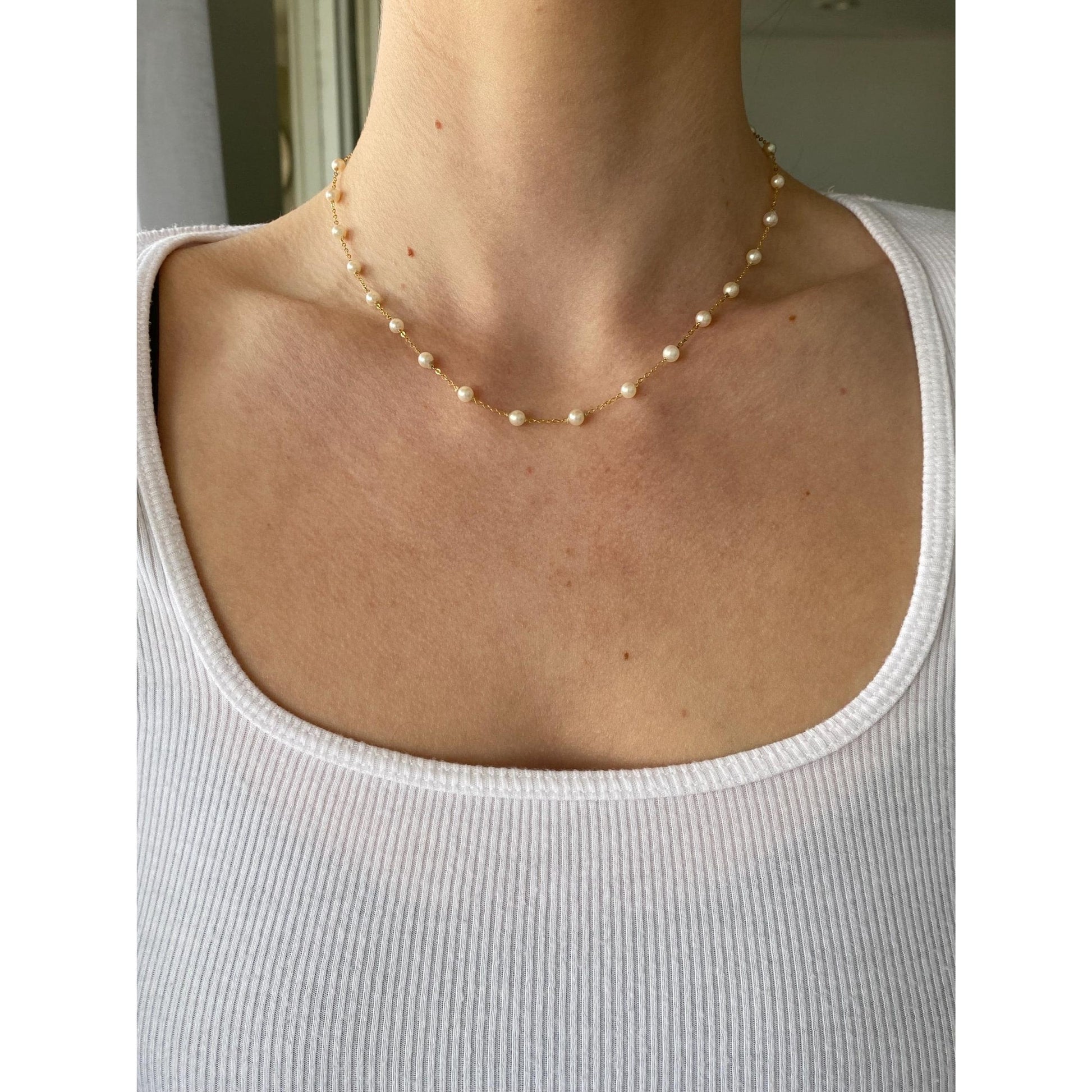 Vintage Solid 14k Yellow Gold Pearl Cable Chain Necklace - 16.25 inches