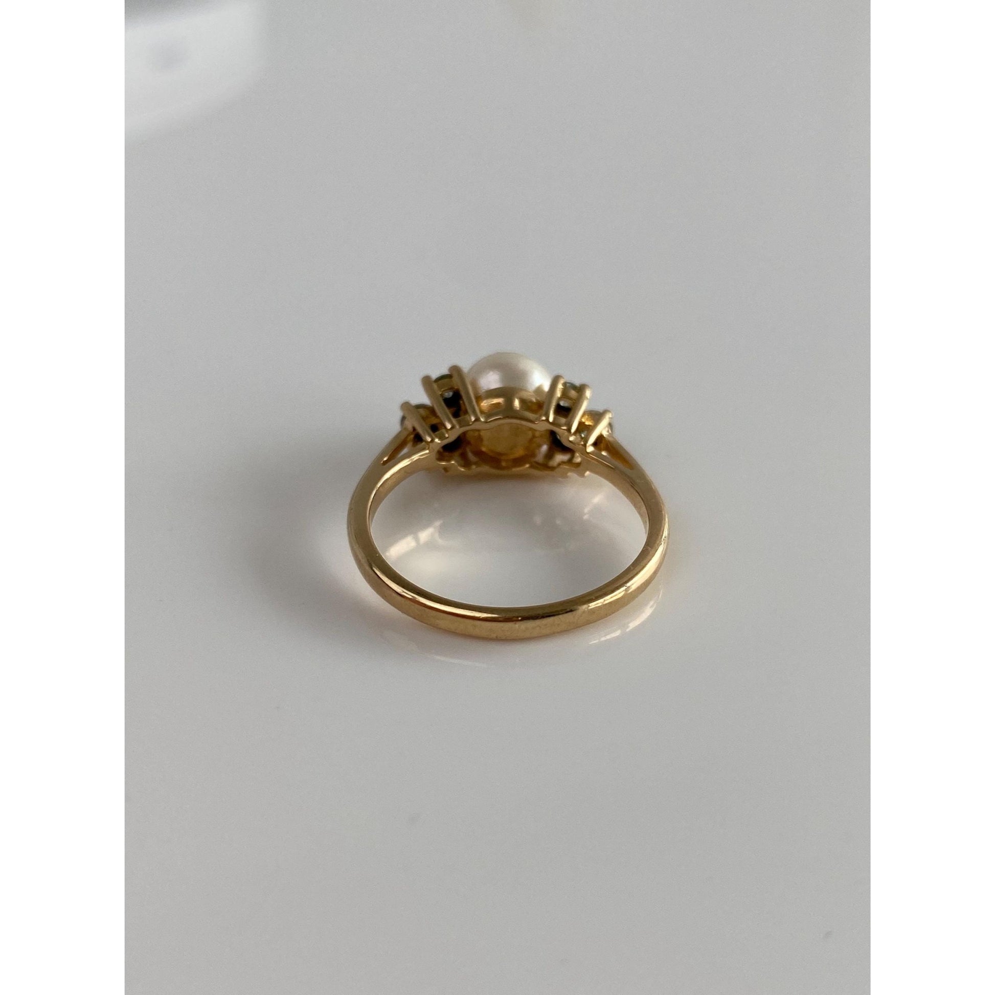 Vintage Solid 14k Yellow Gold Pearl Clear Cubic Zirconia Ring - Size 6.75