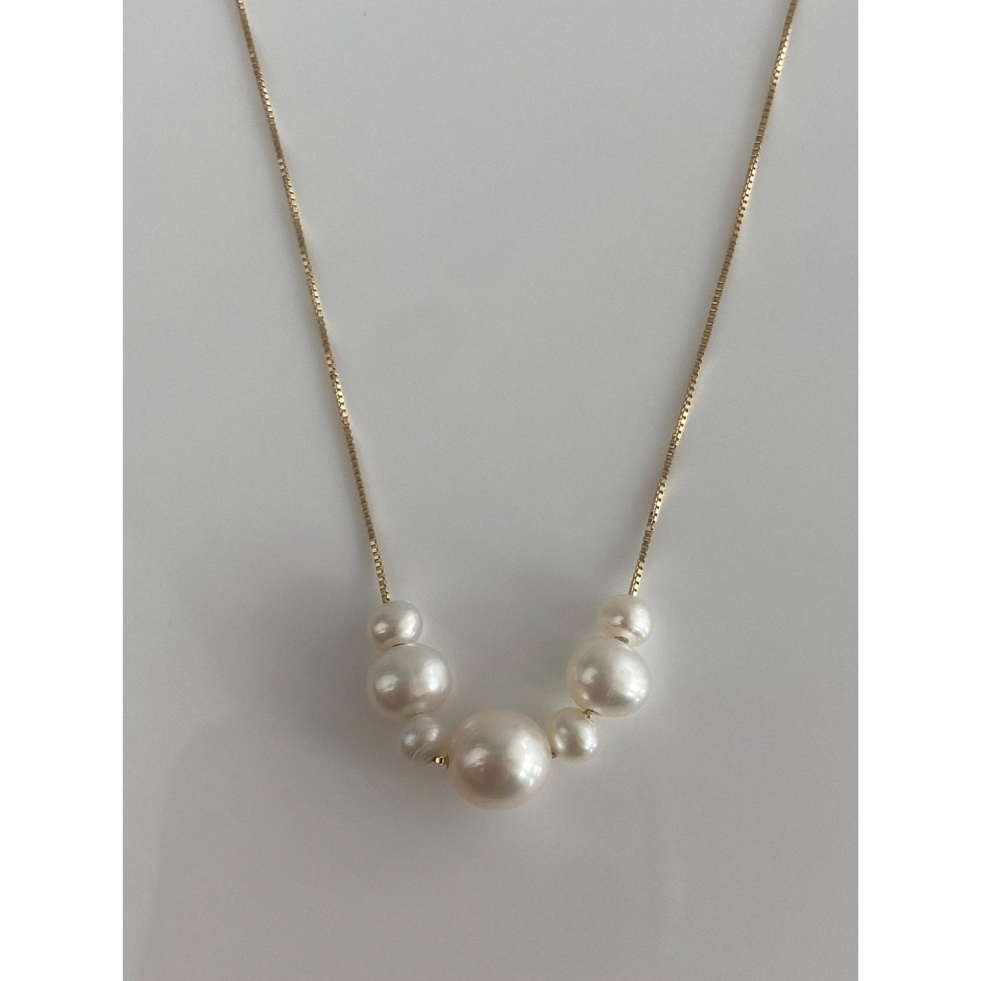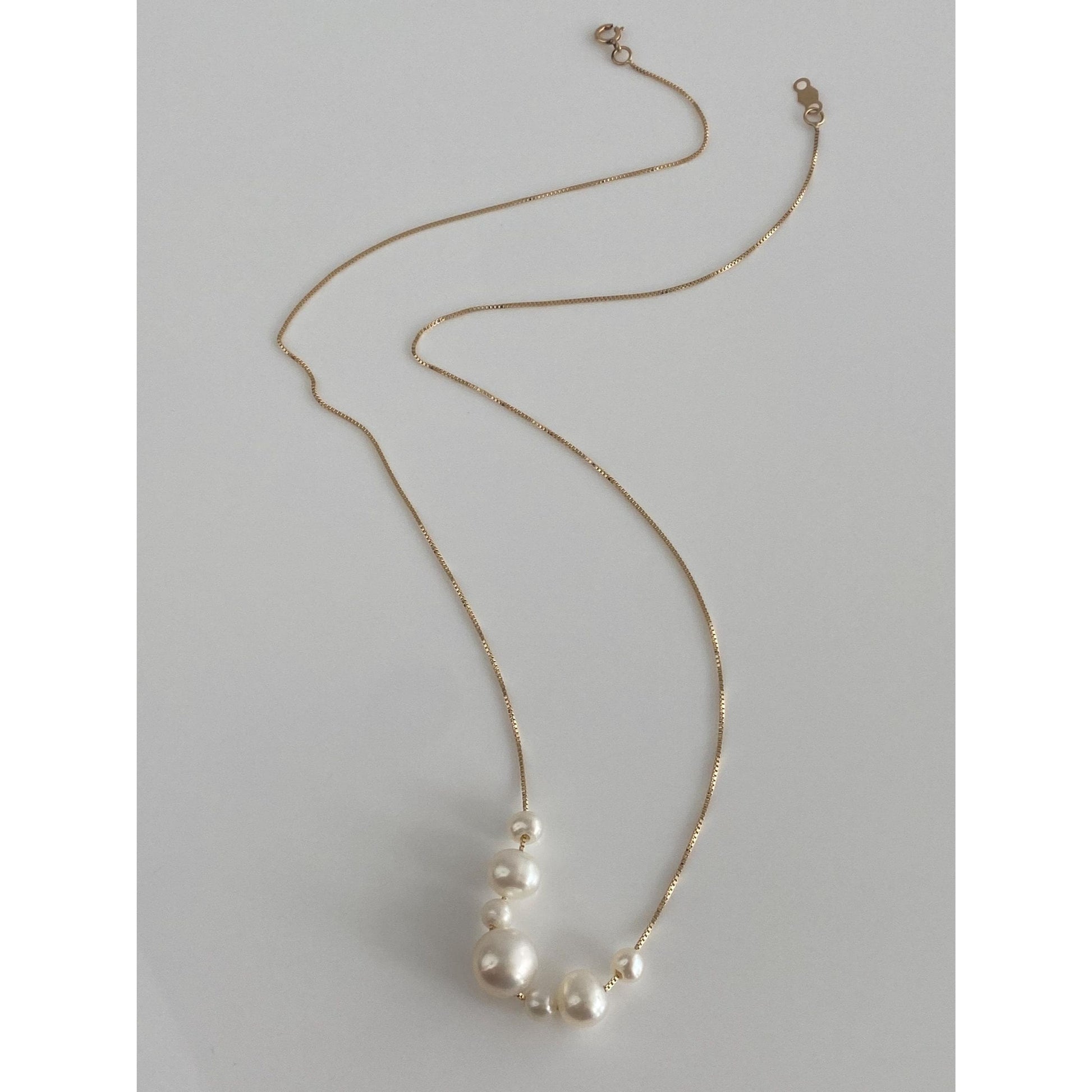 Vintage Solid 14k Yellow Gold Pearl Dainty Box Chain Necklace - 16.75 inches