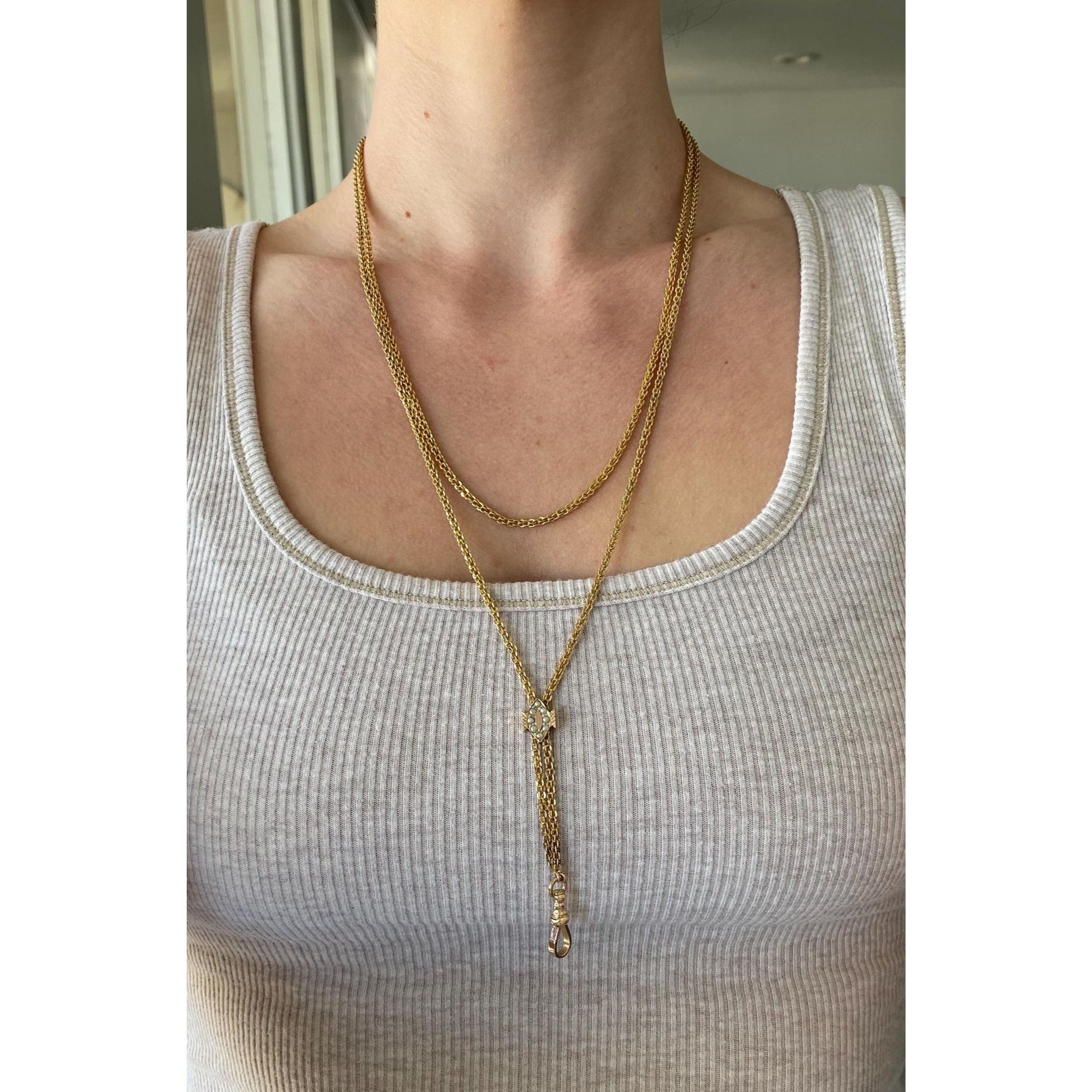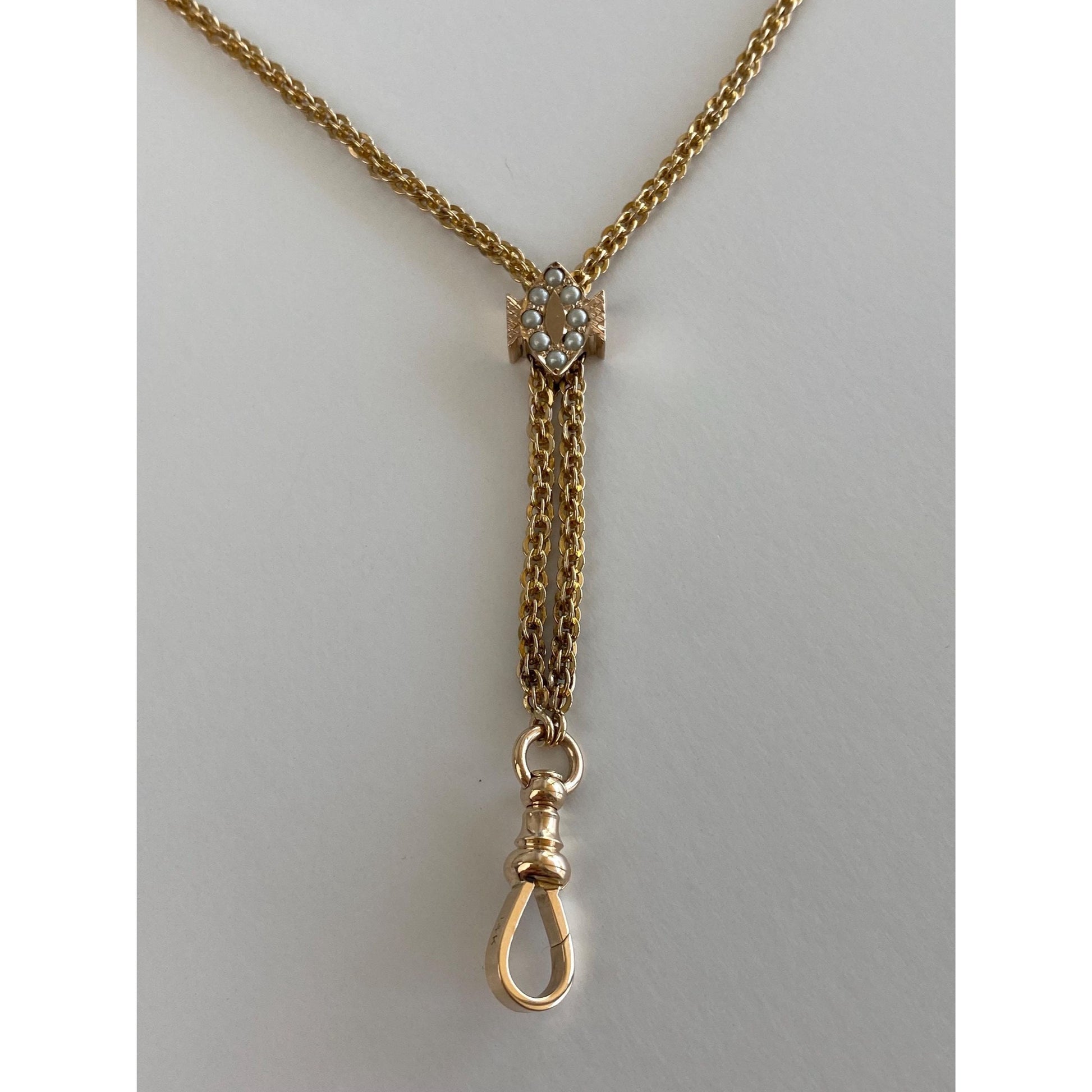 Vintage Solid 14k Yellow Gold Pearl Fancy Link Charm Holder Necklace - 50.5 inches