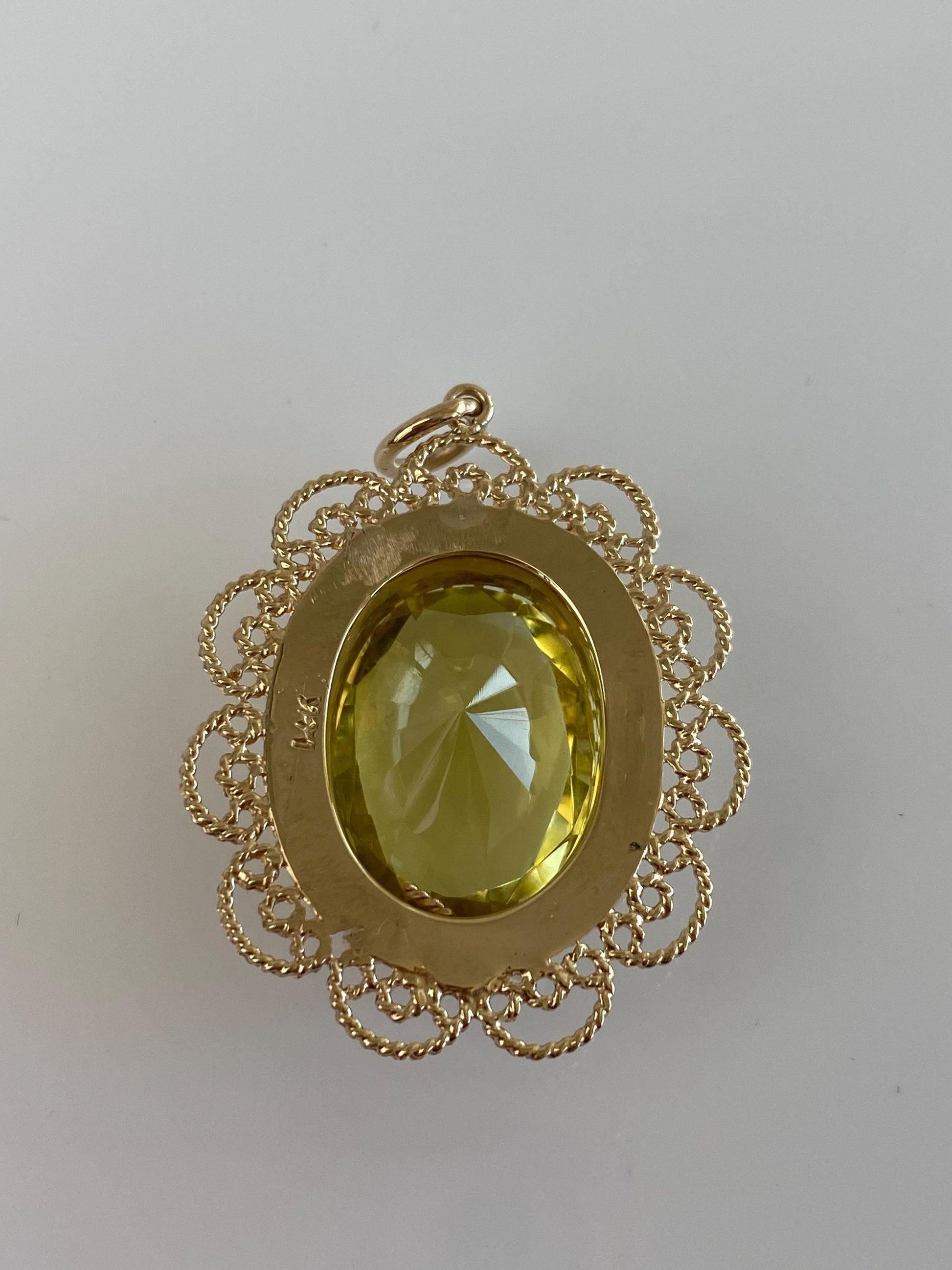 Vintage Solid 14k Yellow Gold Pearl Halo Lemon Quartz Charm