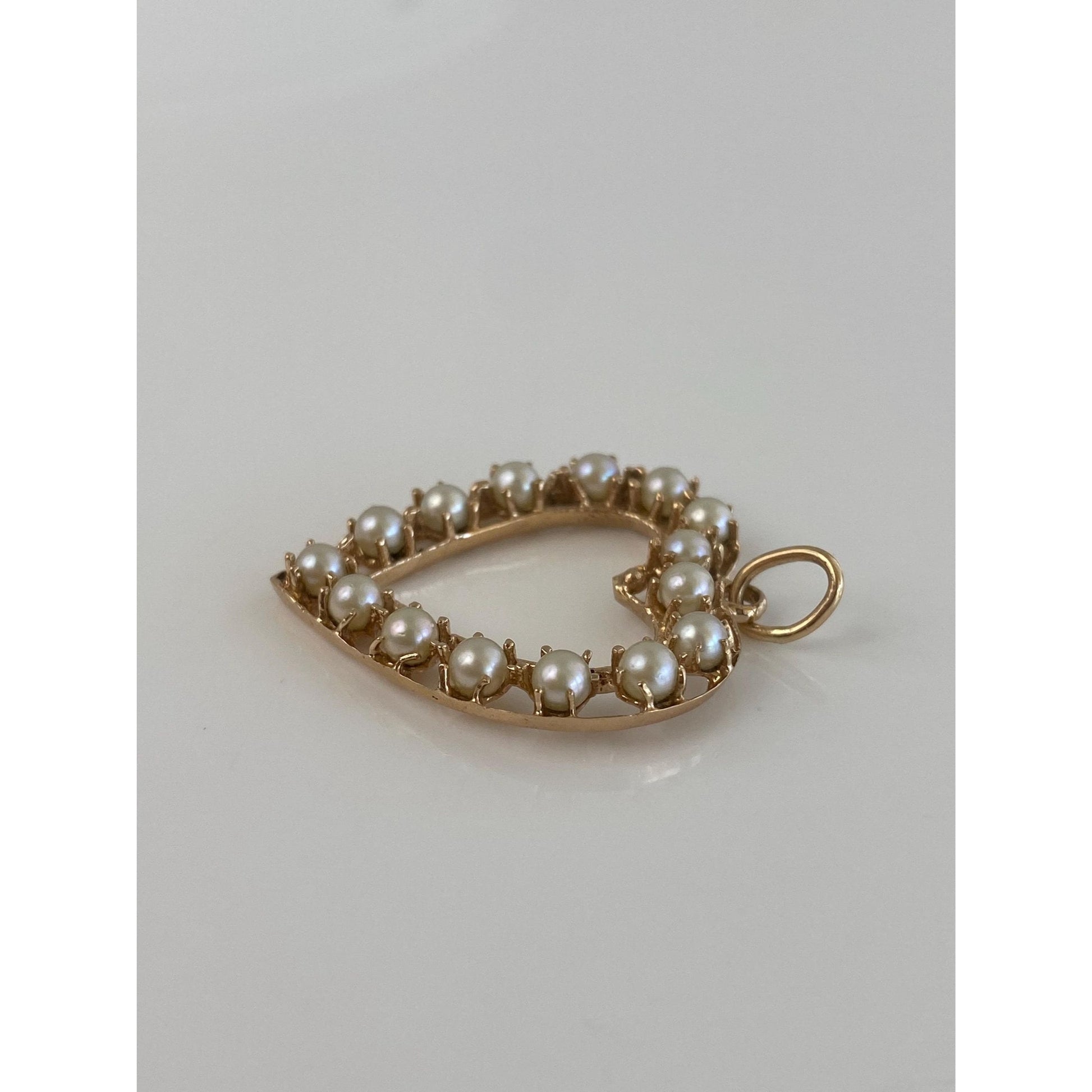 Vintage Solid 14k Yellow Gold Pearl Heart Charm