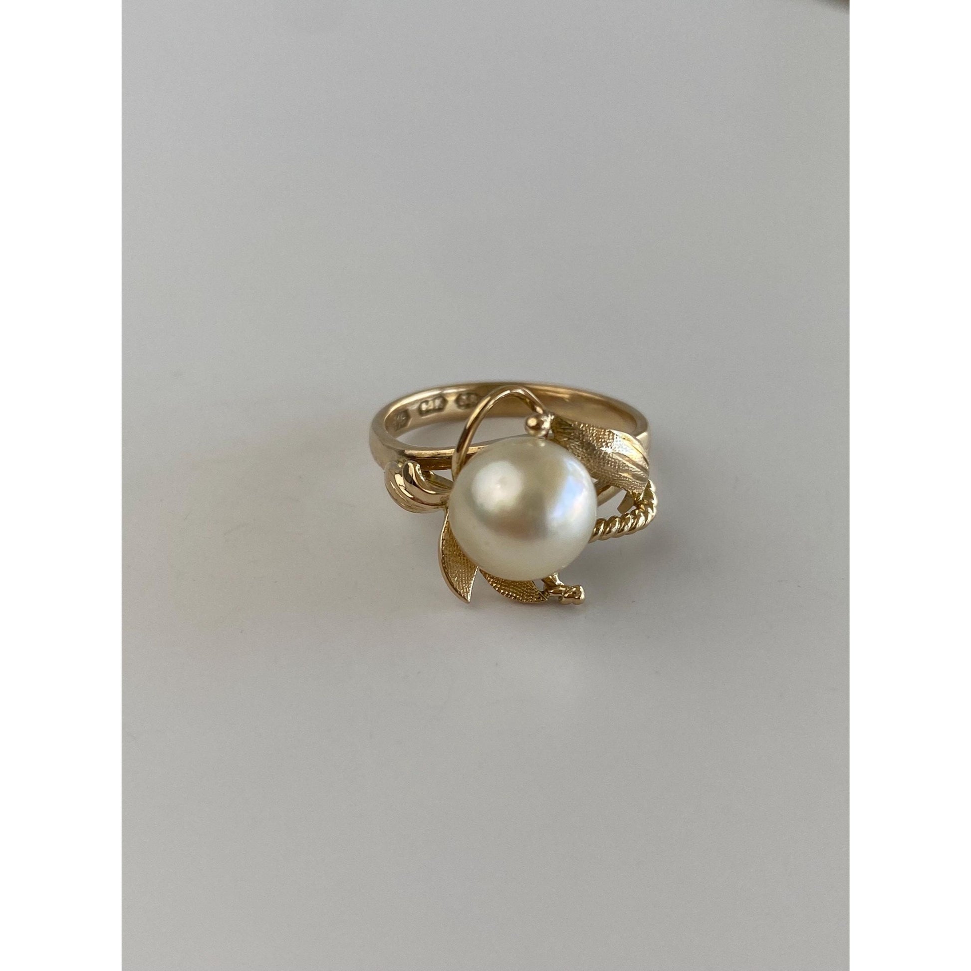 Vintage Solid 14k Yellow Gold Pearl Ring - Size 7.25