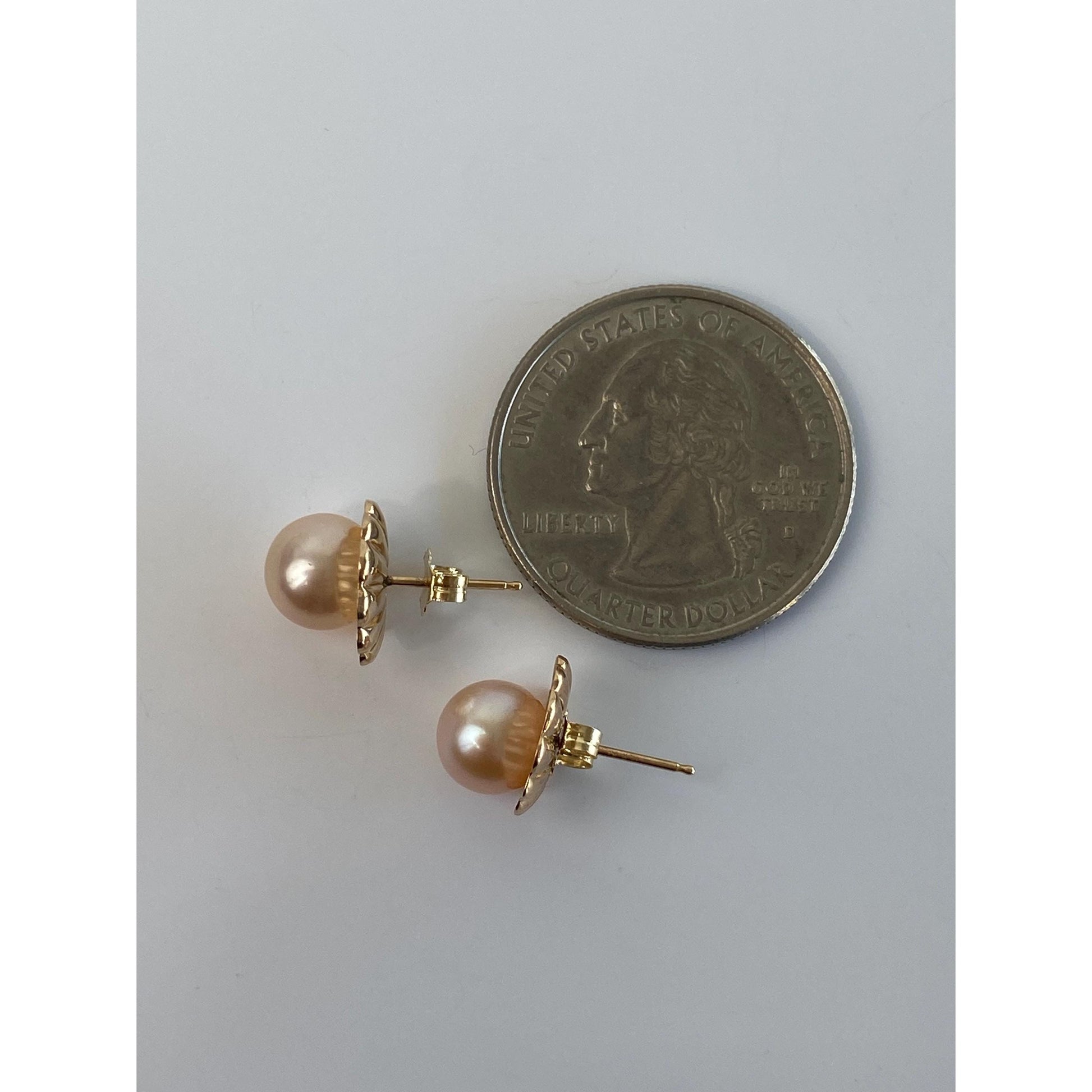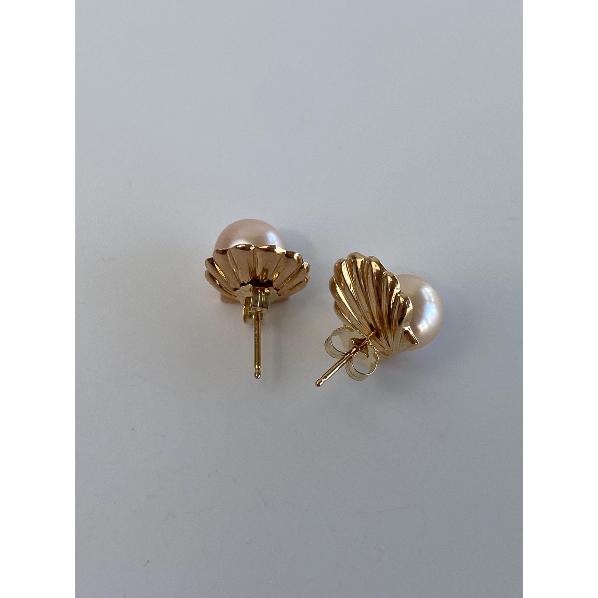 Vintage Solid 14k Yellow Gold Pearl Shell Stud Earrings