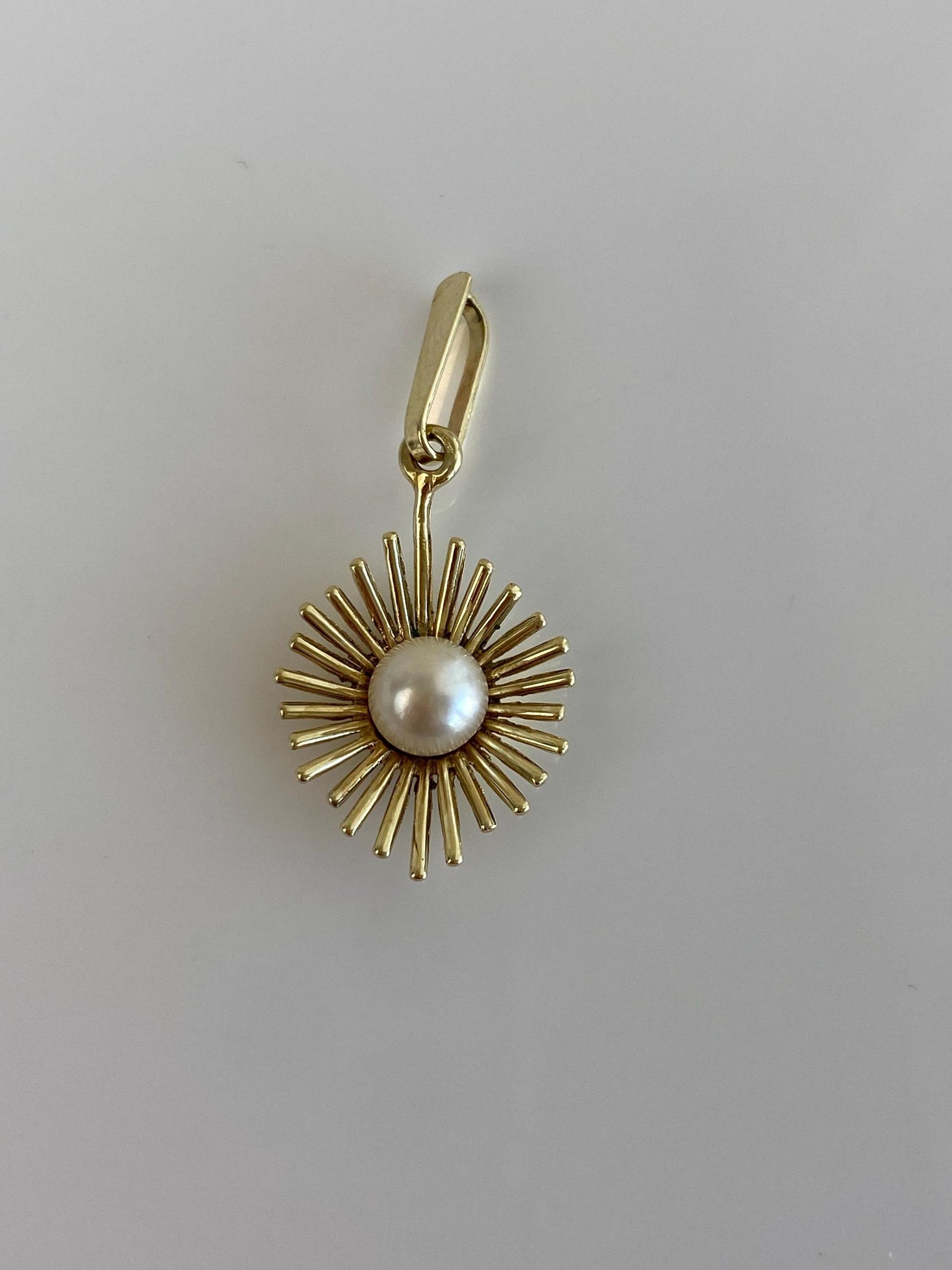 Vintage Solid 14k Yellow Gold Pearl Starburst Charm