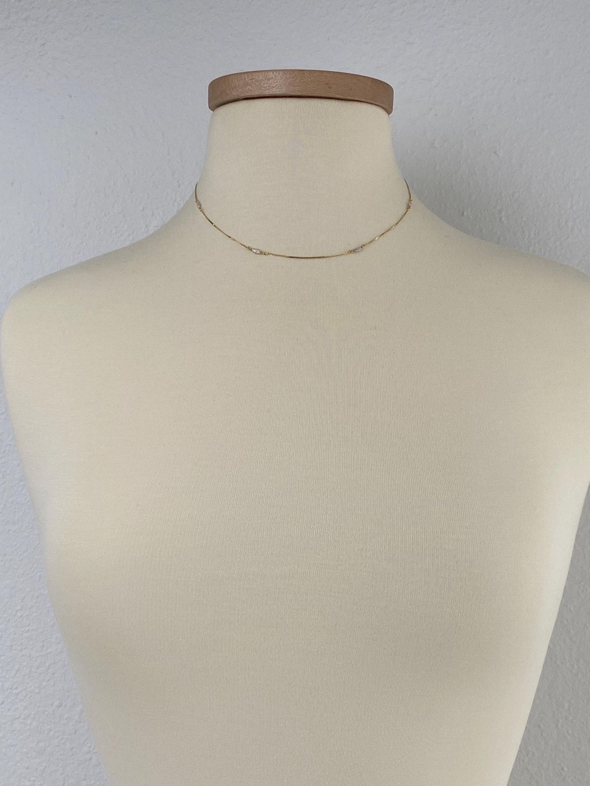 Vintage Solid 14k Yellow Gold Pearl Station Serpentine Chain Necklace - 16.75 inches