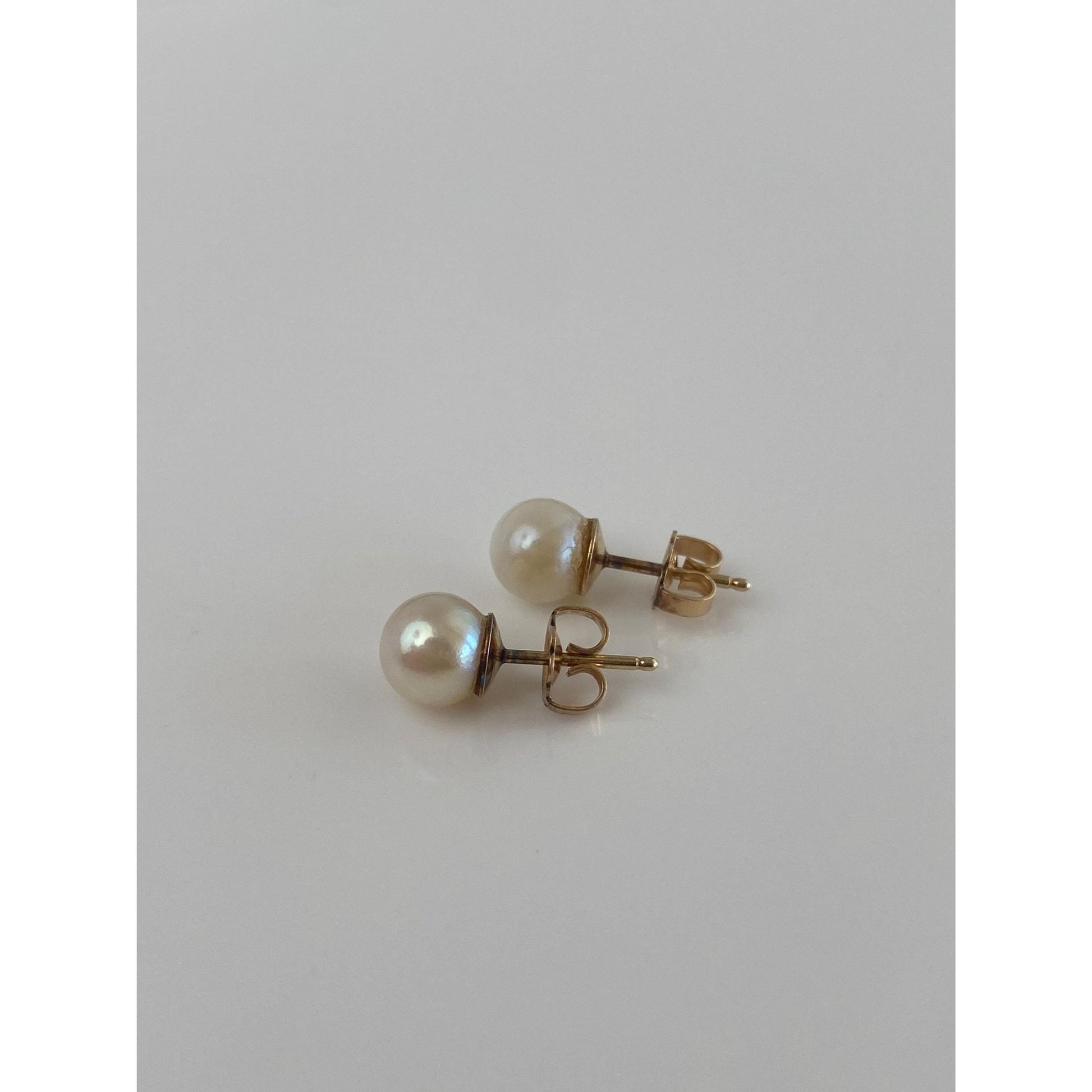 Vintage Solid 14k Yellow Gold Pearl Stud Earrings
