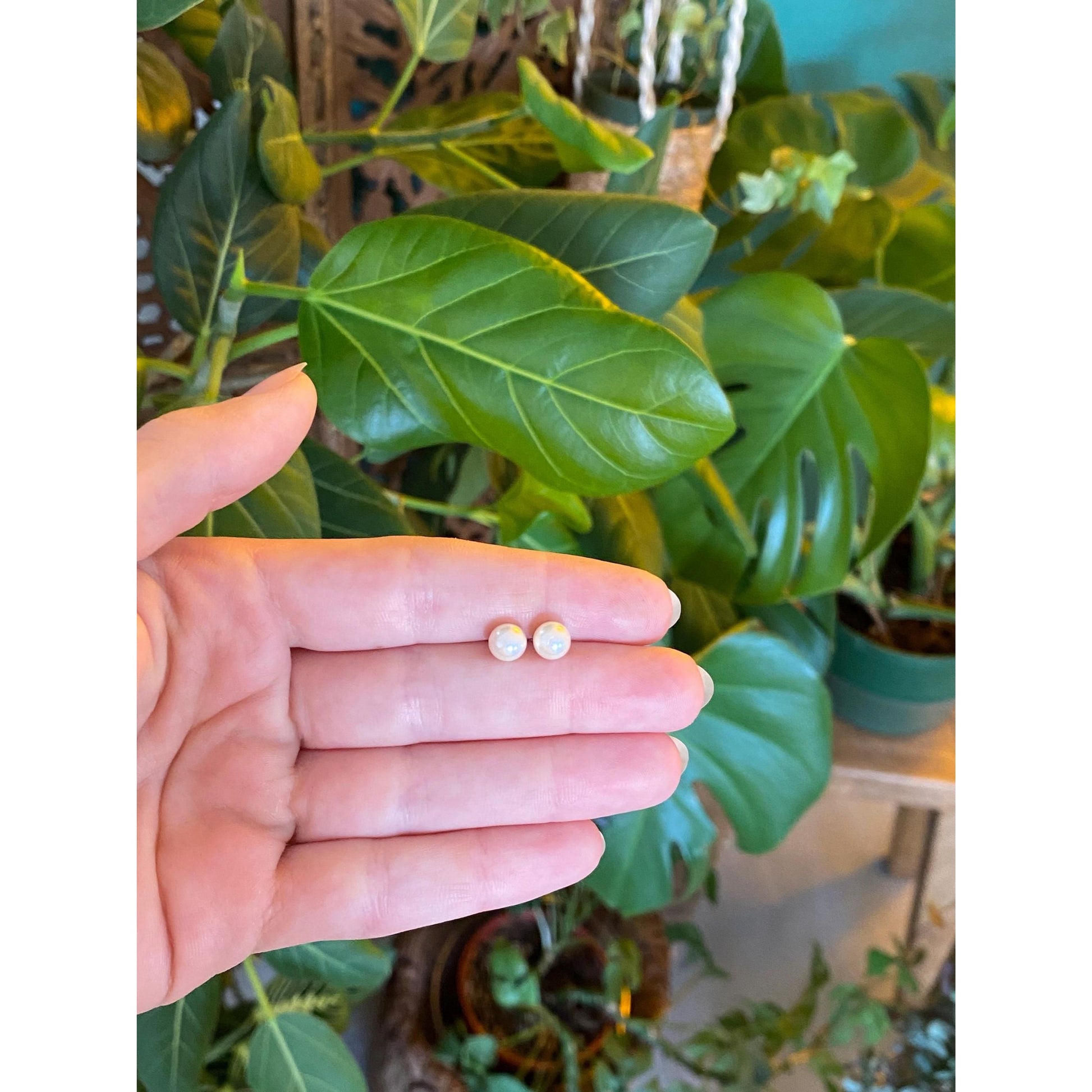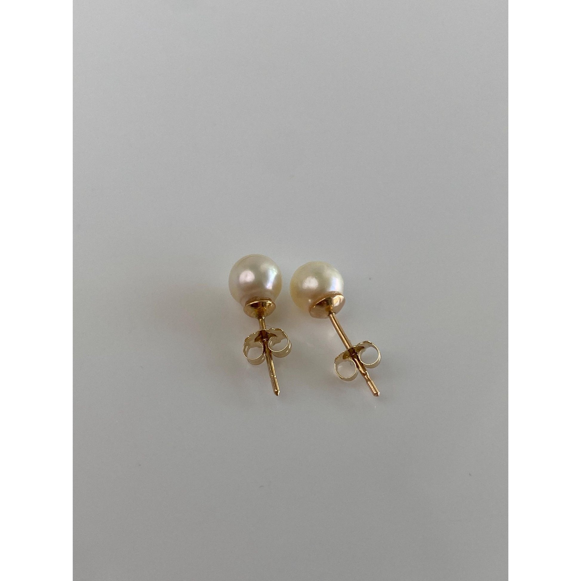 Vintage Solid 14k Yellow Gold Pearl Stud Earrings