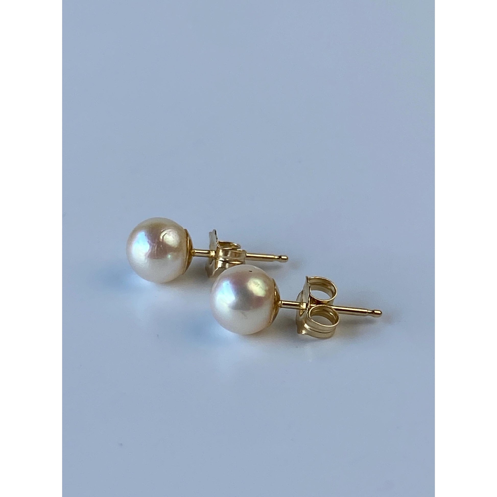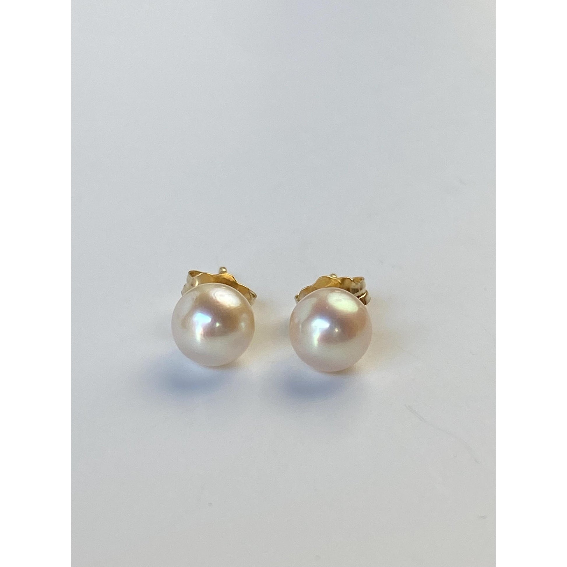 Vintage Solid 14k Yellow Gold Pearl Stud Earrings