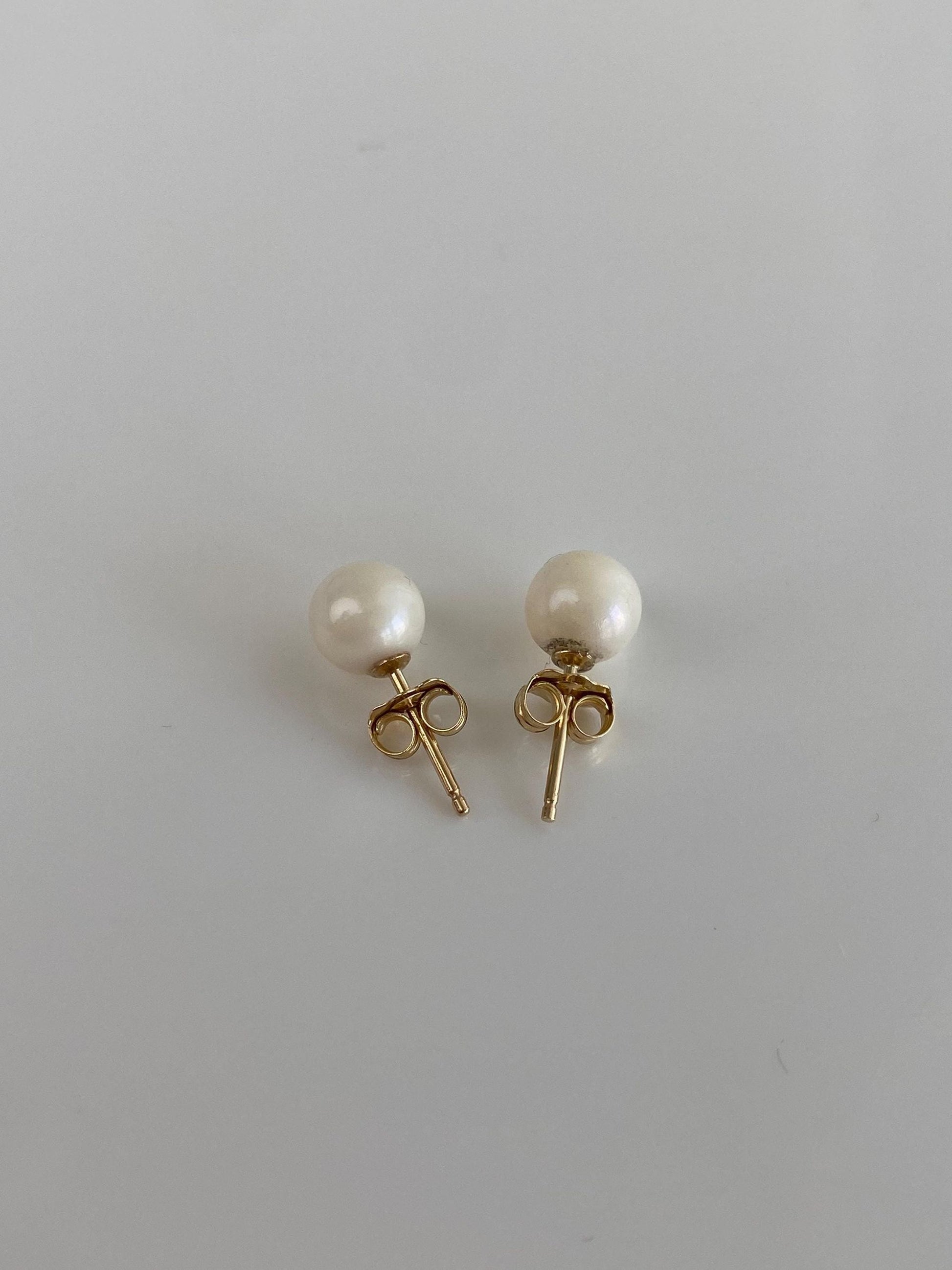 Vintage Solid 14k Yellow Gold Pearl Stud Earrings
