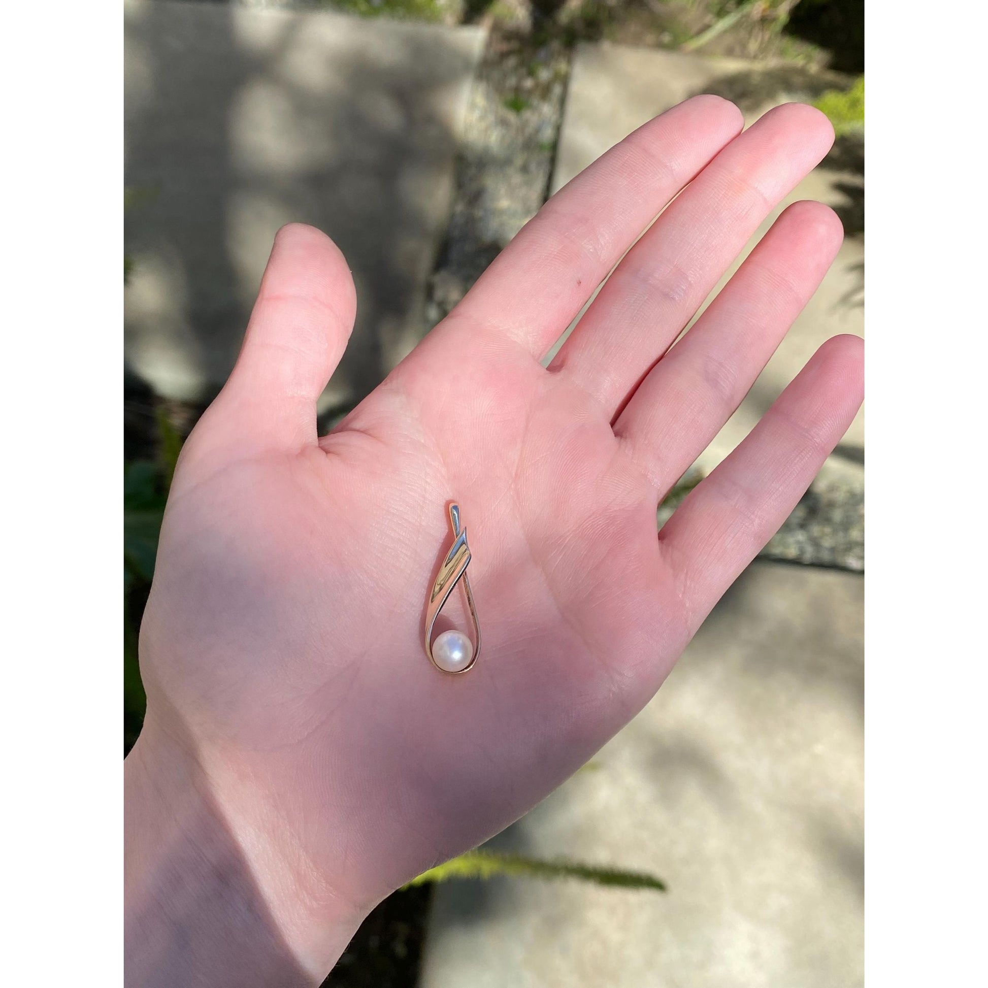 Vintage Solid 14k Yellow Gold Pearl Swoop Slide Charm