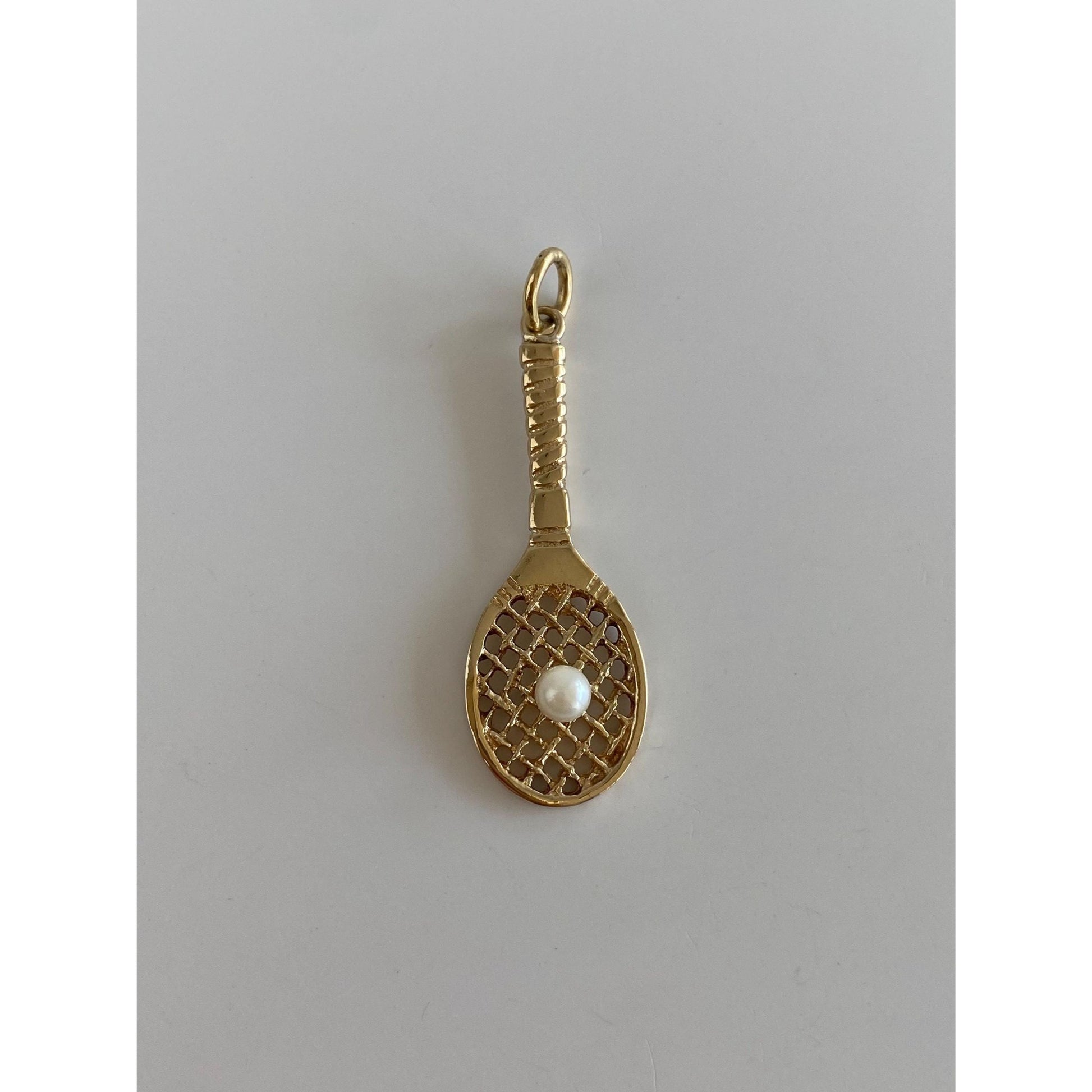 Vintage Solid 14k Yellow Gold Pearl Tennis Racket Charm