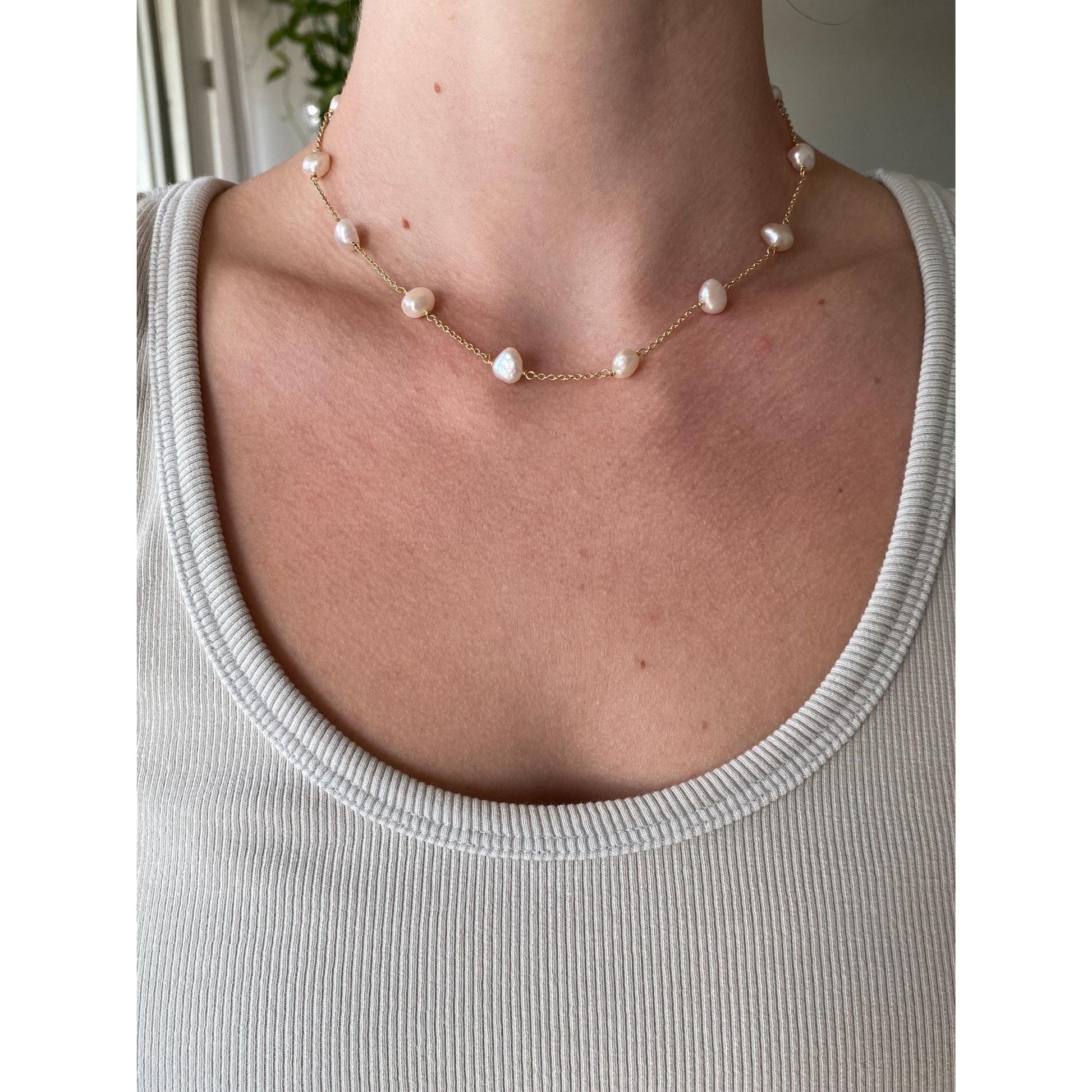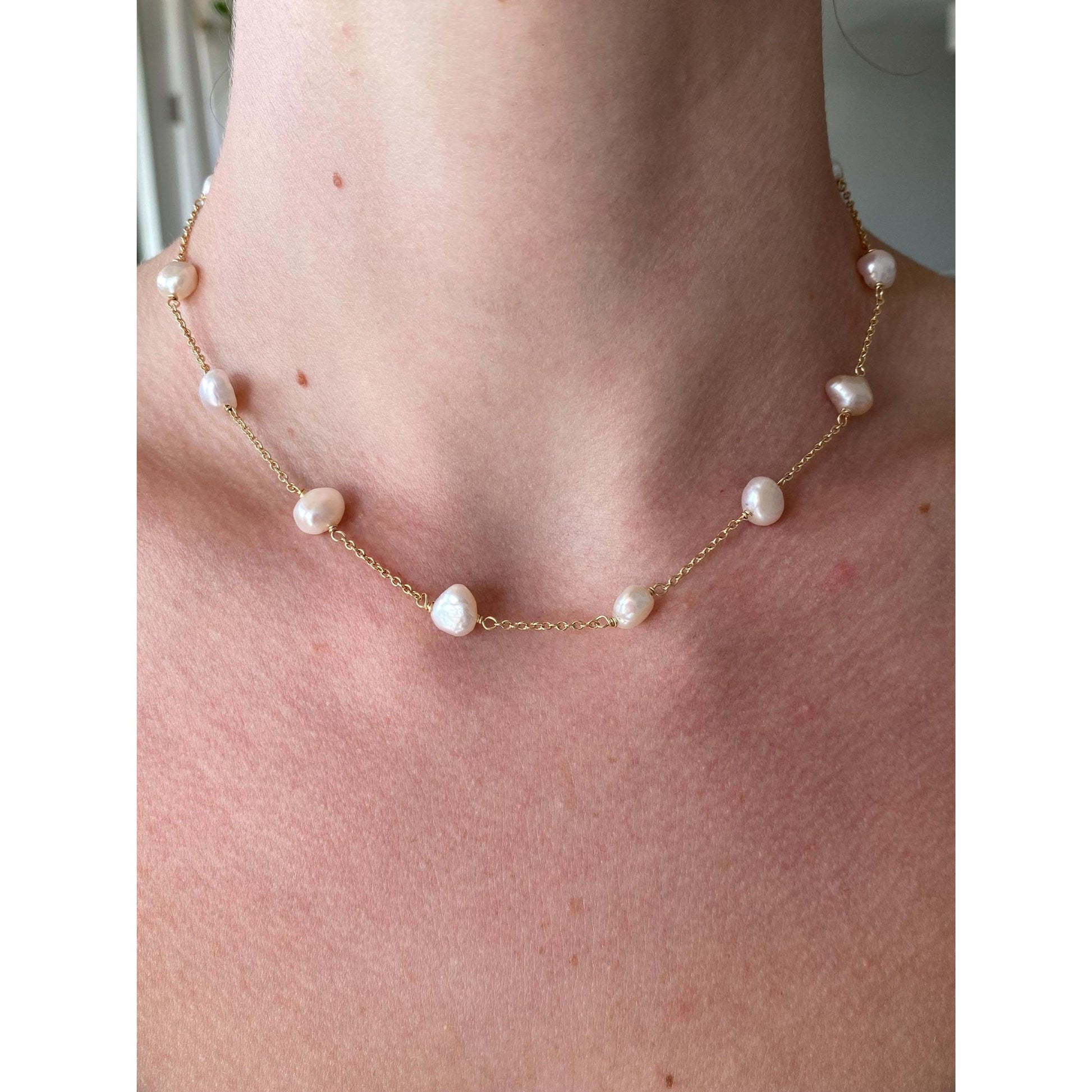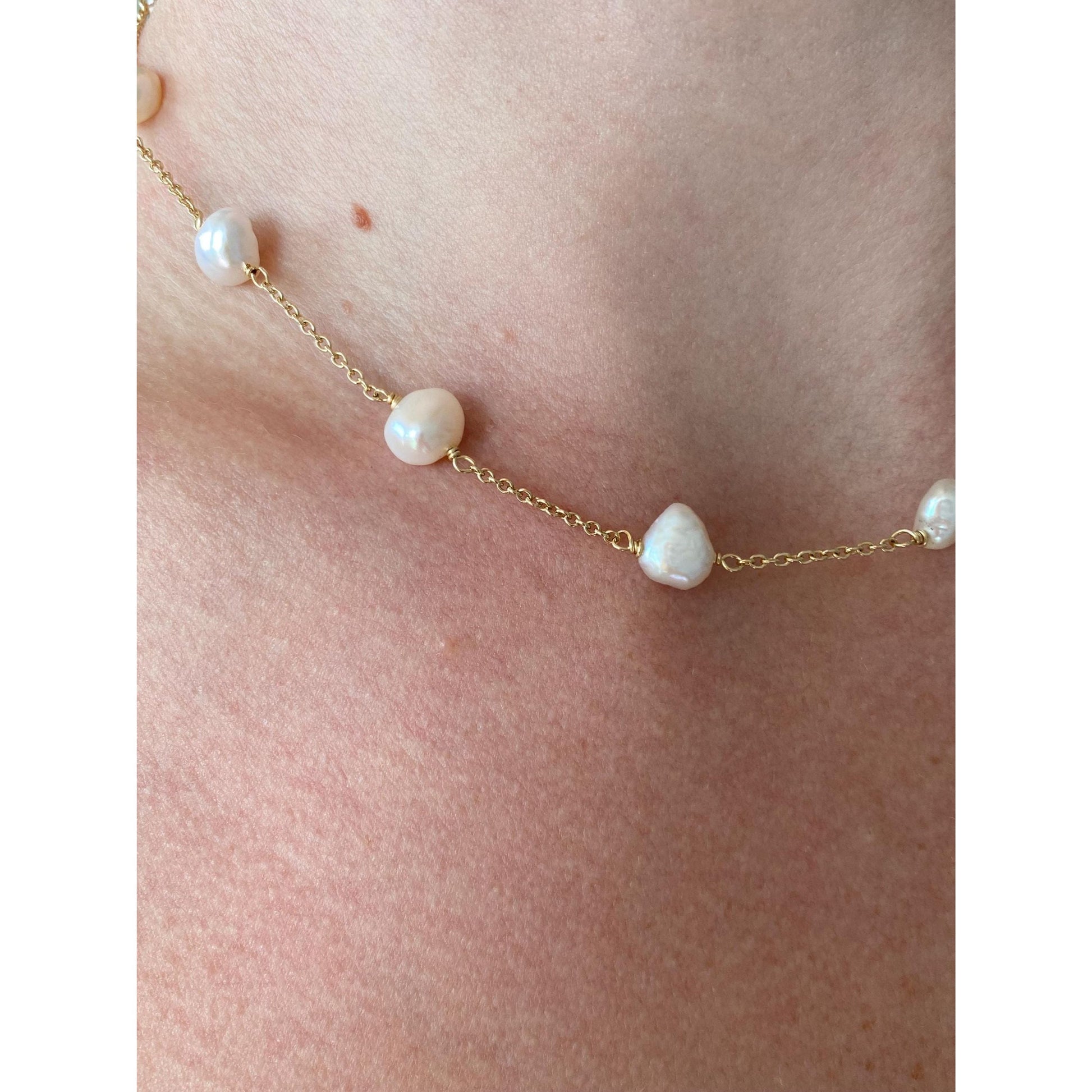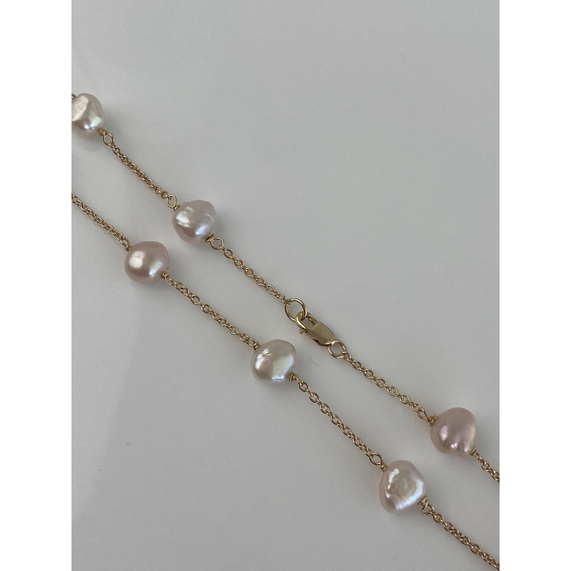 Vintage Solid 14k Yellow Gold Pearls Cable Chain Necklace - 15.75 inches