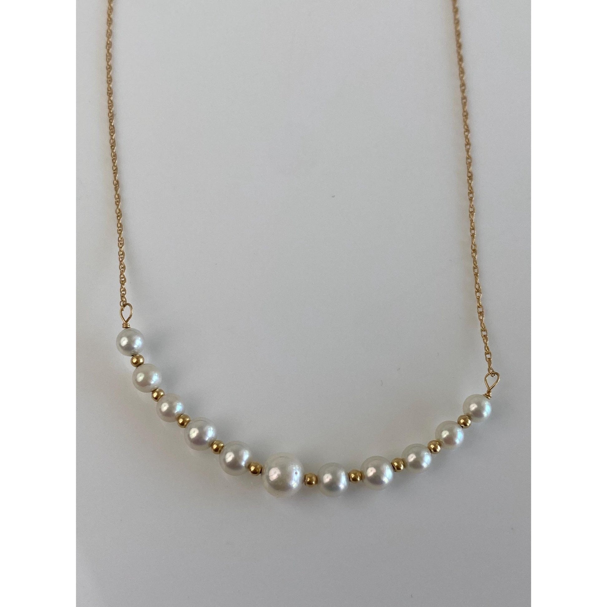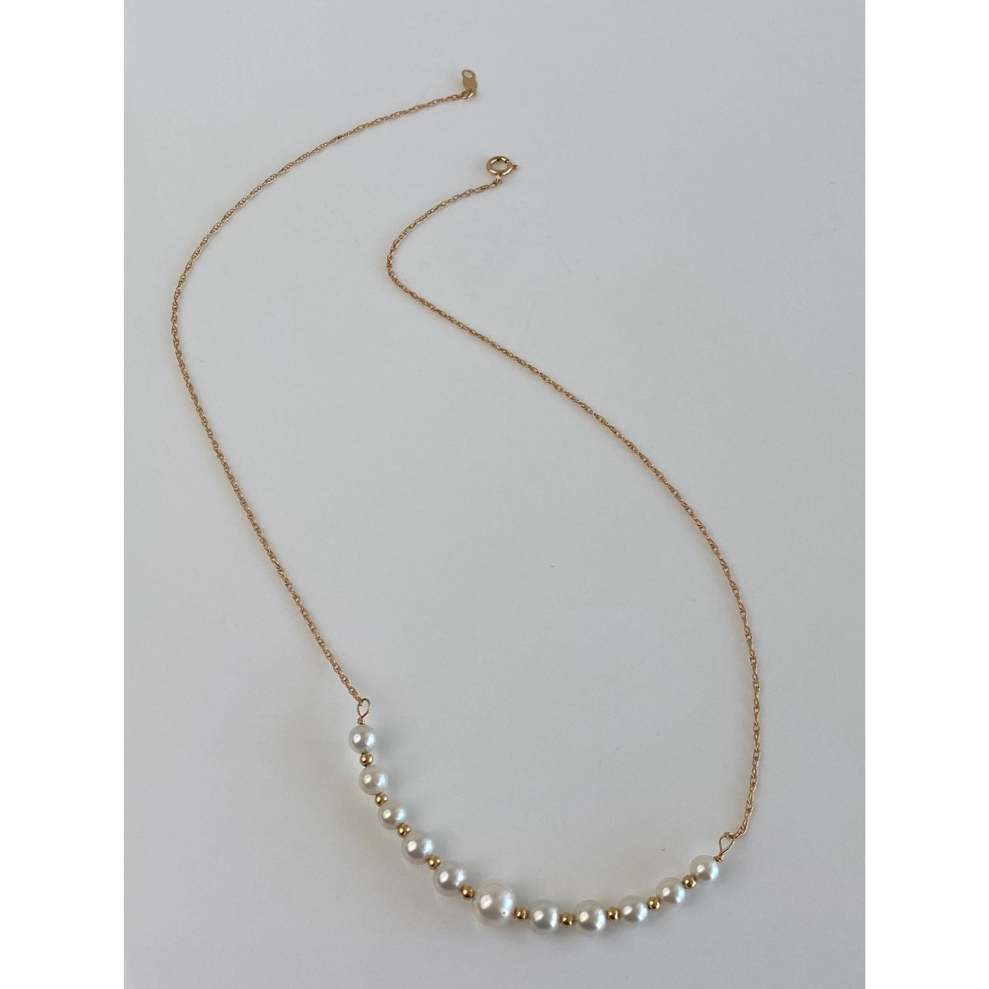 Vintage Solid 14k Yellow Gold Pearls Gold Ball Dainty Chain Necklace - 15.5 inches