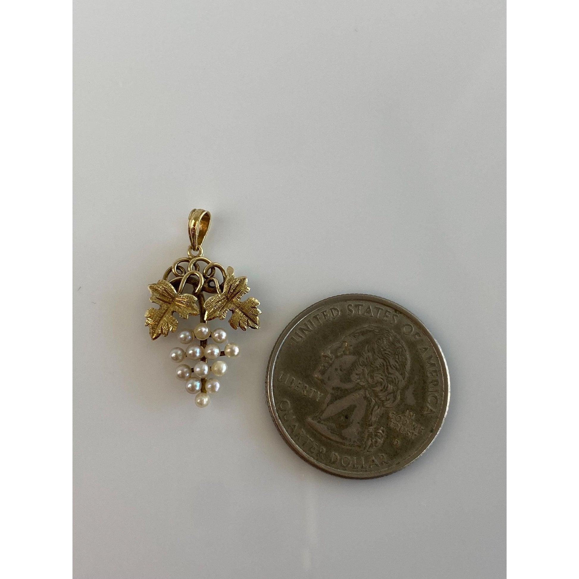 Vintage Solid 14k Yellow Gold Pearls Grape Leaves Charm