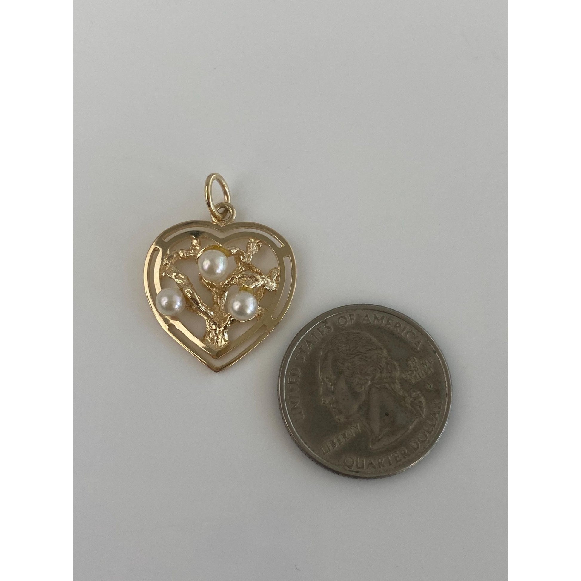 Vintage Solid 14k Yellow Gold Pearls Tree Heart Charm