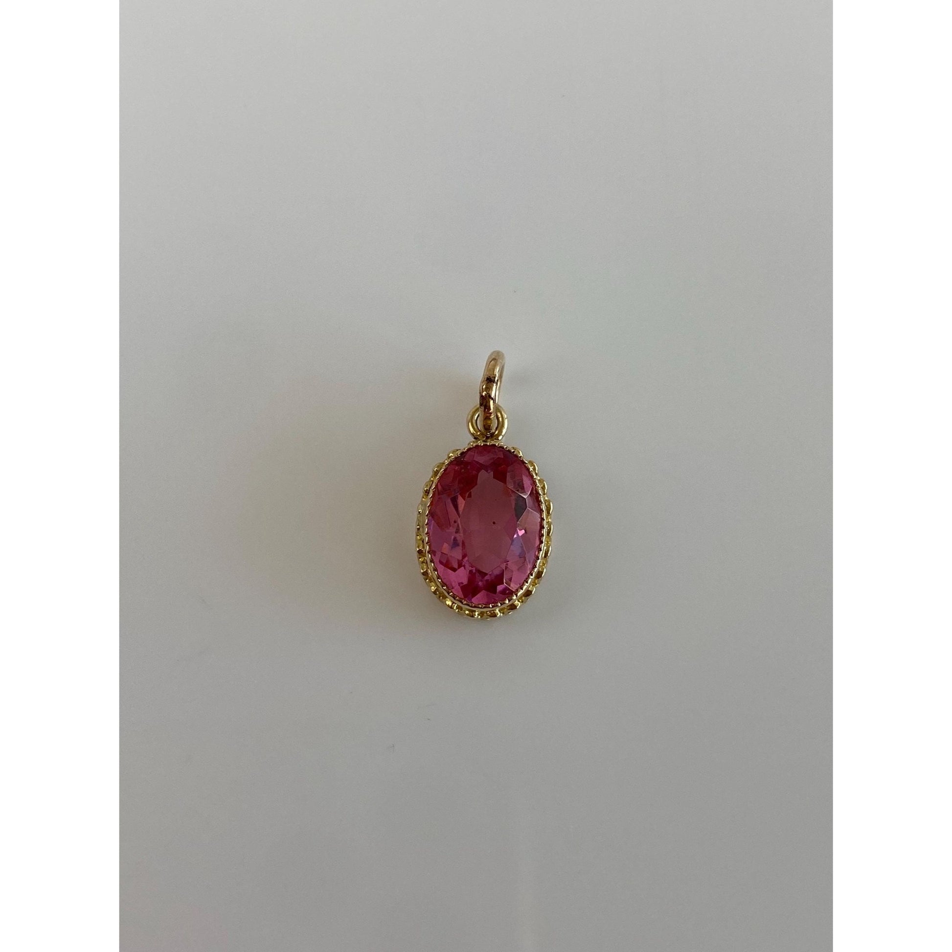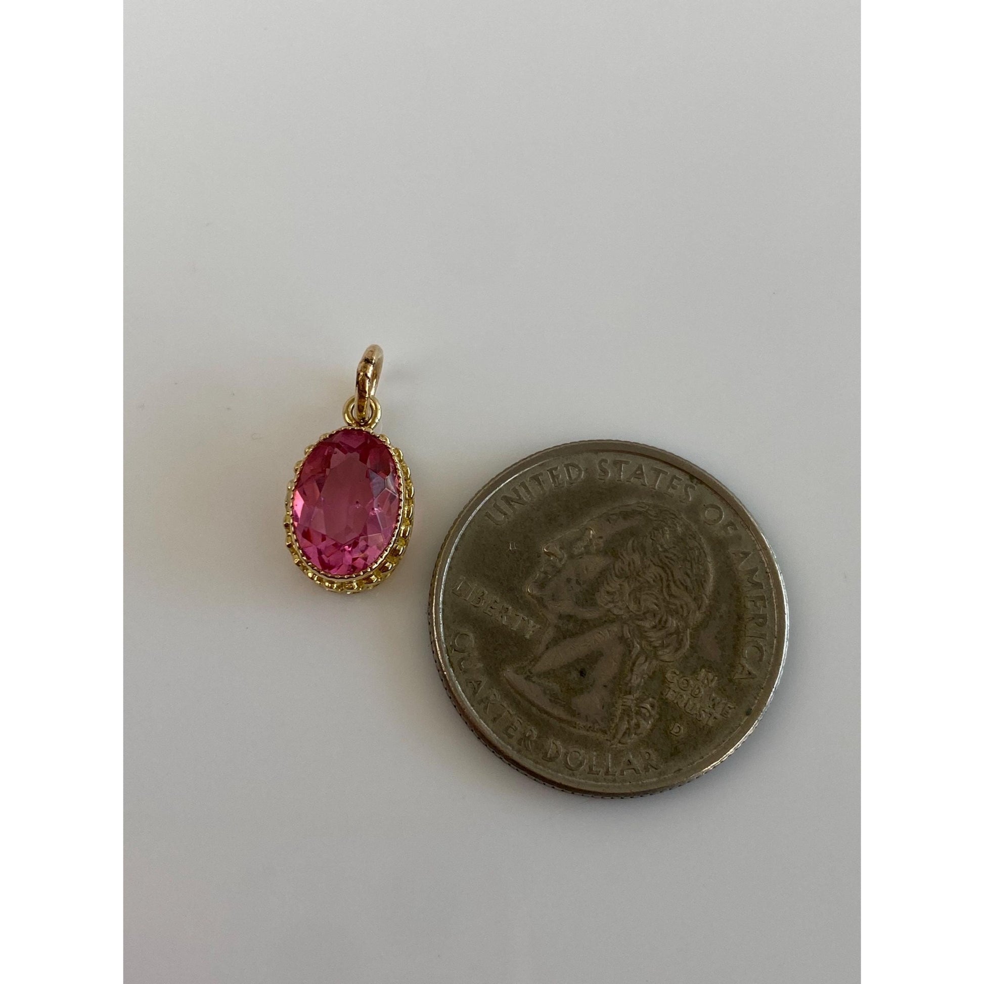 Vintage Solid 14k Yellow Gold Pink Cubic Zirconia Stick Pin Conversion Charm
