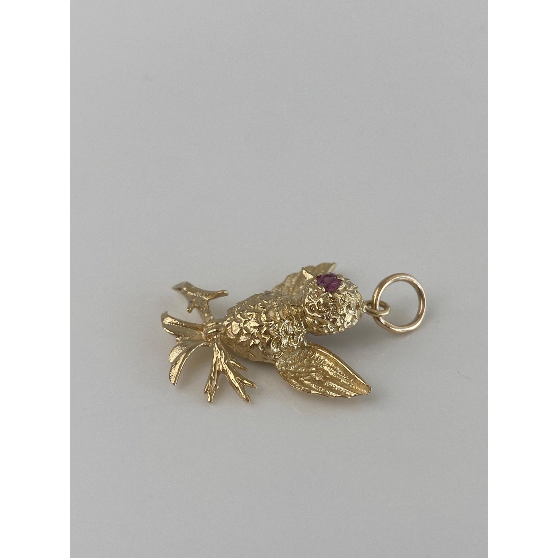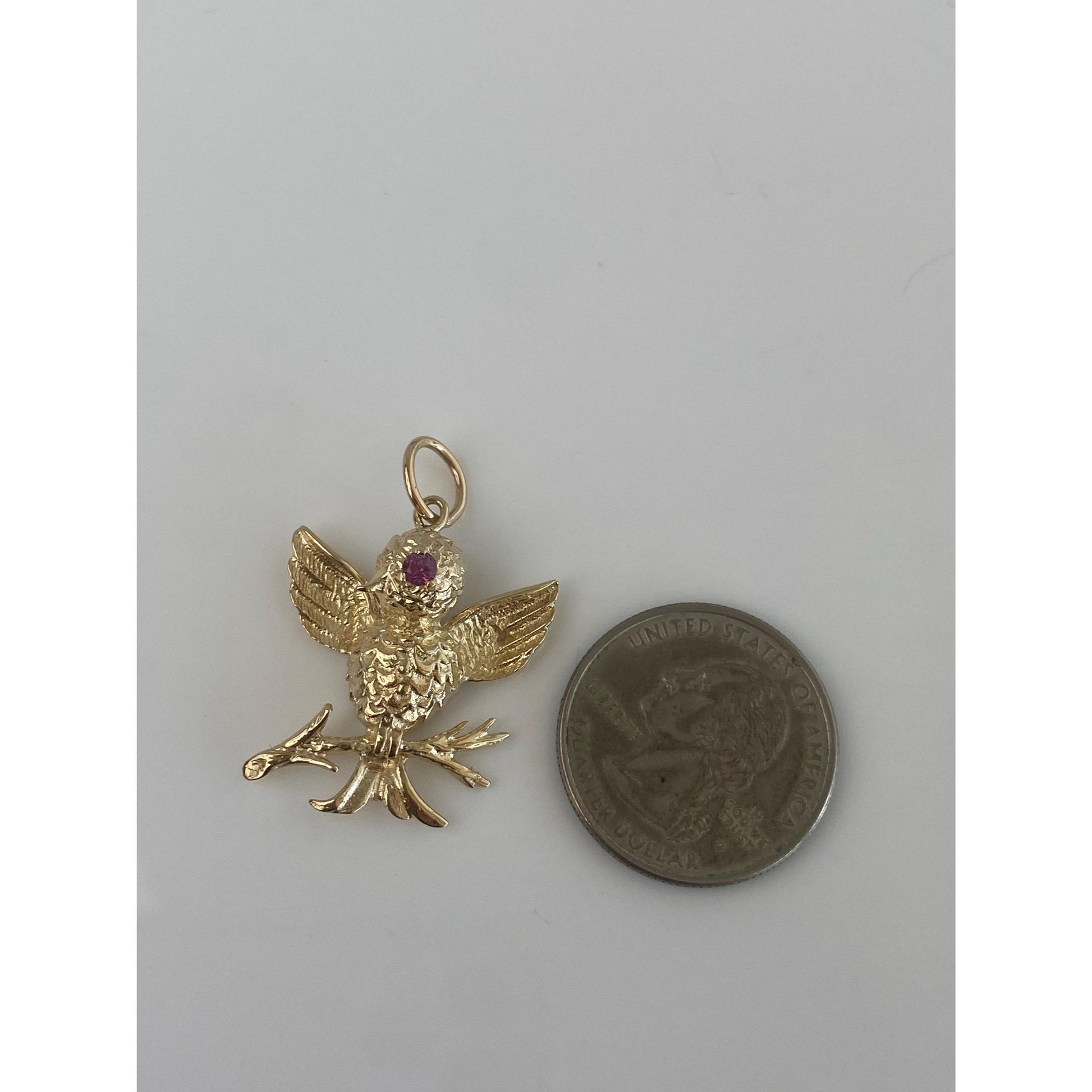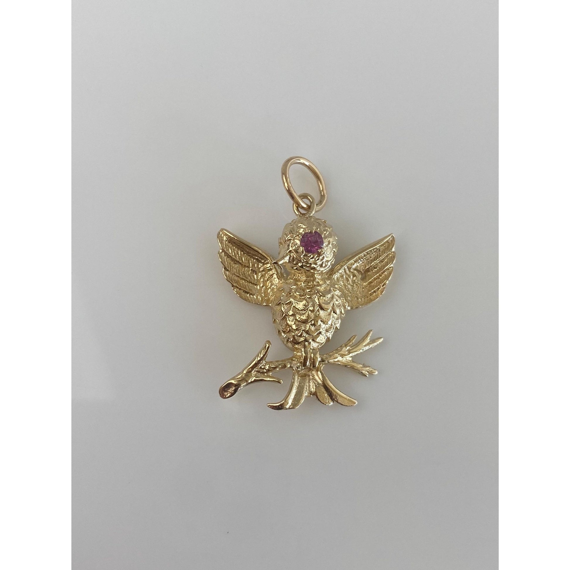 Vintage Solid 14k Yellow Gold Pink Sapphire Bird Branch Charm