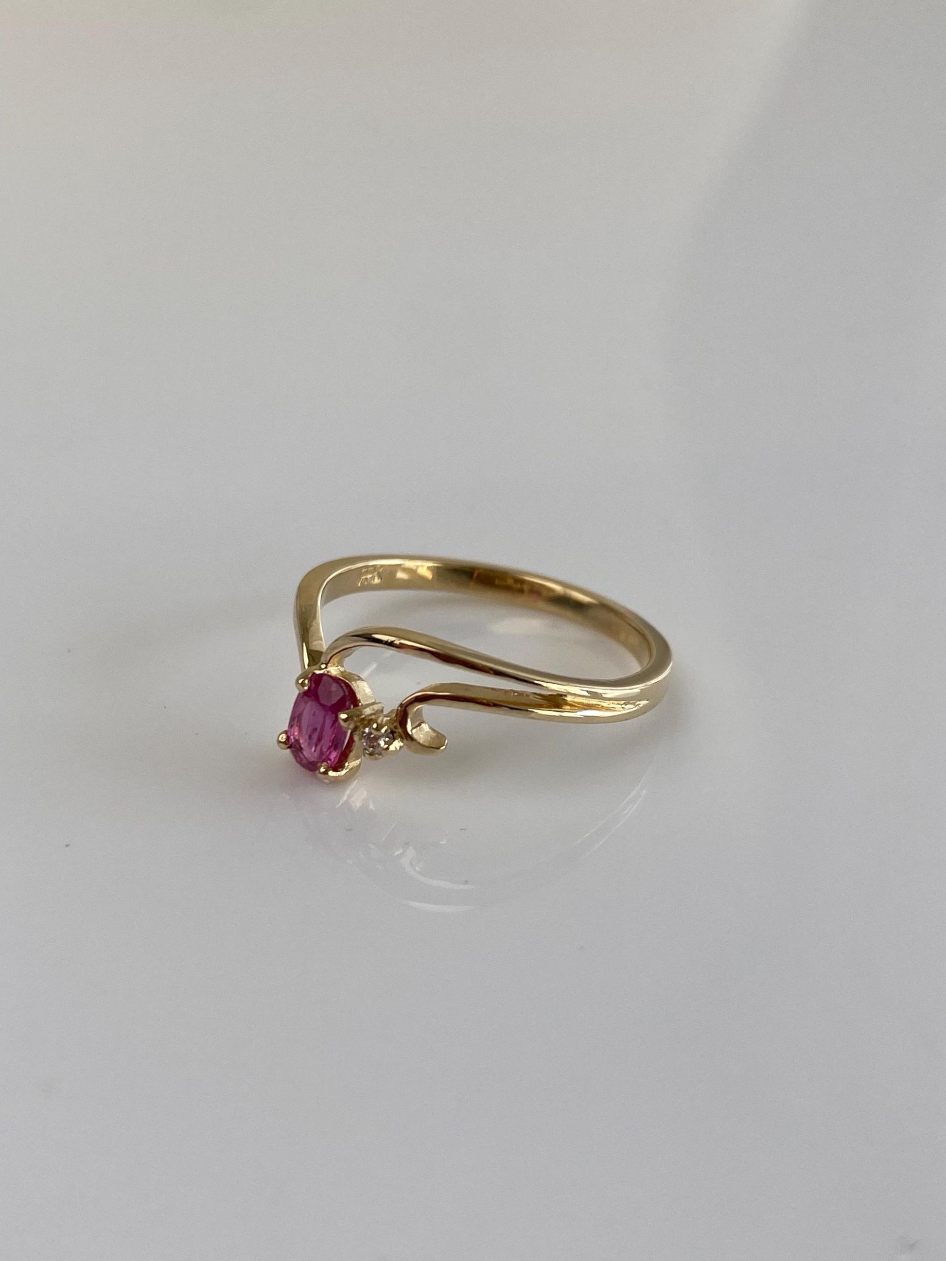 Vintage Solid 14k Yellow Gold Pink Sapphire Diamond Ring - Size 5.5