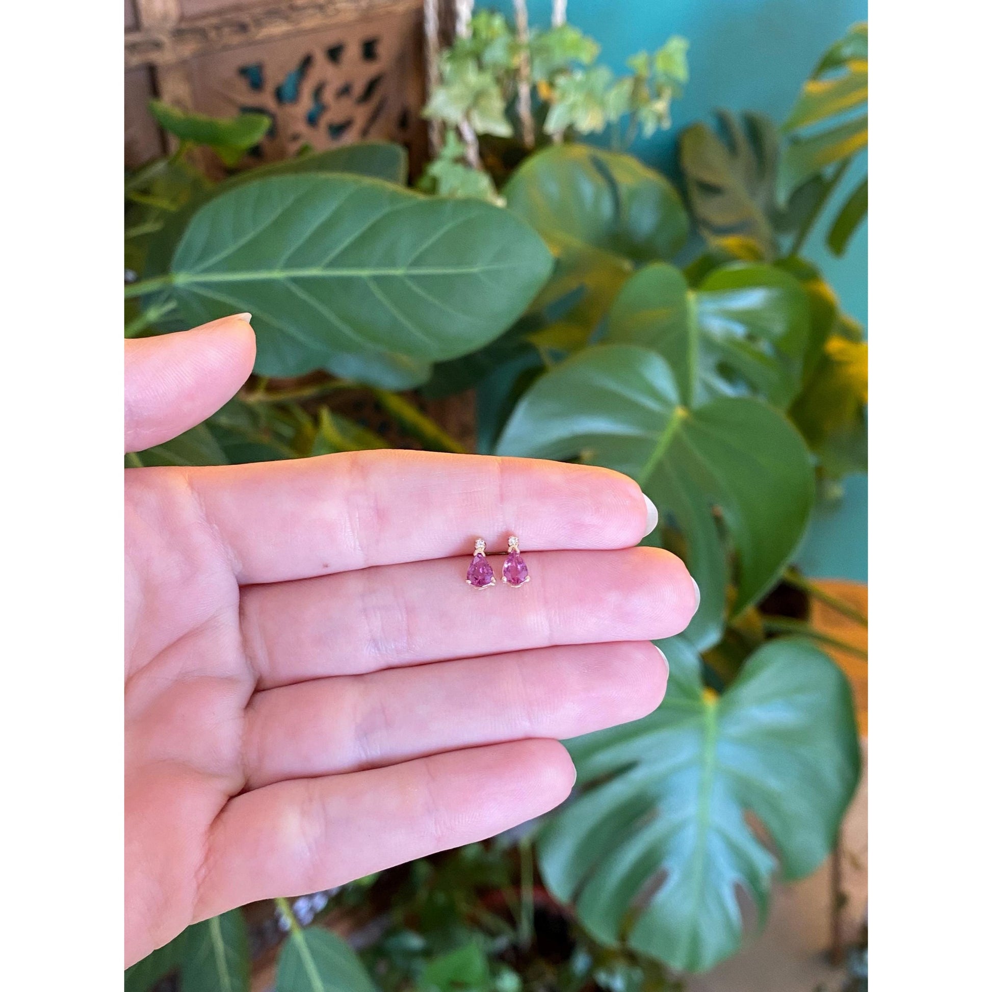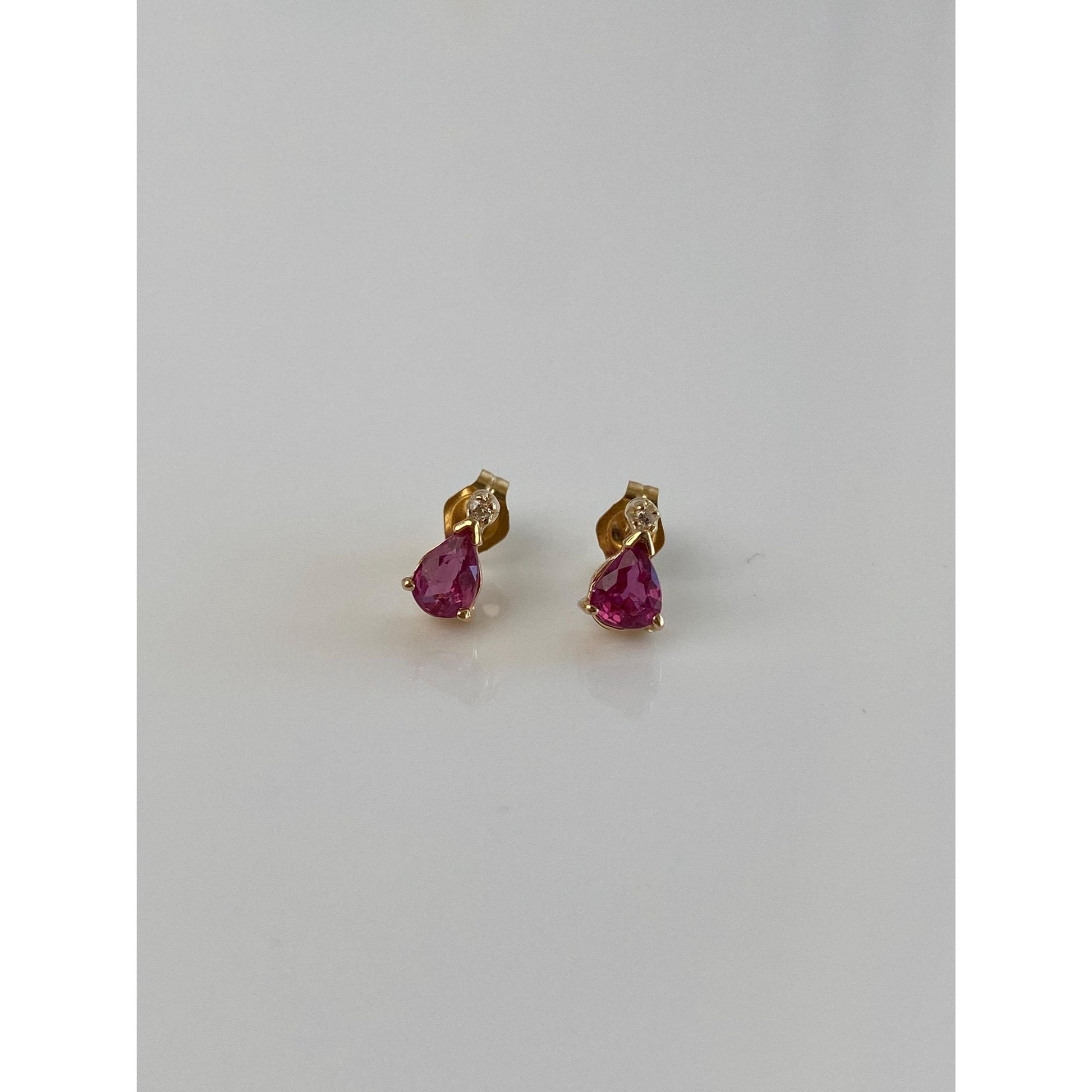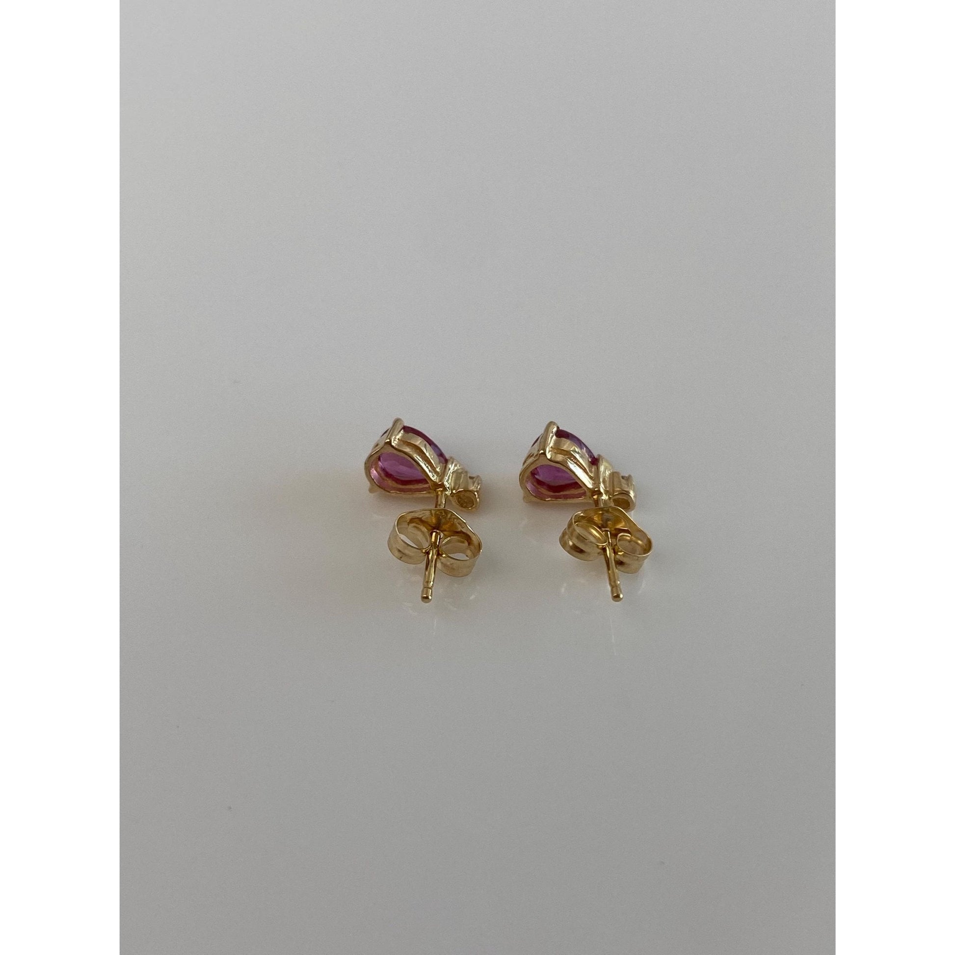 Vintage Solid 14k Yellow Gold Pink Sapphire Diamond Stud Earrings