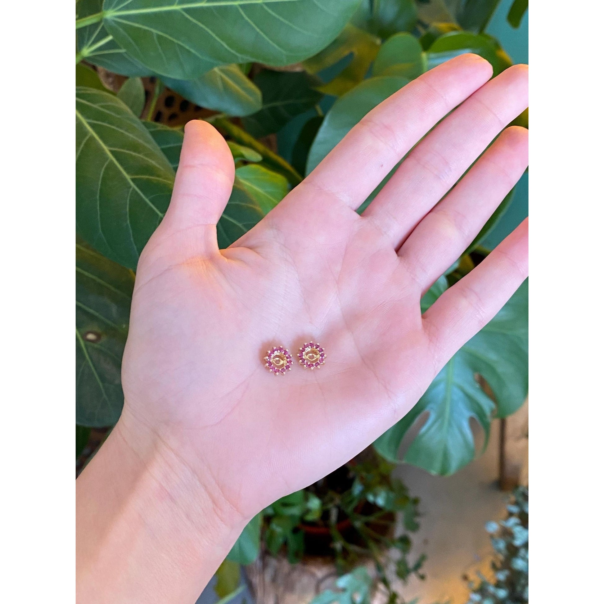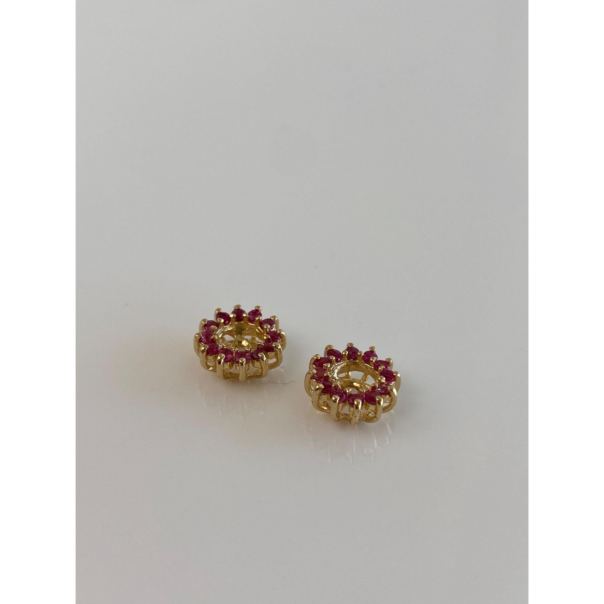 Vintage Solid 14k Yellow Gold Pink Sapphire Flower Earring Jackets