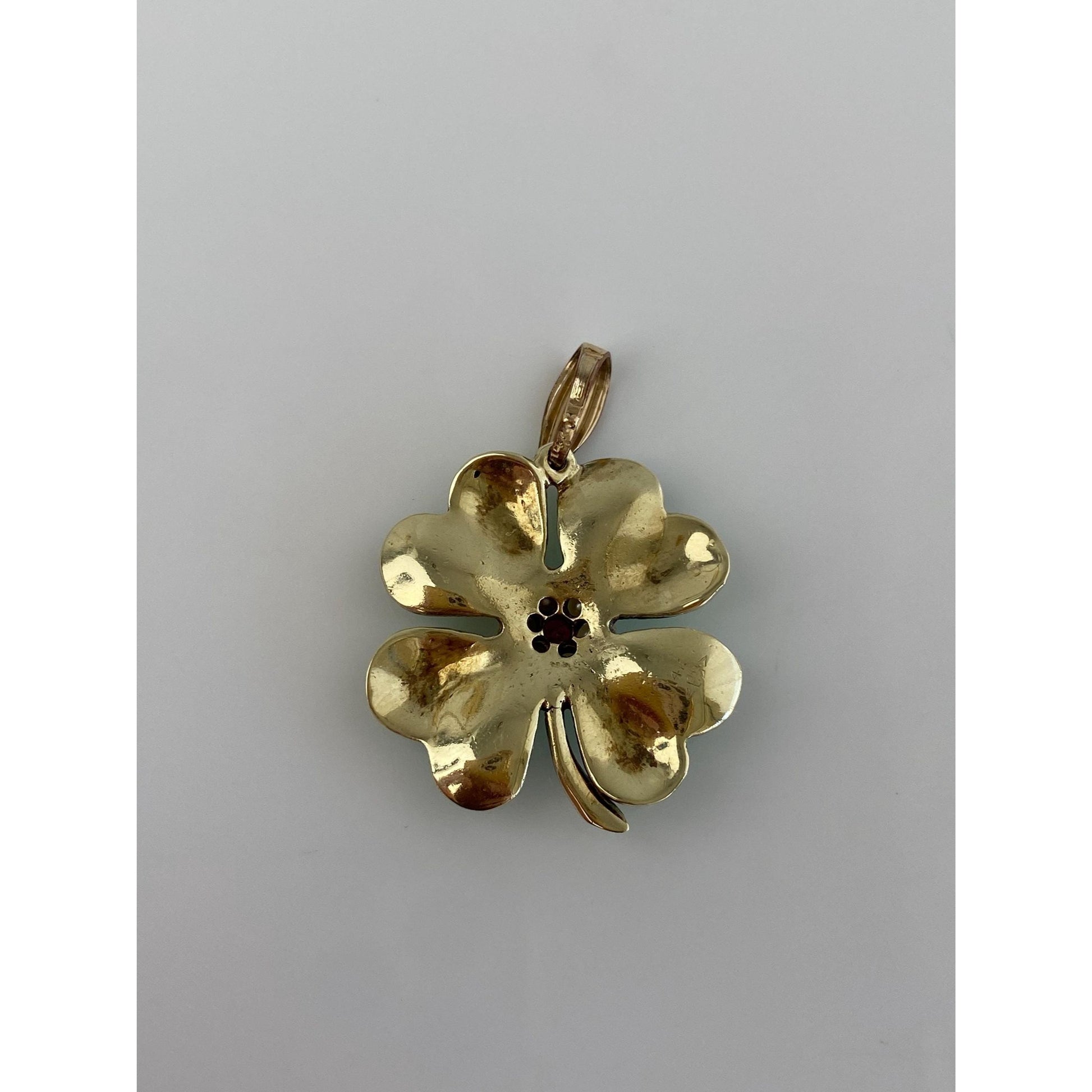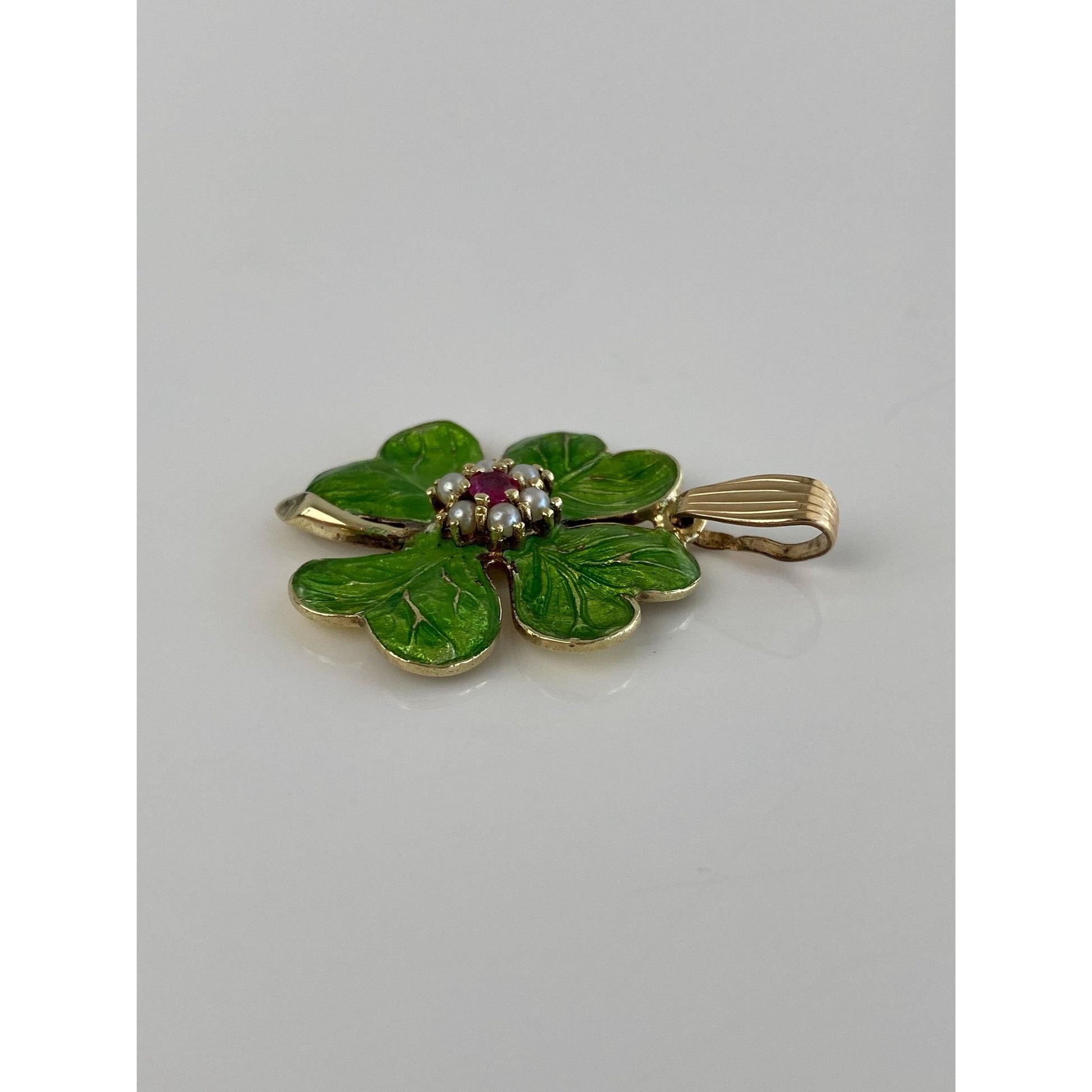 Vintage Solid 14k Yellow Gold Pink Sapphire Seed Pearl Green Enamel 4 Leaf Clover Charm