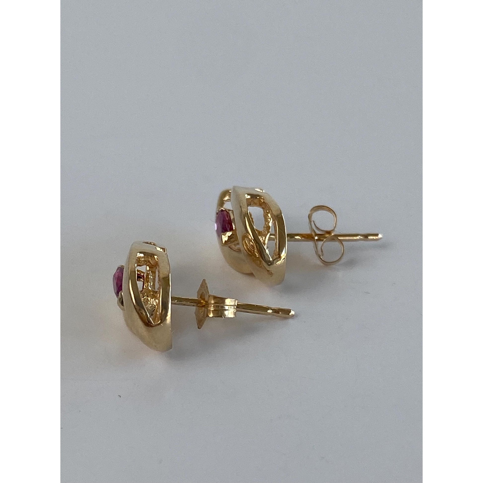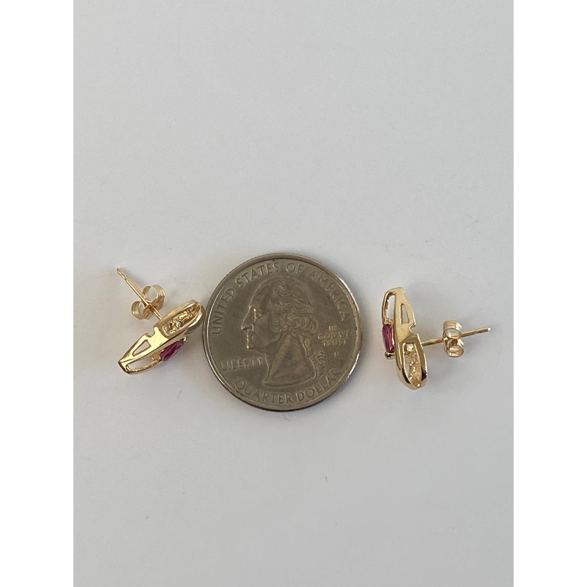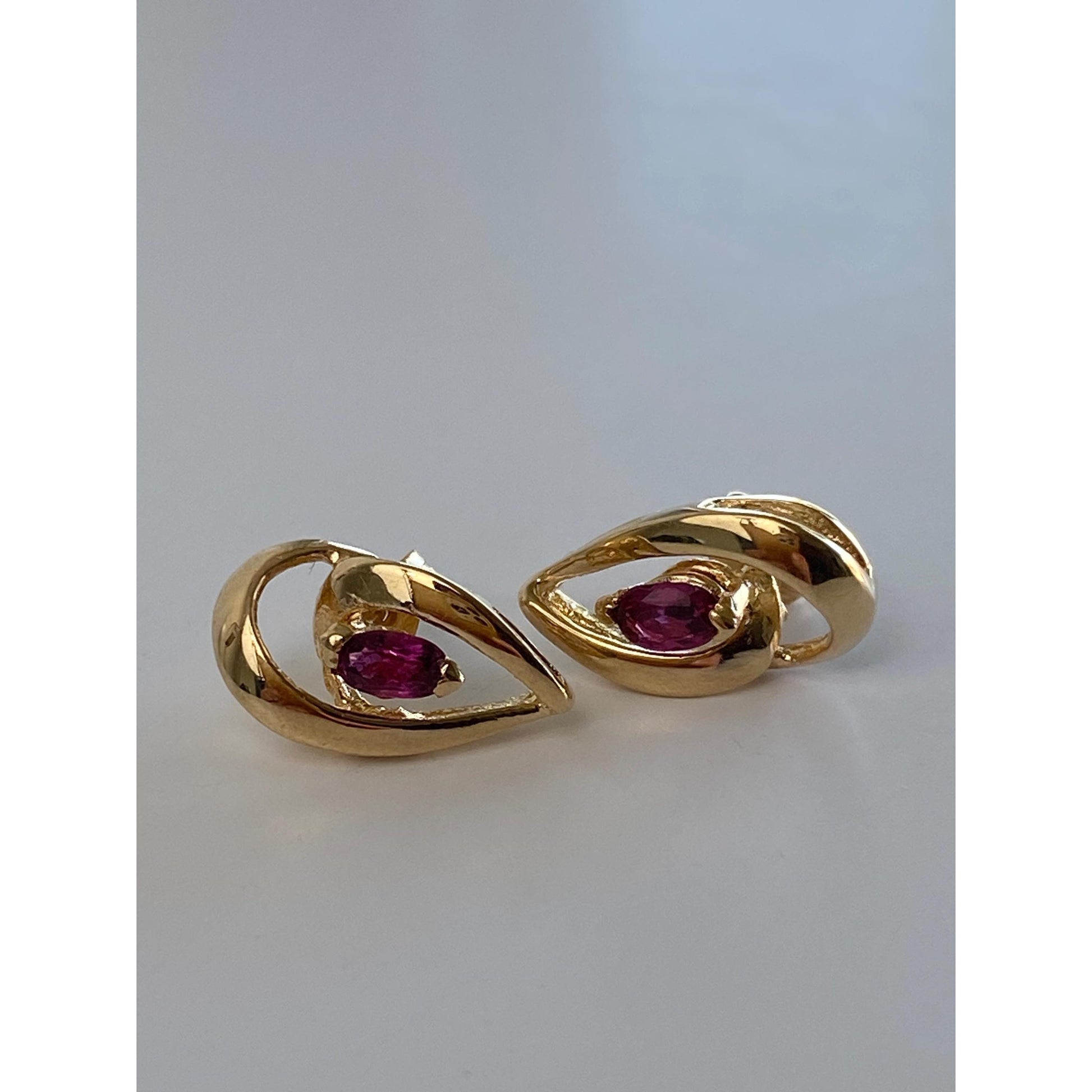 Vintage Solid 14k Yellow Gold Pink Sapphire Teardrop Stud Earrings