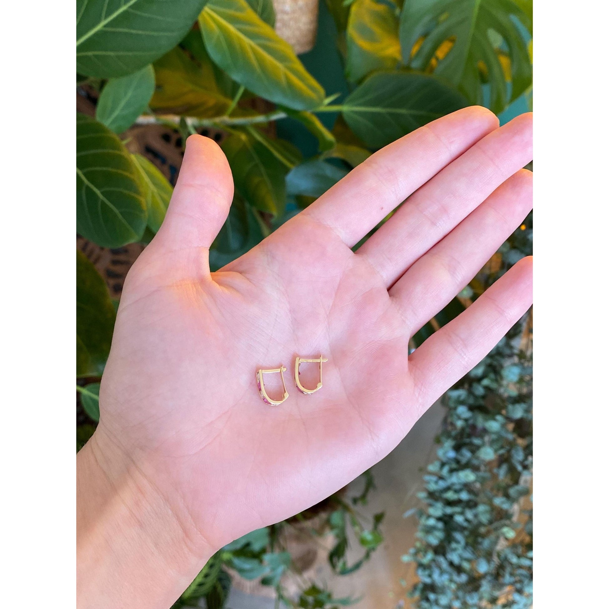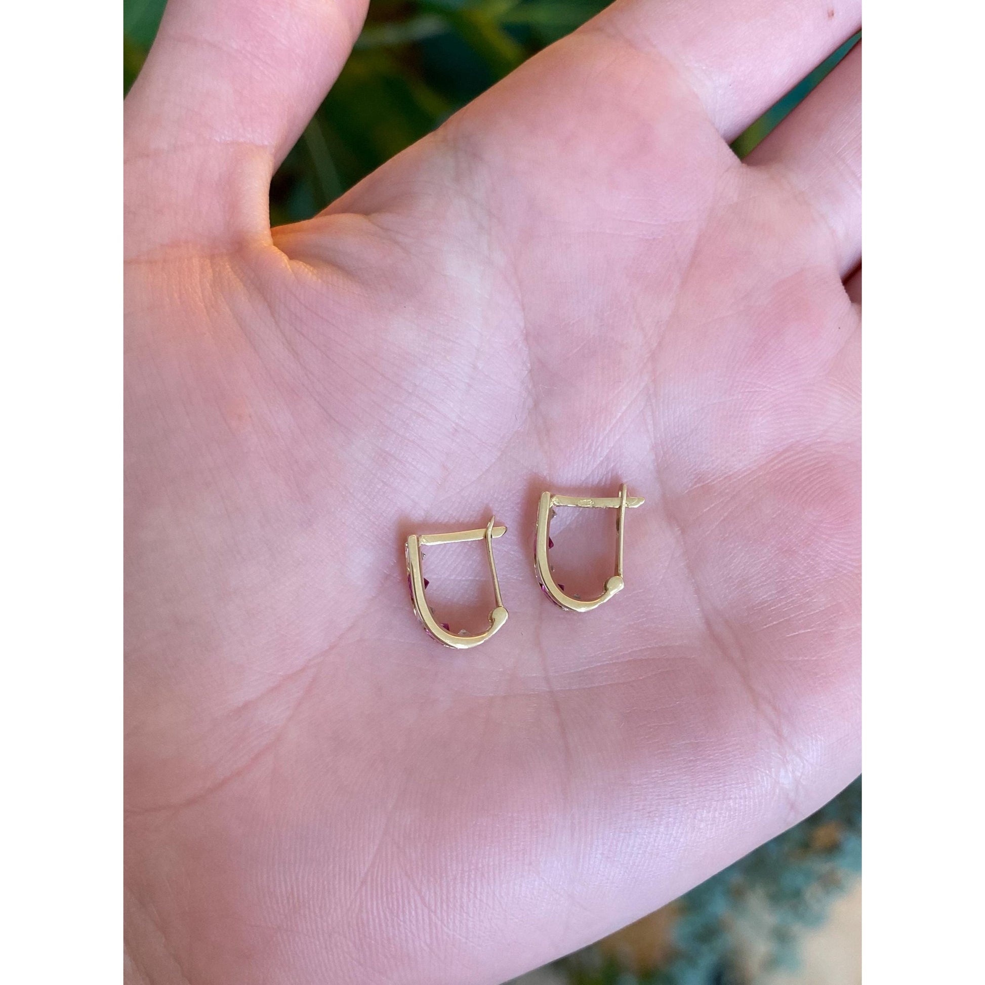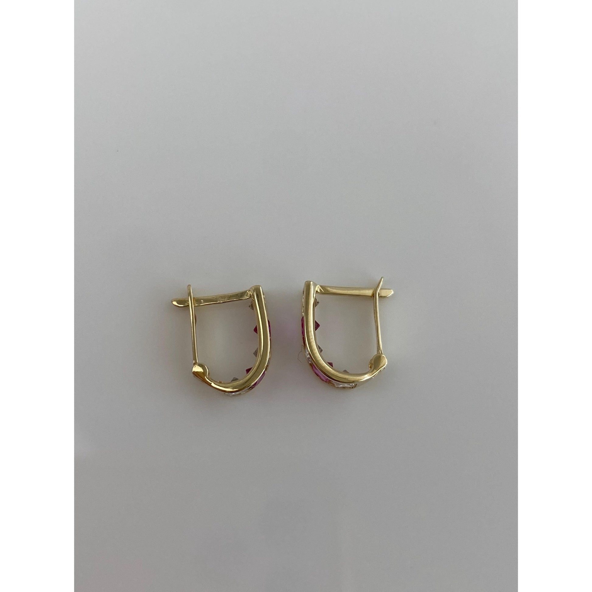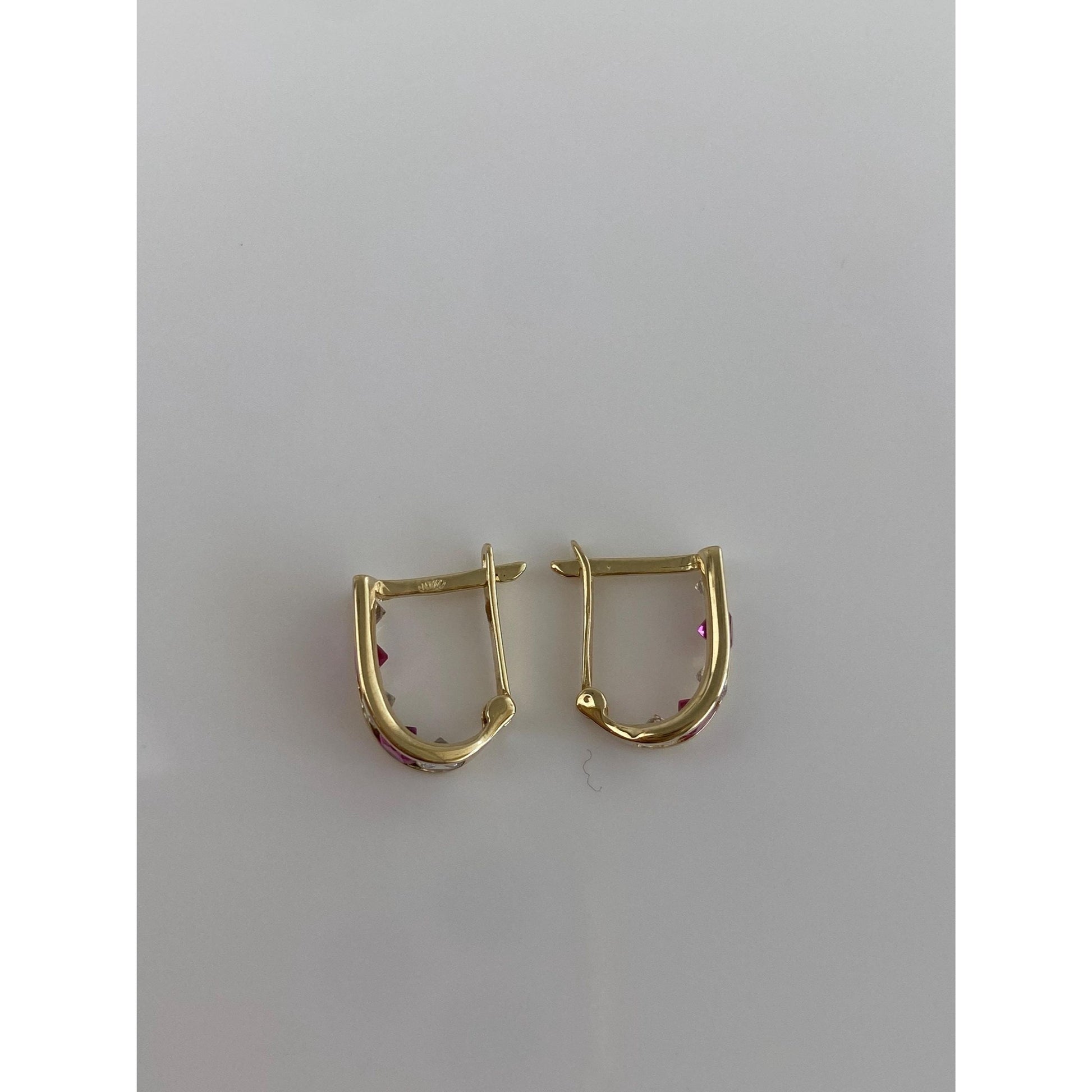 Vintage Solid 14k Yellow Gold Pink Spinel Clear Cubic Zirconia Drop Earrings