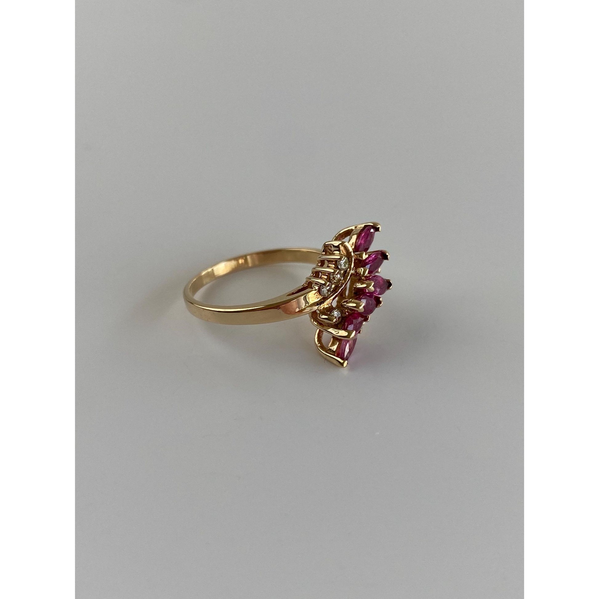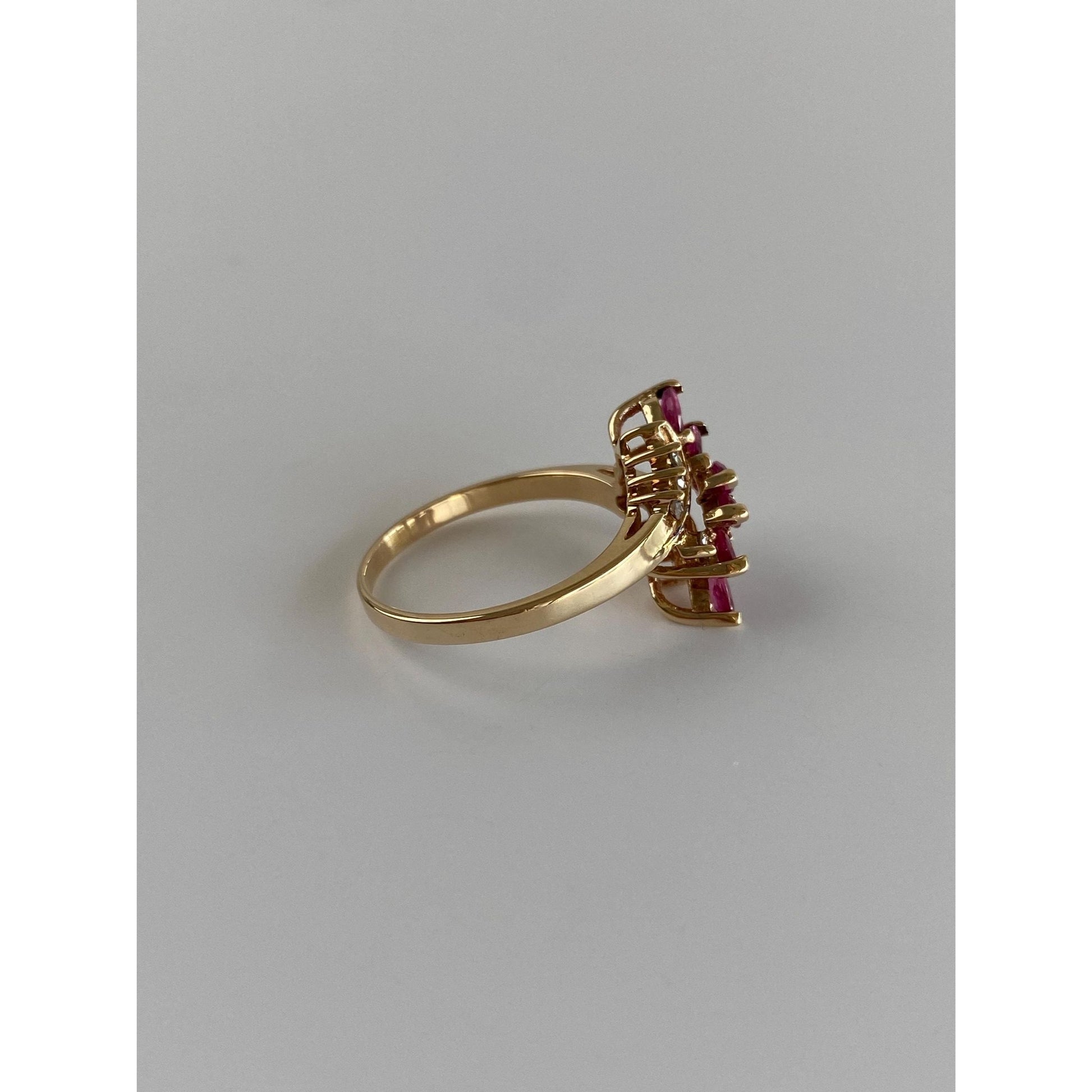 Vintage Solid 14k Yellow Gold Pink Spinel Diamond Twist Ring - Size 6