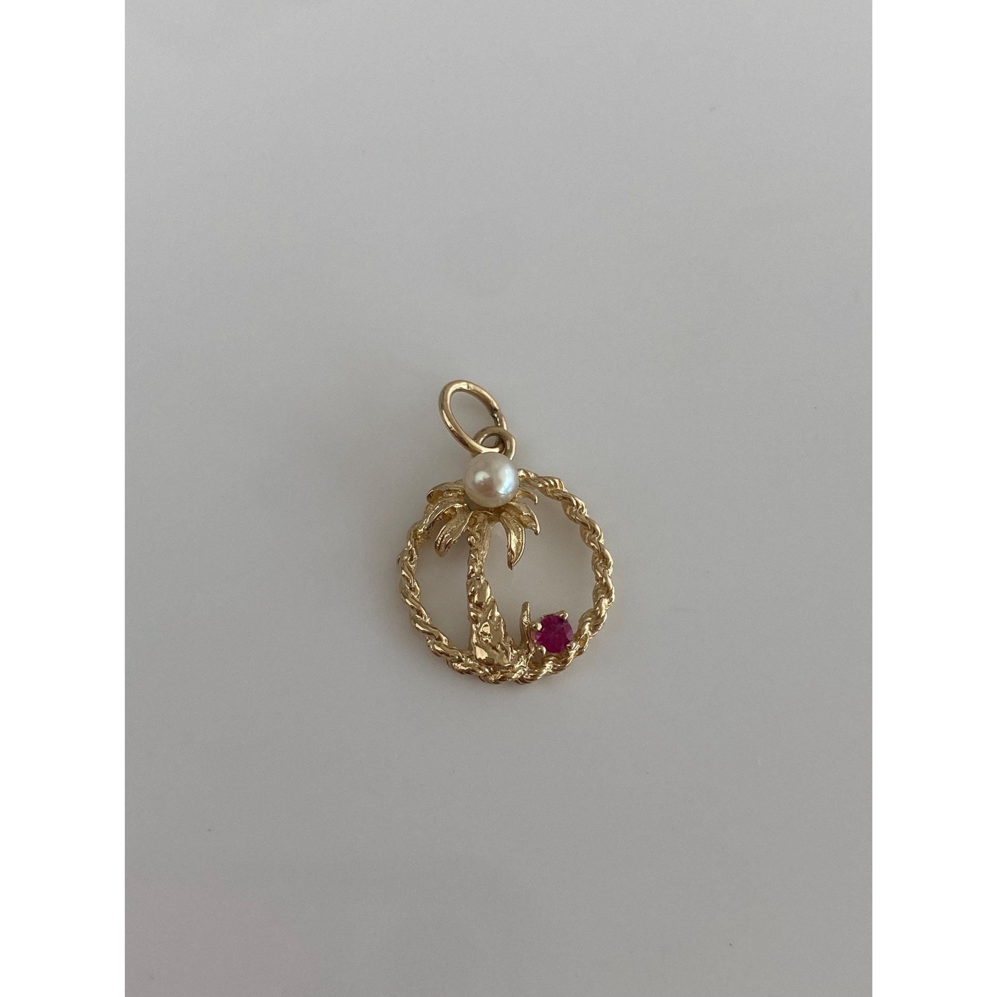 Vintage Solid 14k Yellow Gold Pink Spinel Pearl Palm Tree Charm