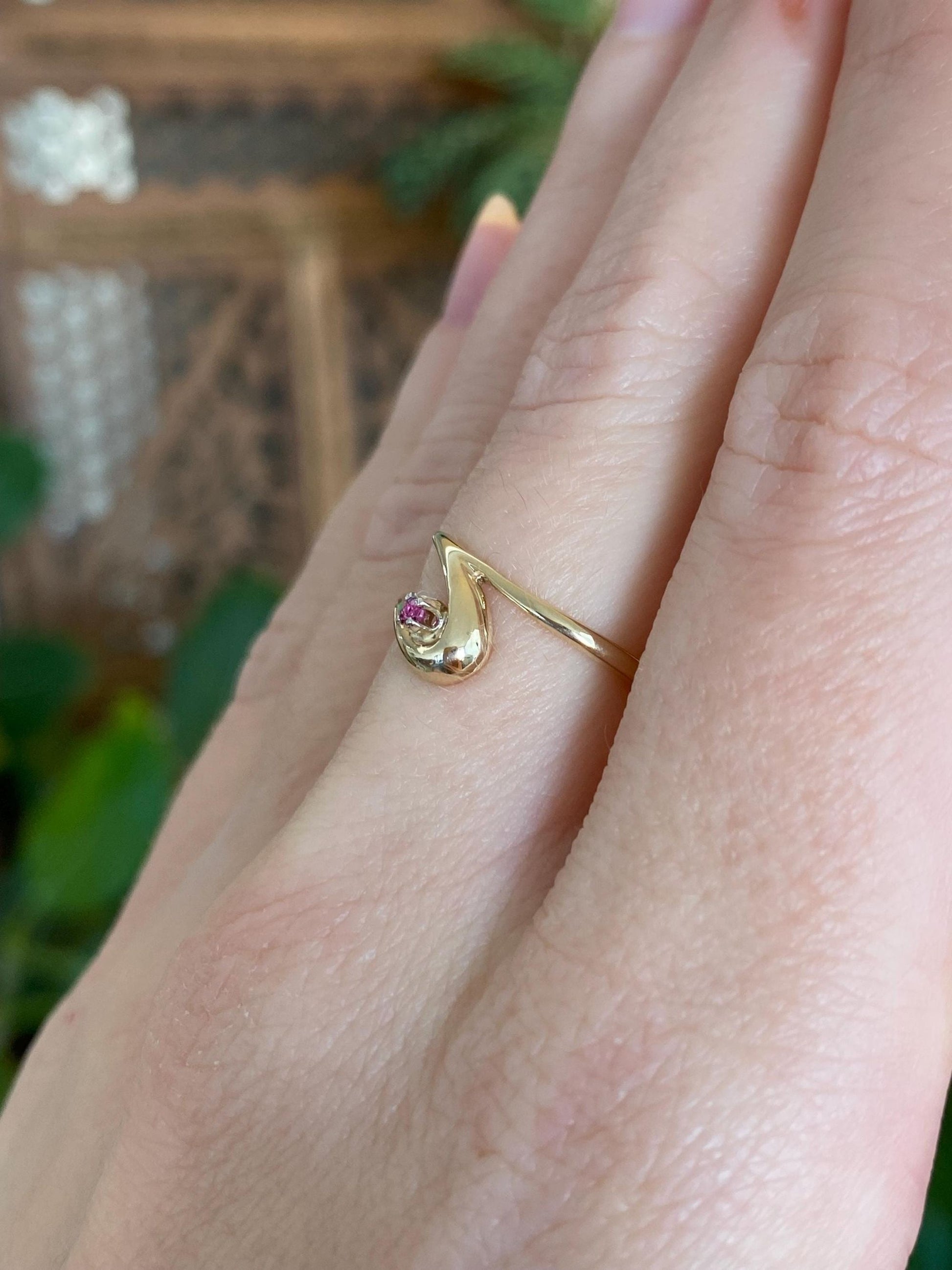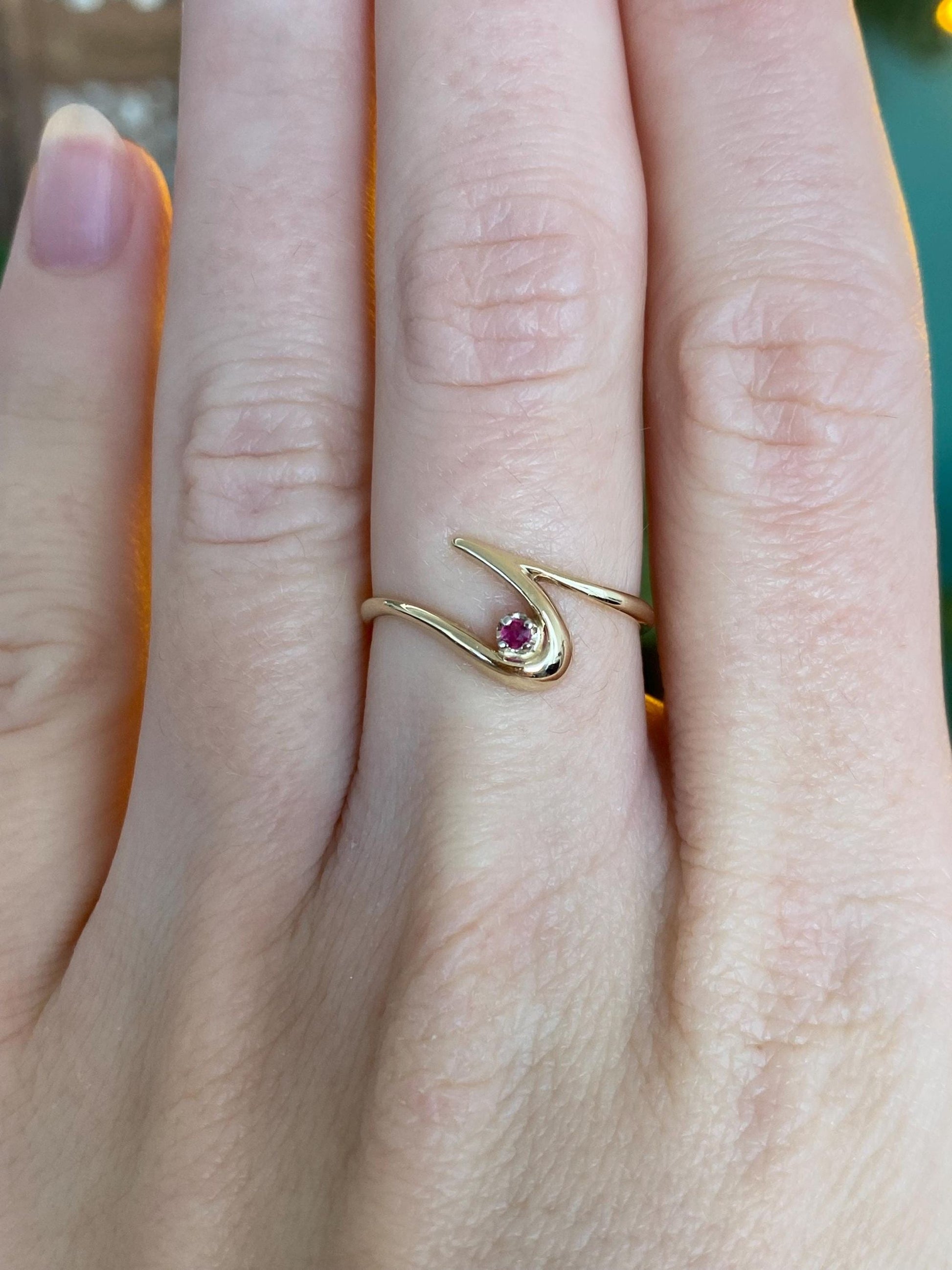 Vintage Solid 14k Yellow Gold Pink Spinel Twist Ring - Size 5.5