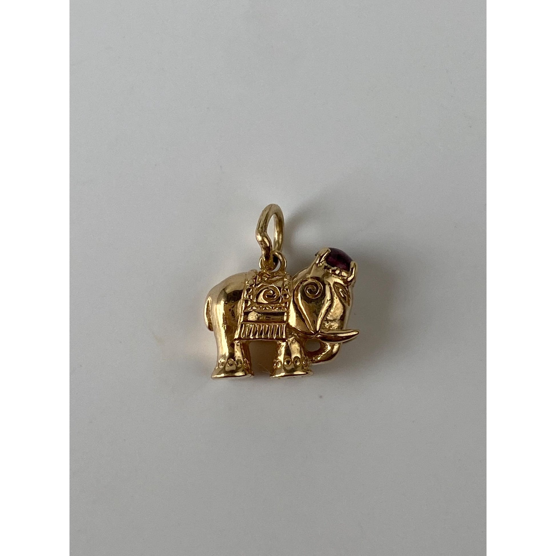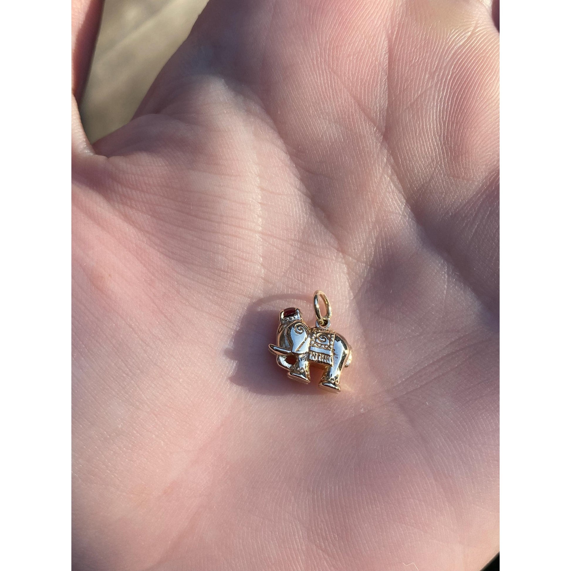 Vintage Solid 14k Yellow Gold Pink Tourmaline Elephant Charm