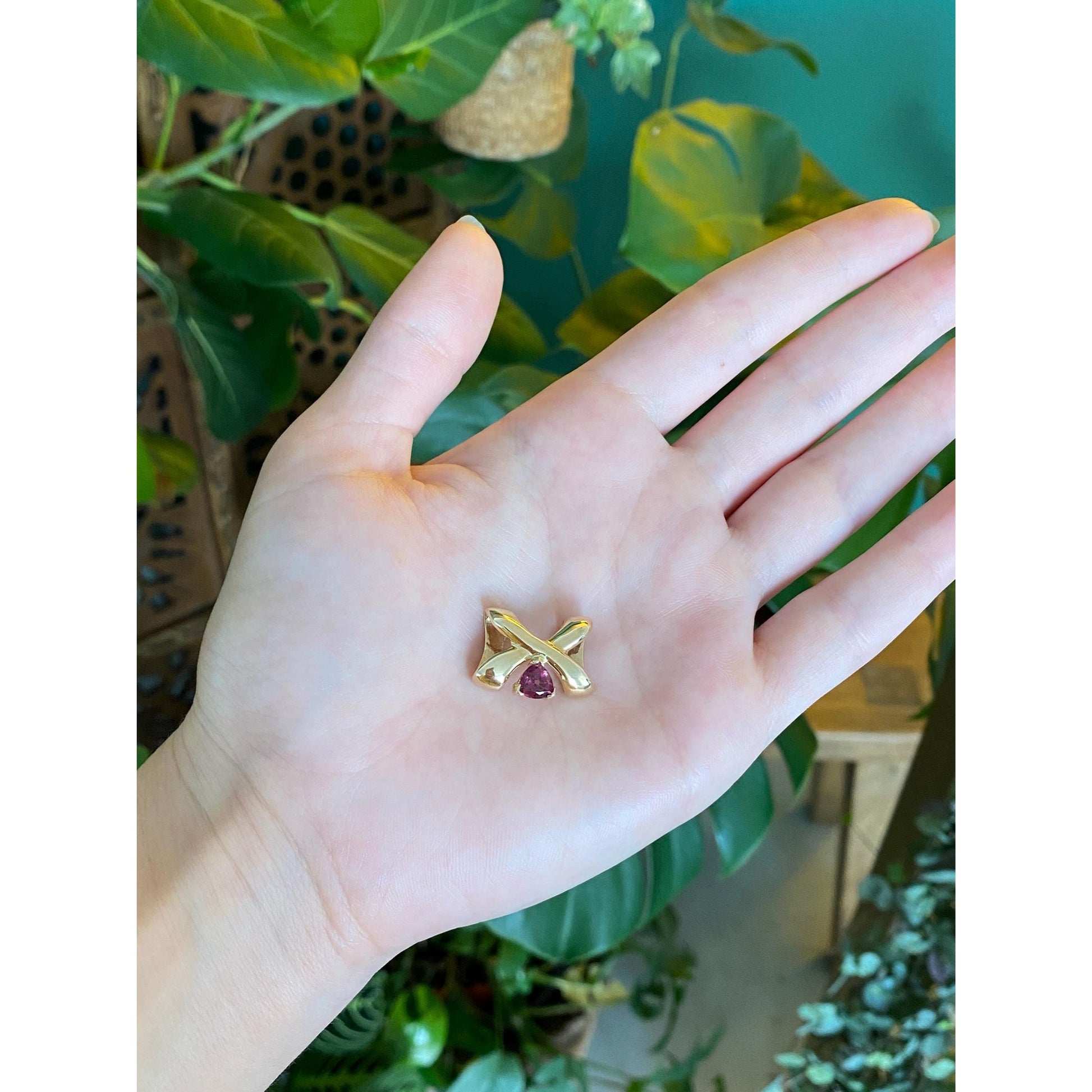Vintage Solid 14k Yellow Gold Pink Tourmaline X Slide Charm