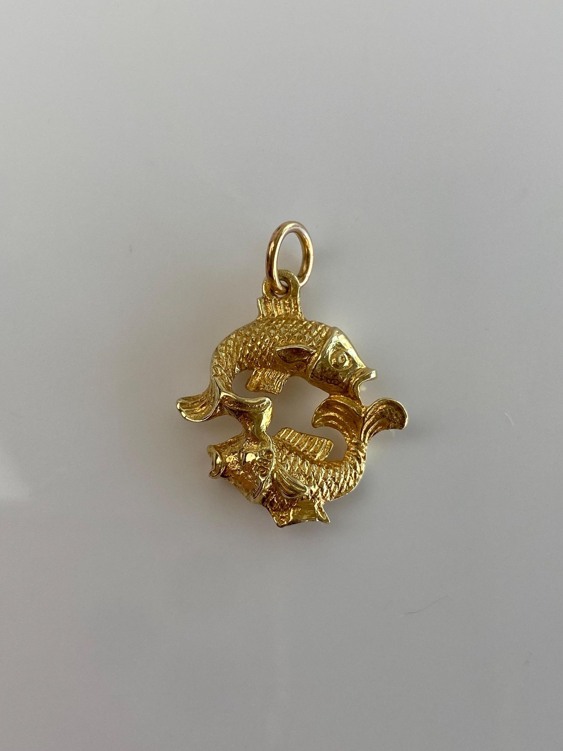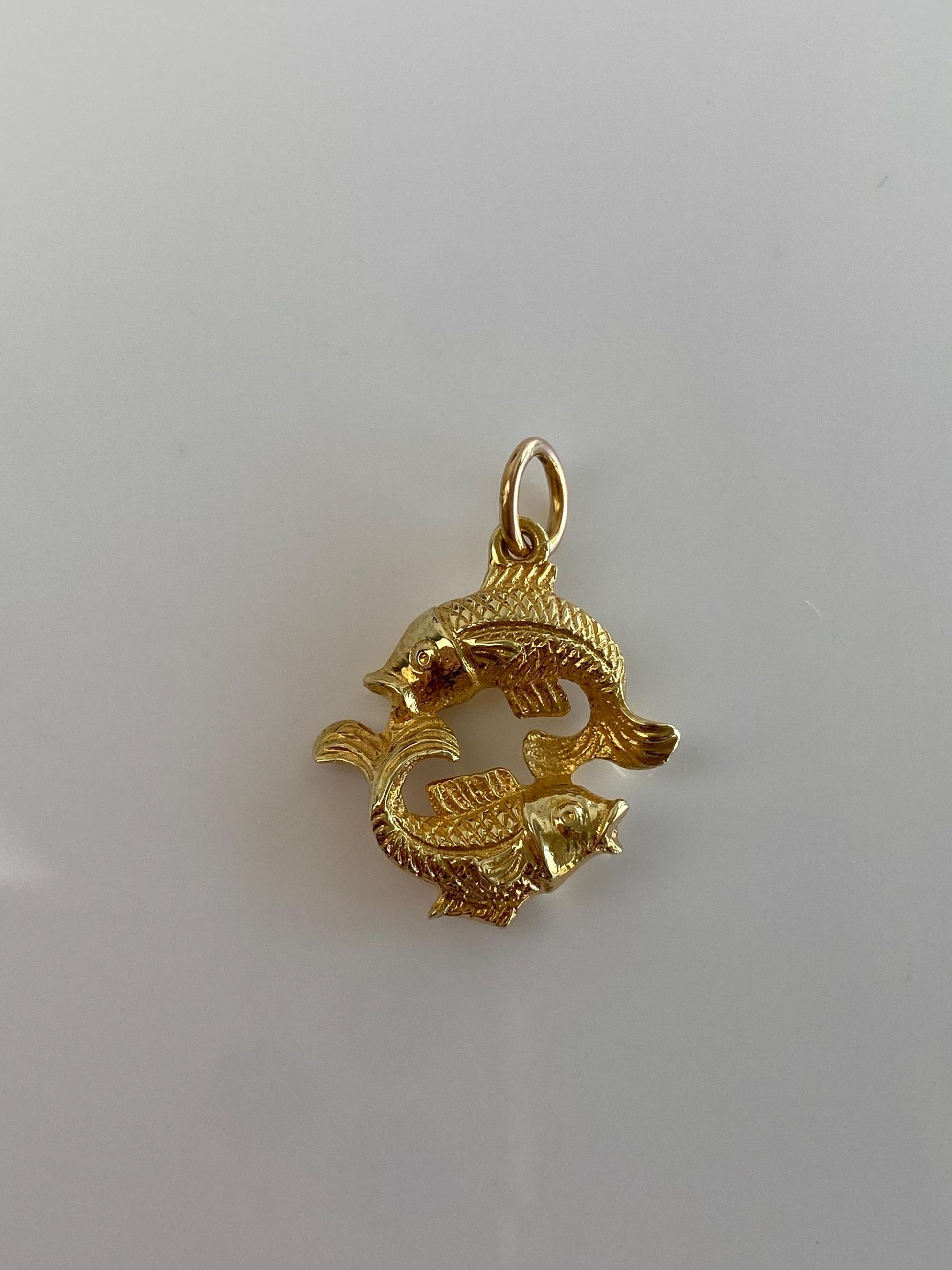 Vintage Solid 14k Yellow Gold Pisces Fish Charm
