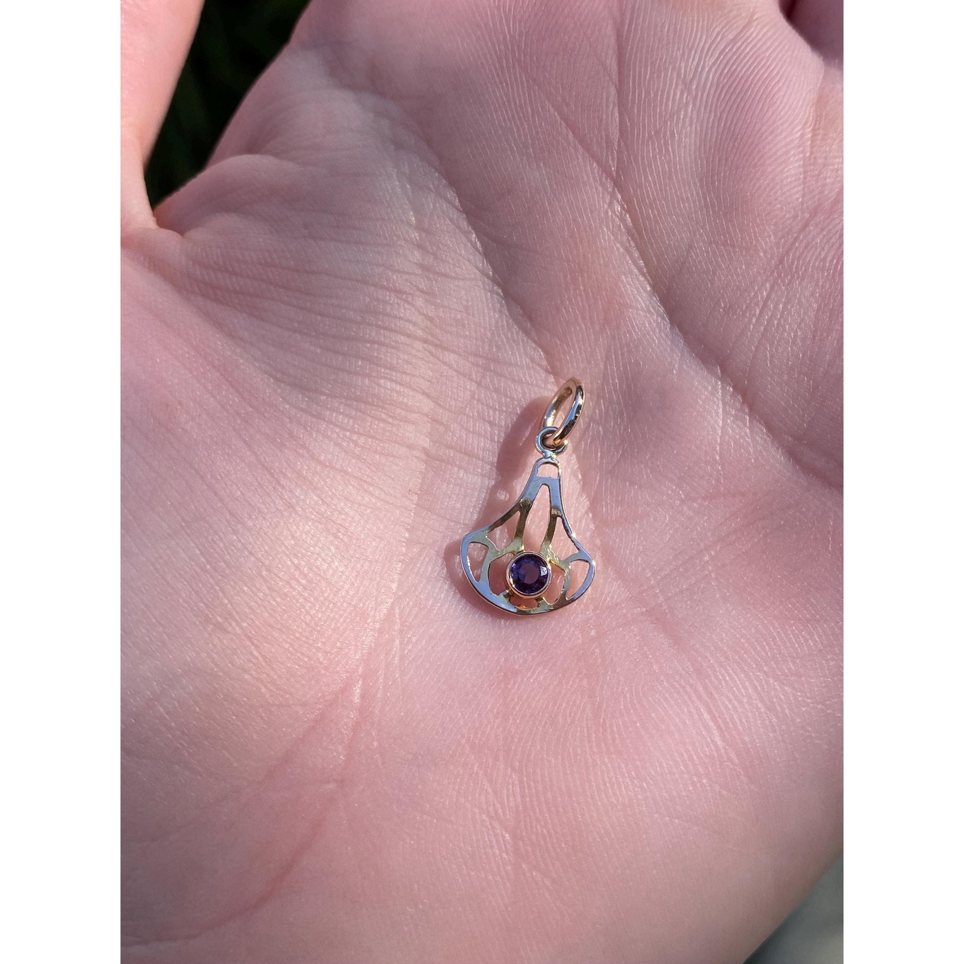 Vintage Solid 14k Yellow Gold Purple Cubic Zirconia Stick Pin Conversion Charm