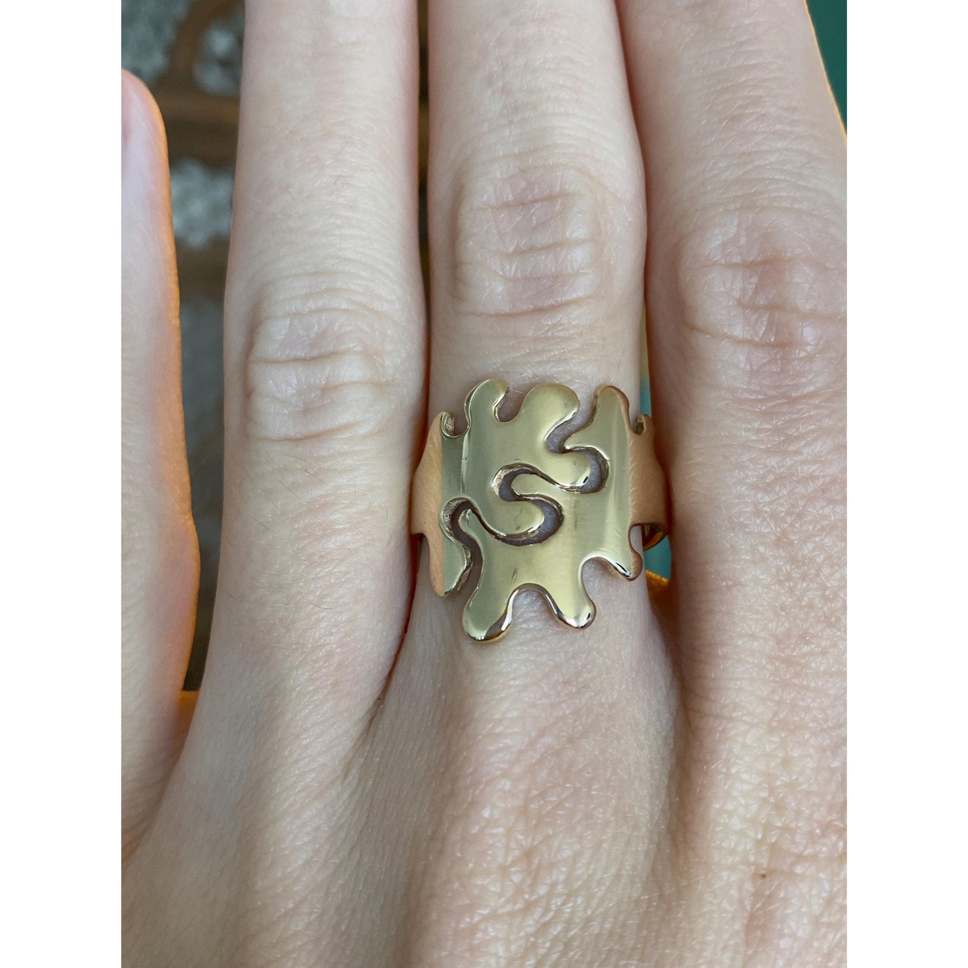 Vintage Solid 14k Yellow Gold Puzzle Piece Ring - Size 7.75