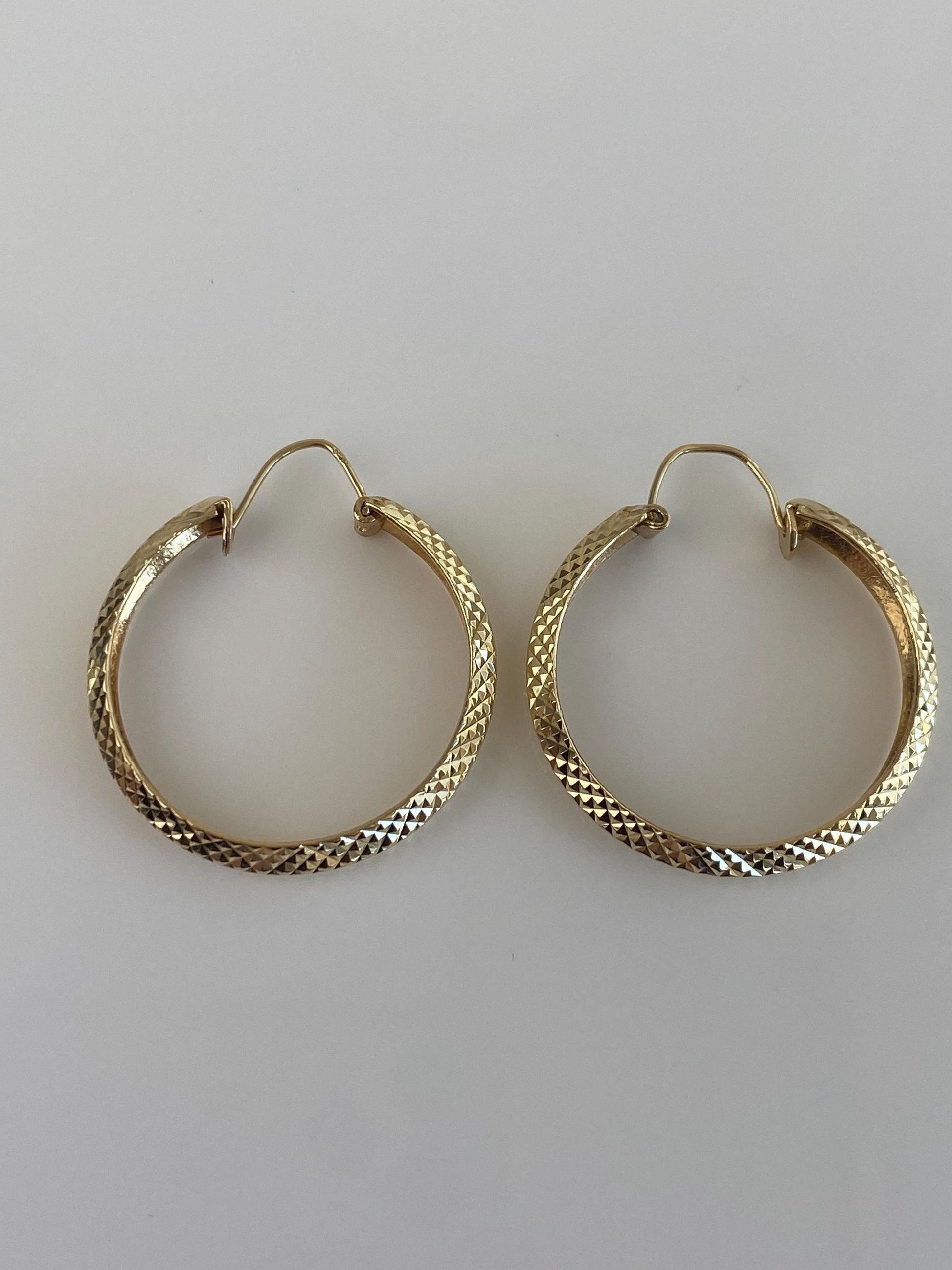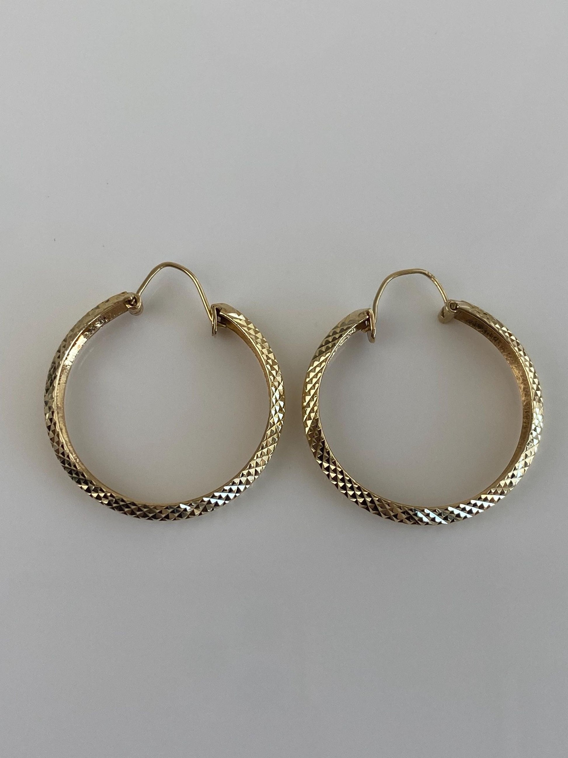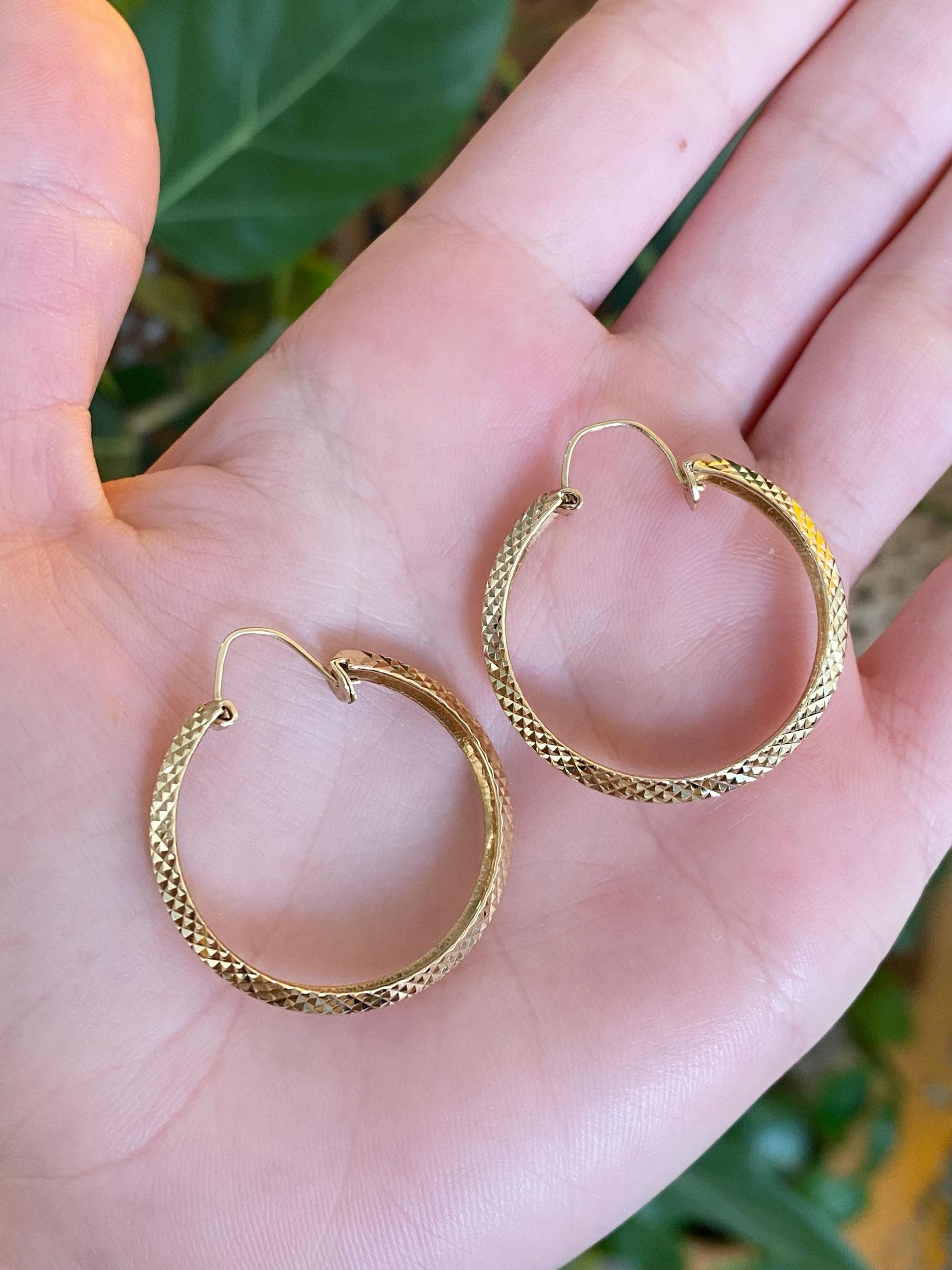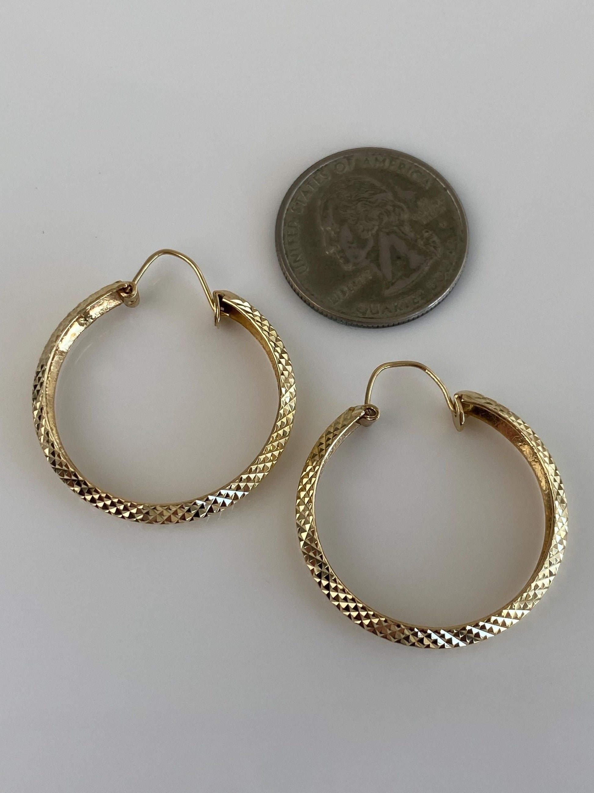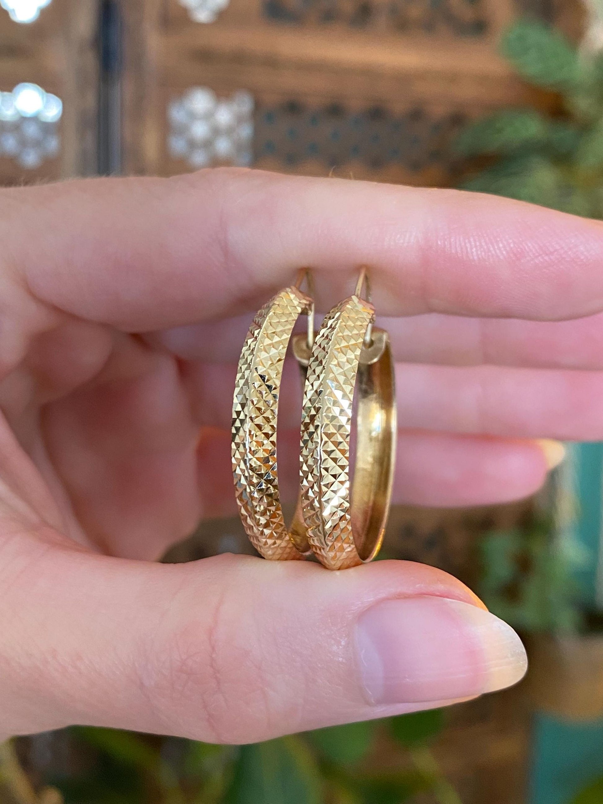 Vintage Solid 14k Yellow Gold Pyramid Texture Hoop Earrings
