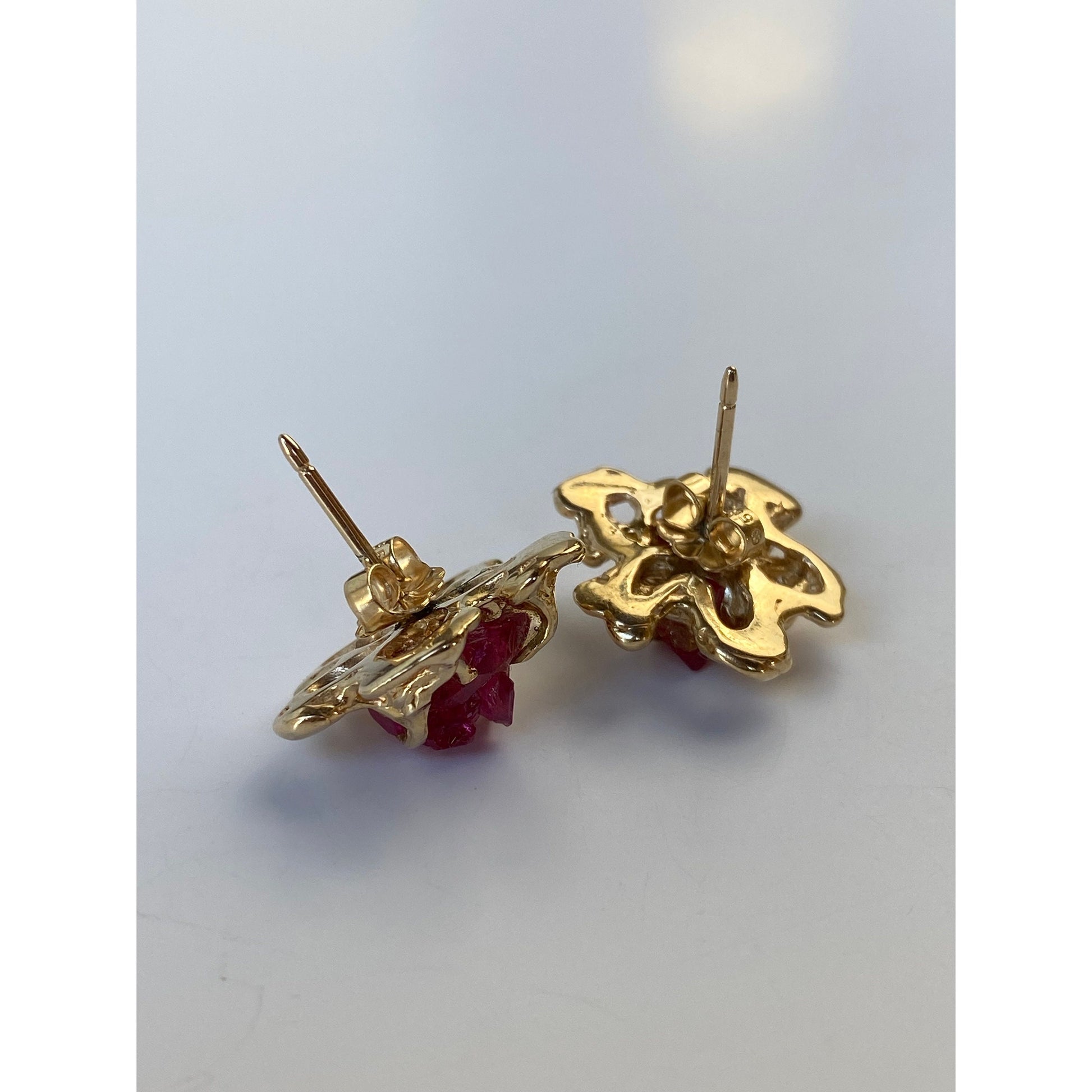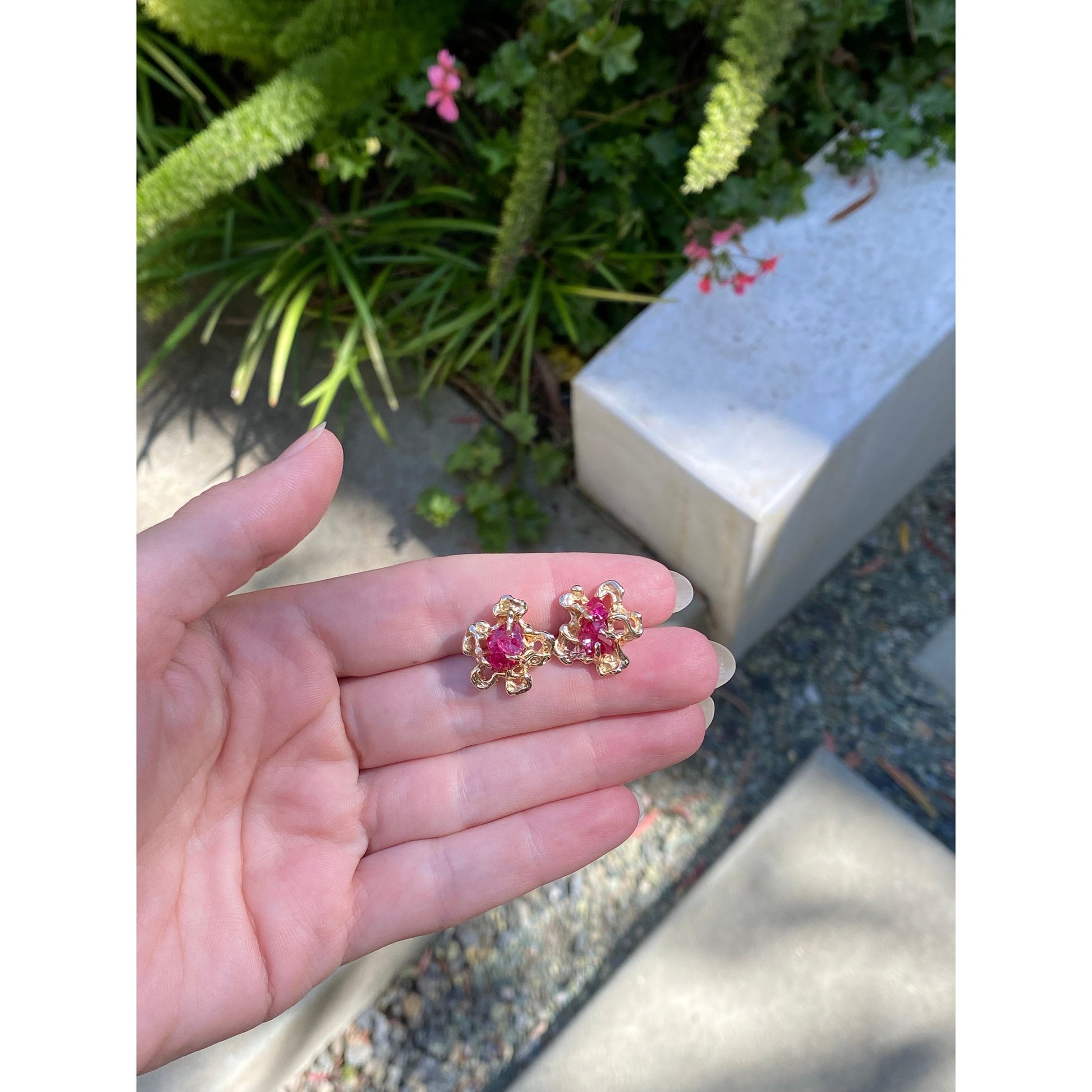 Vintage Solid 14k Yellow Gold Raw Pink Sapphire Organic Stud Earrings