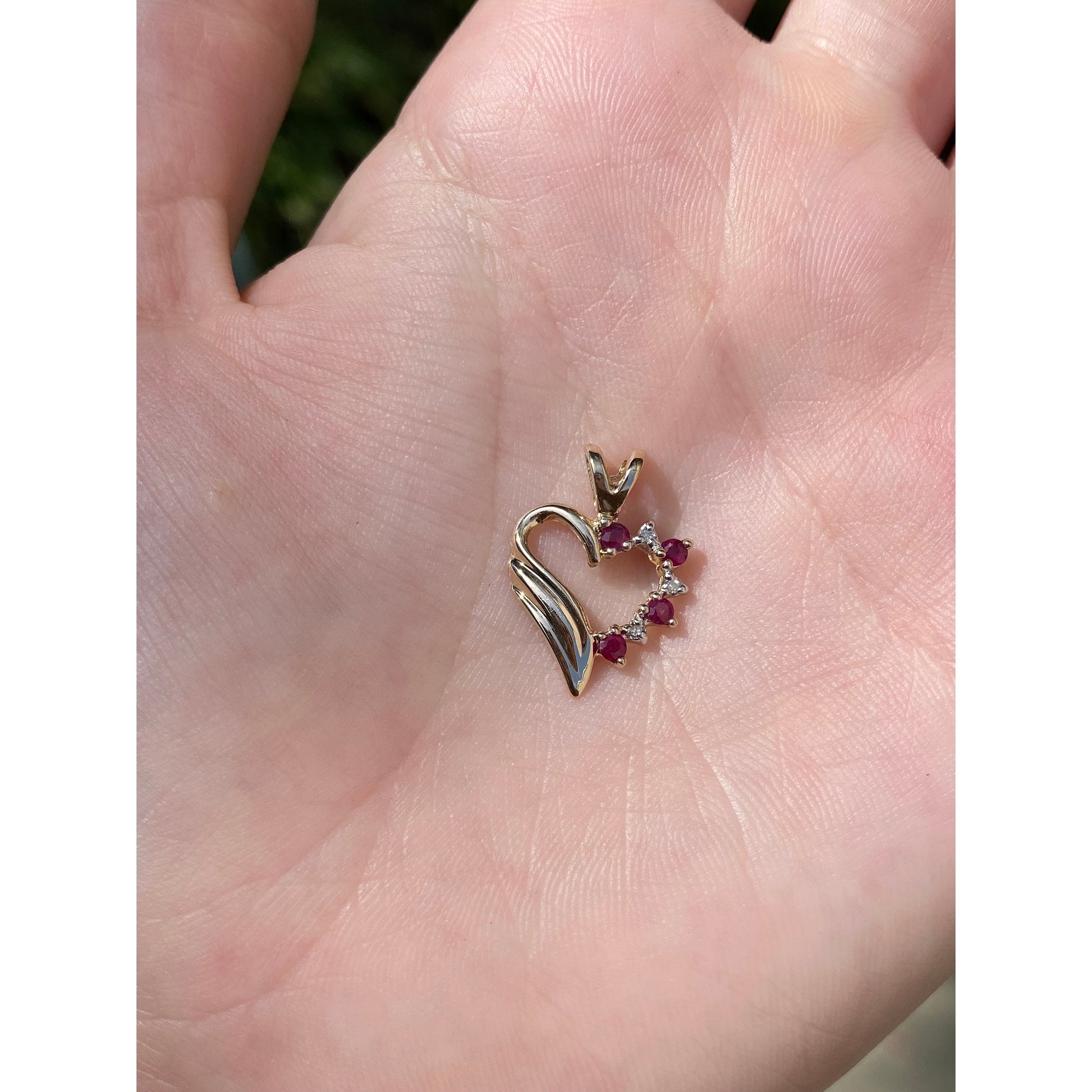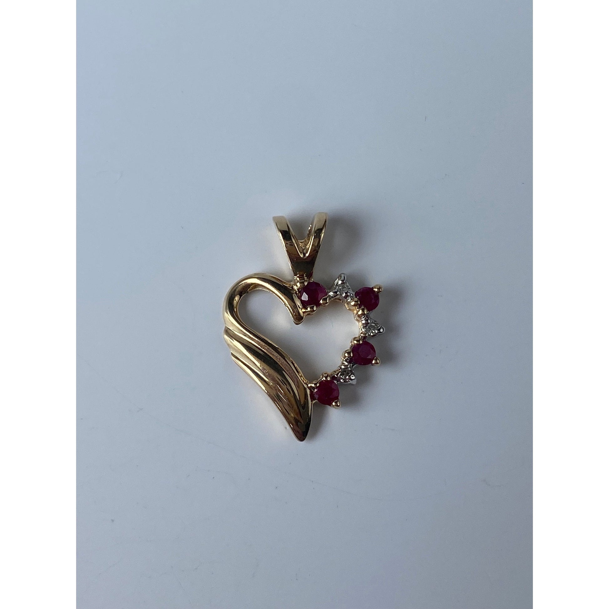 Vintage Solid 14k Yellow Gold Red & Clear Spinel Heart Charm