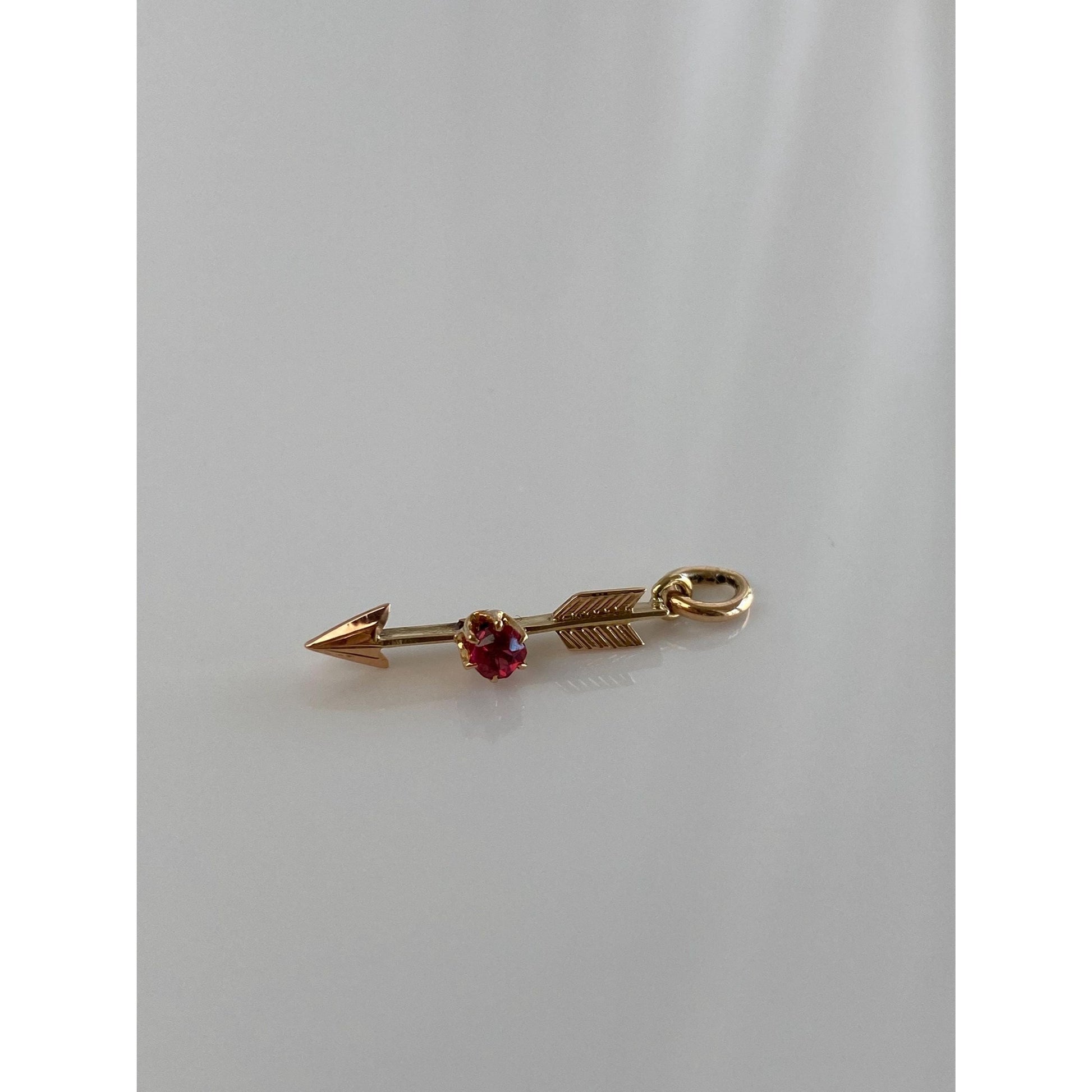 Vintage Solid 14k Yellow Gold Red Cubic Zirconia Arrow Charm