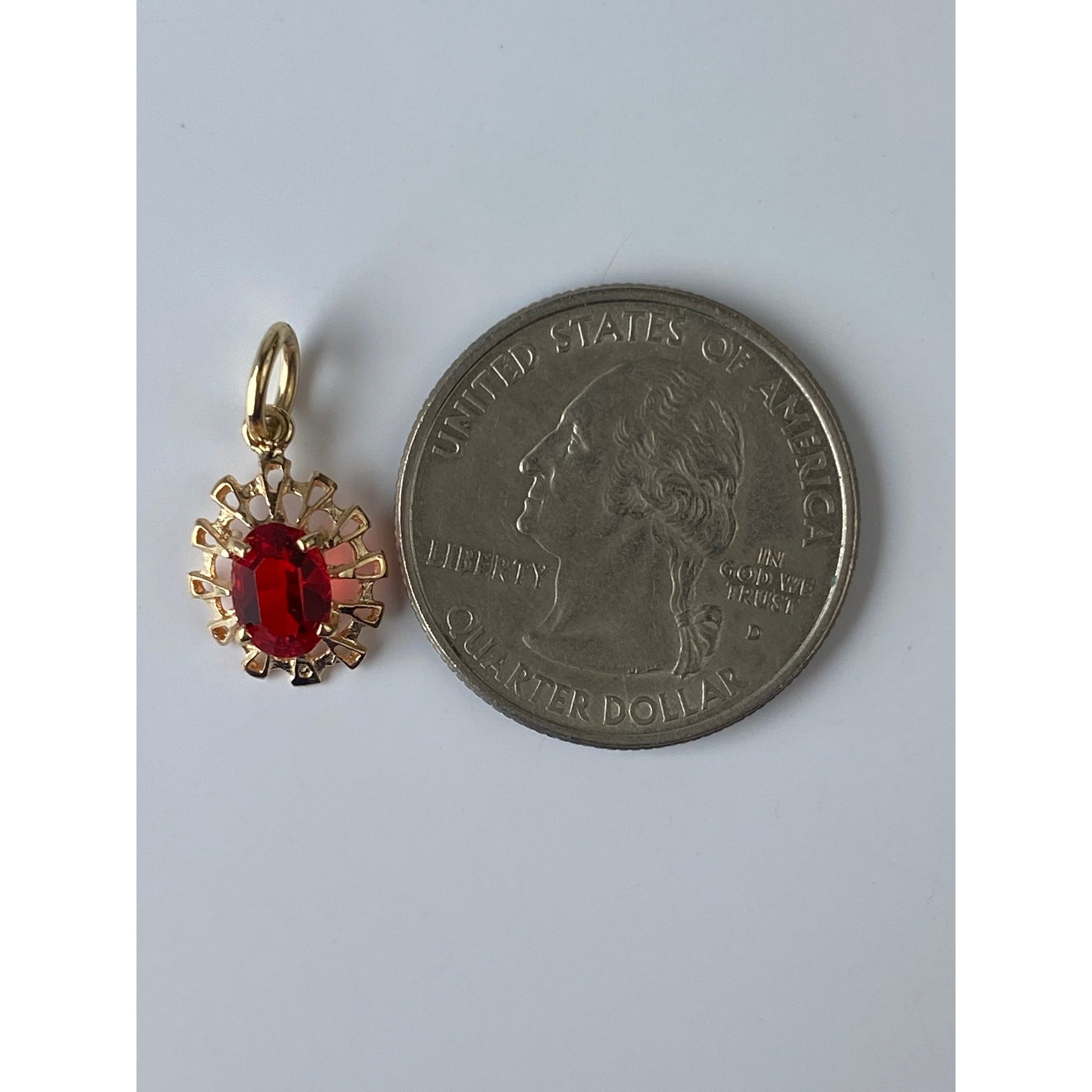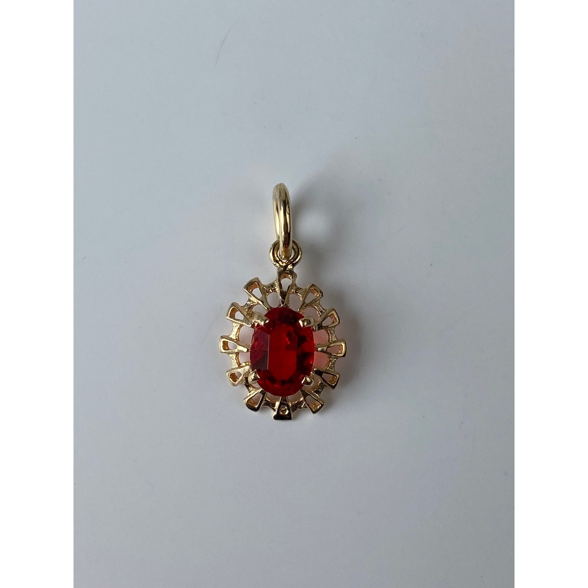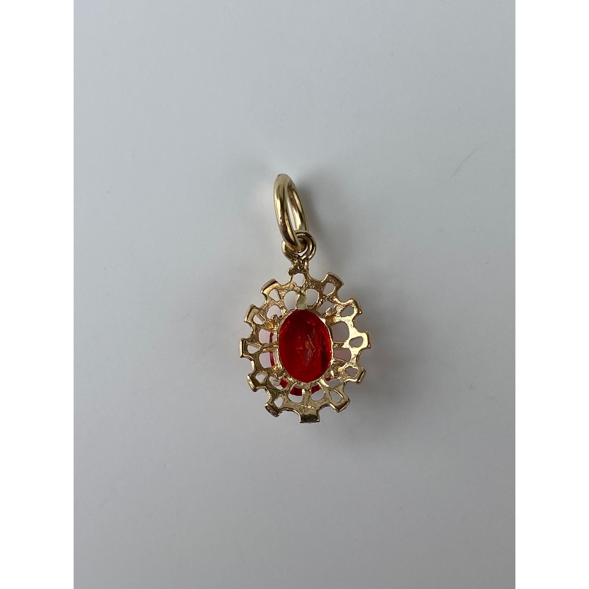 Vintage Solid 14k Yellow Gold Red Cubic Zirconia Charm