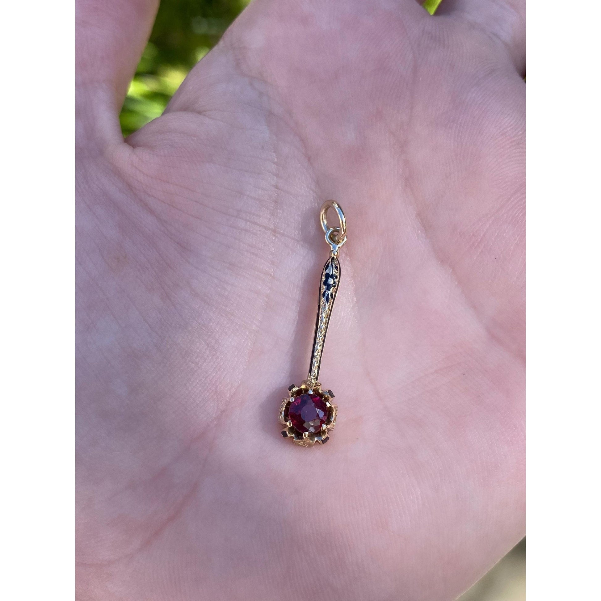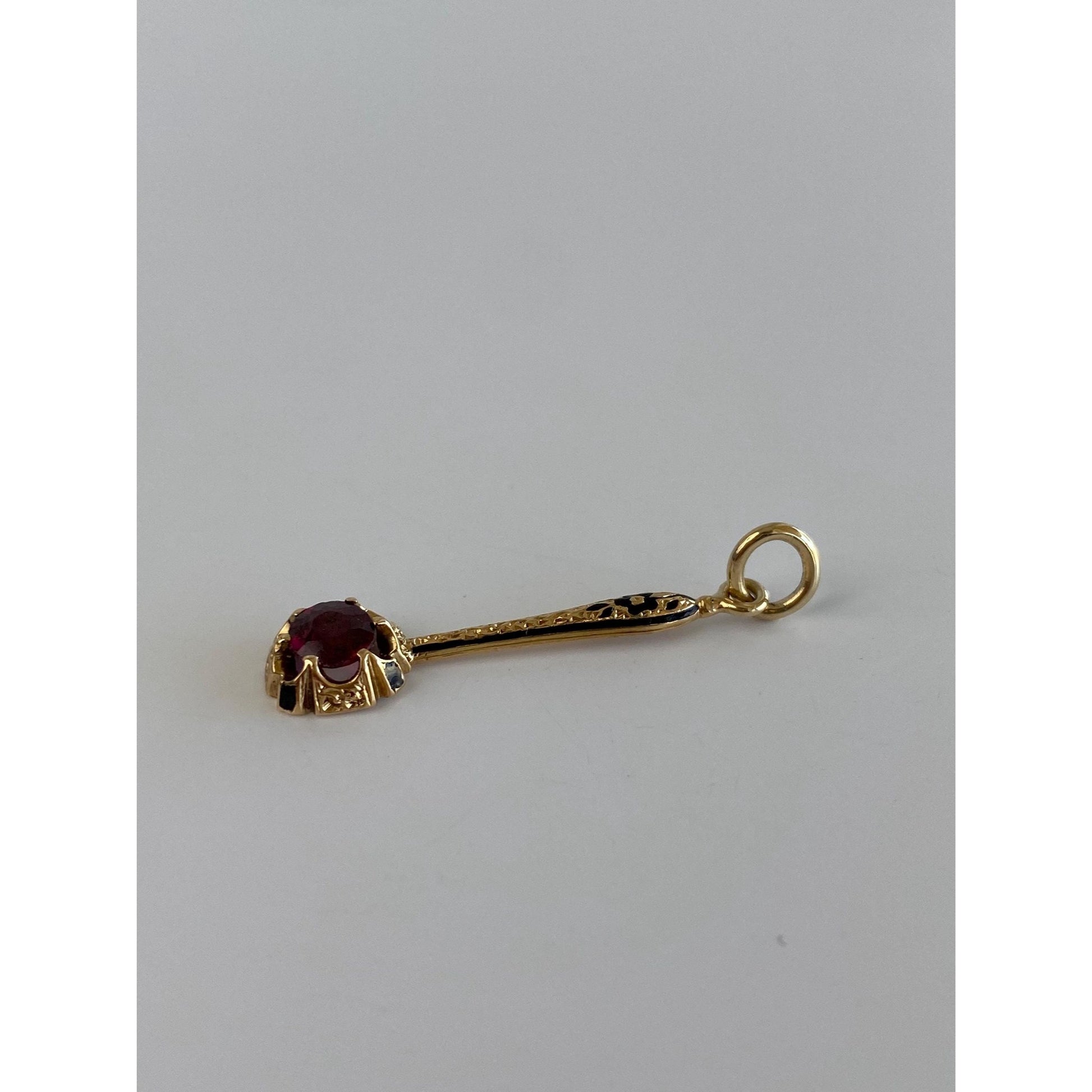 Vintage Solid 14k Yellow Gold Red Cubic Zirconia Charm