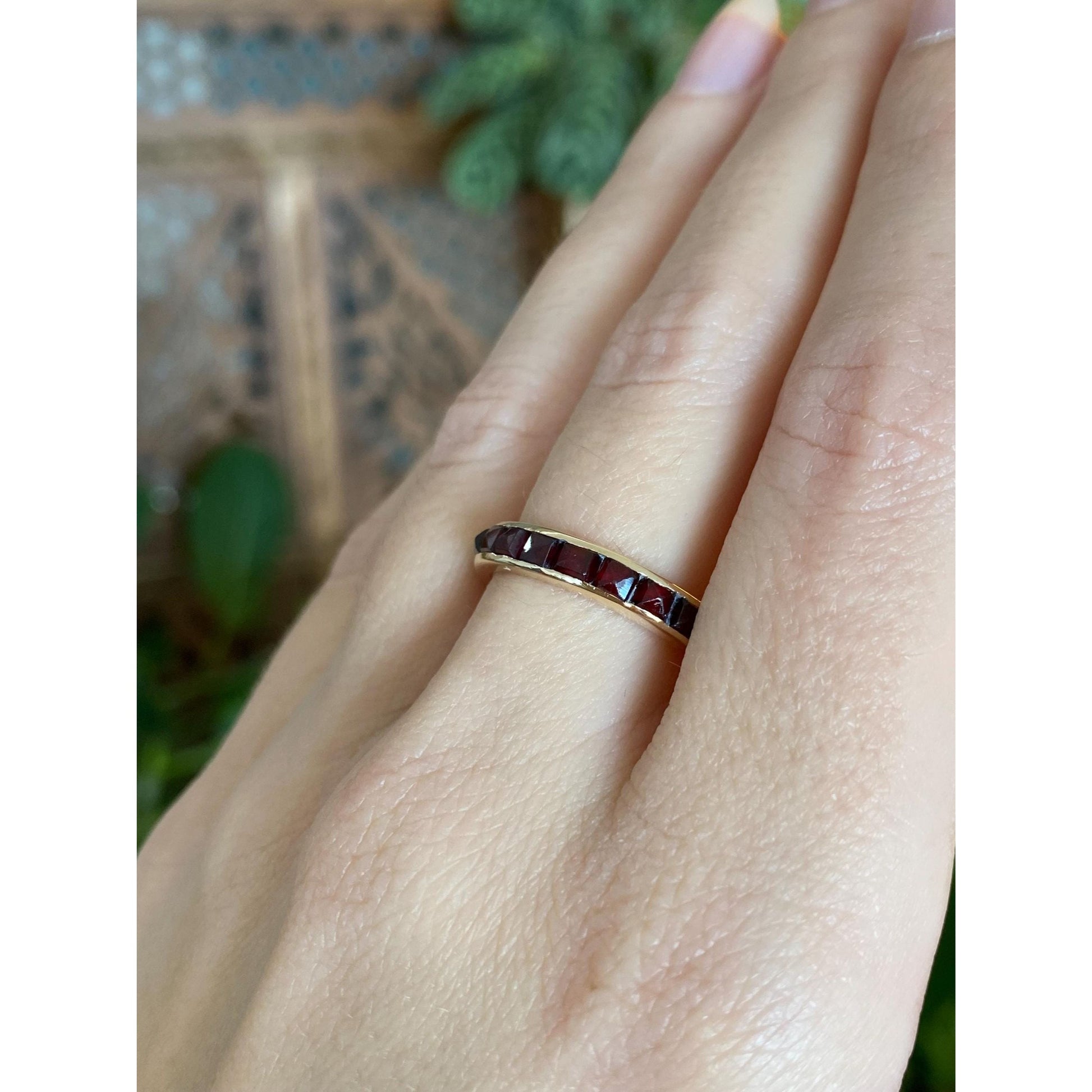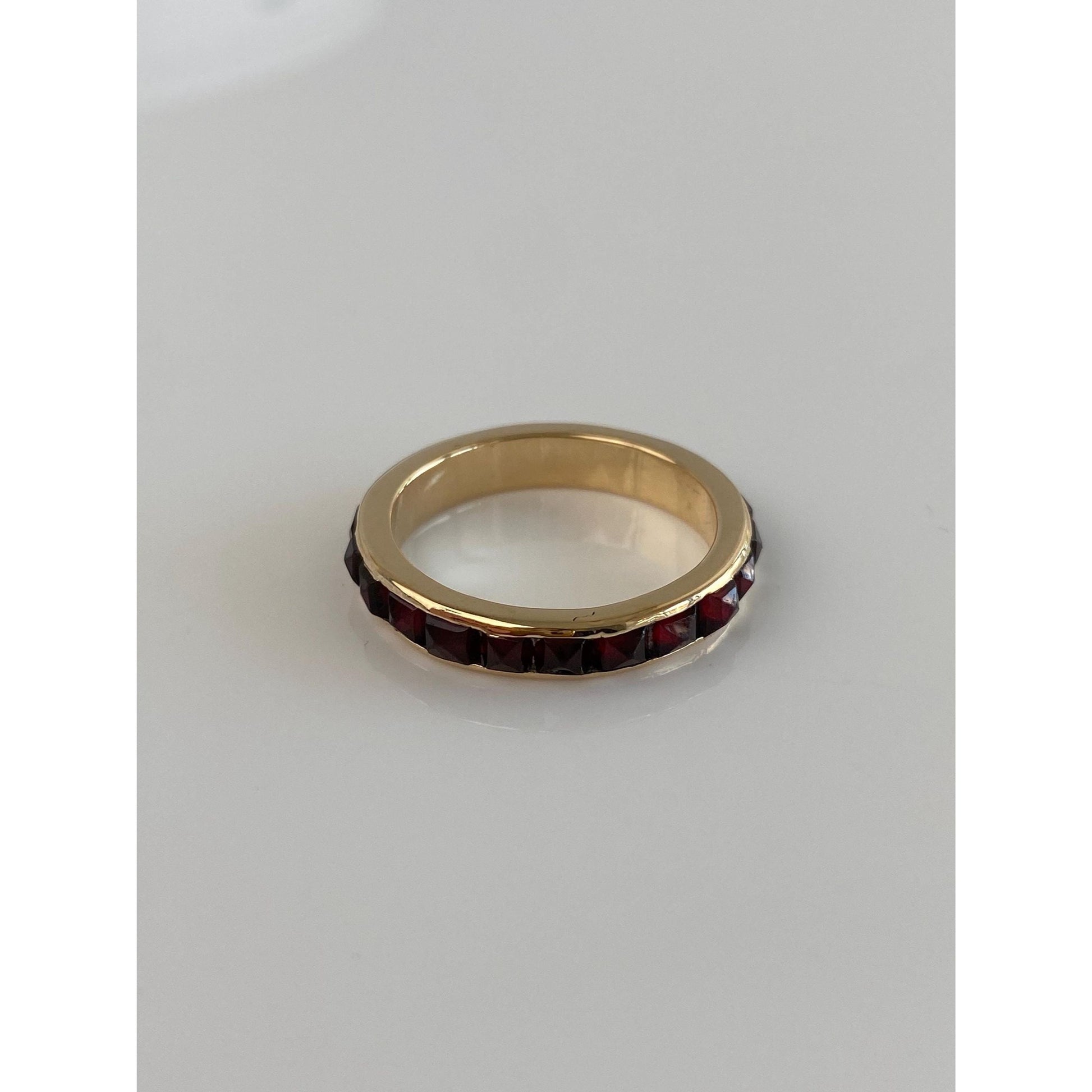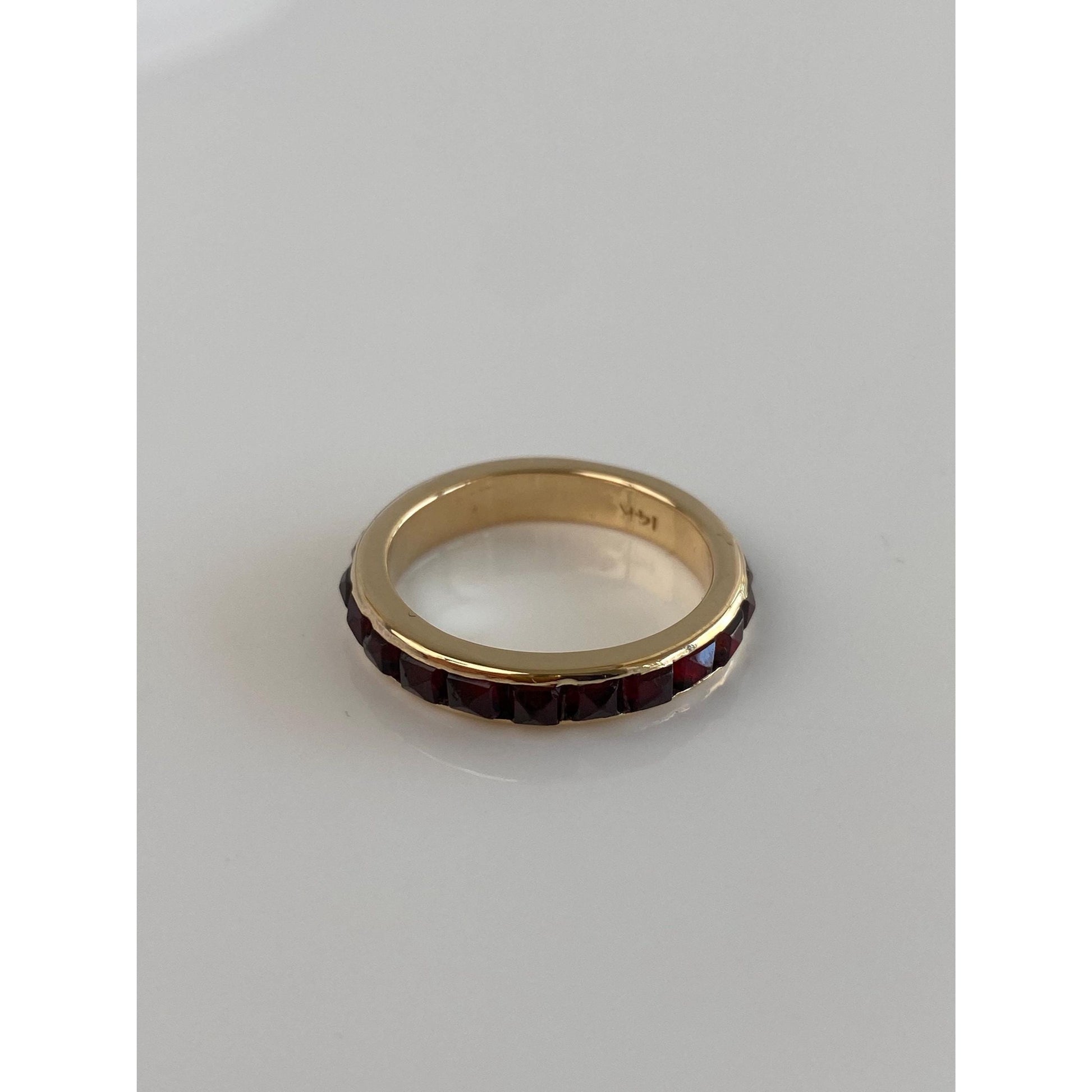 Vintage Solid 14k Yellow Gold Red Cubic Zirconia Pyramid Ring Band - Size 7.5